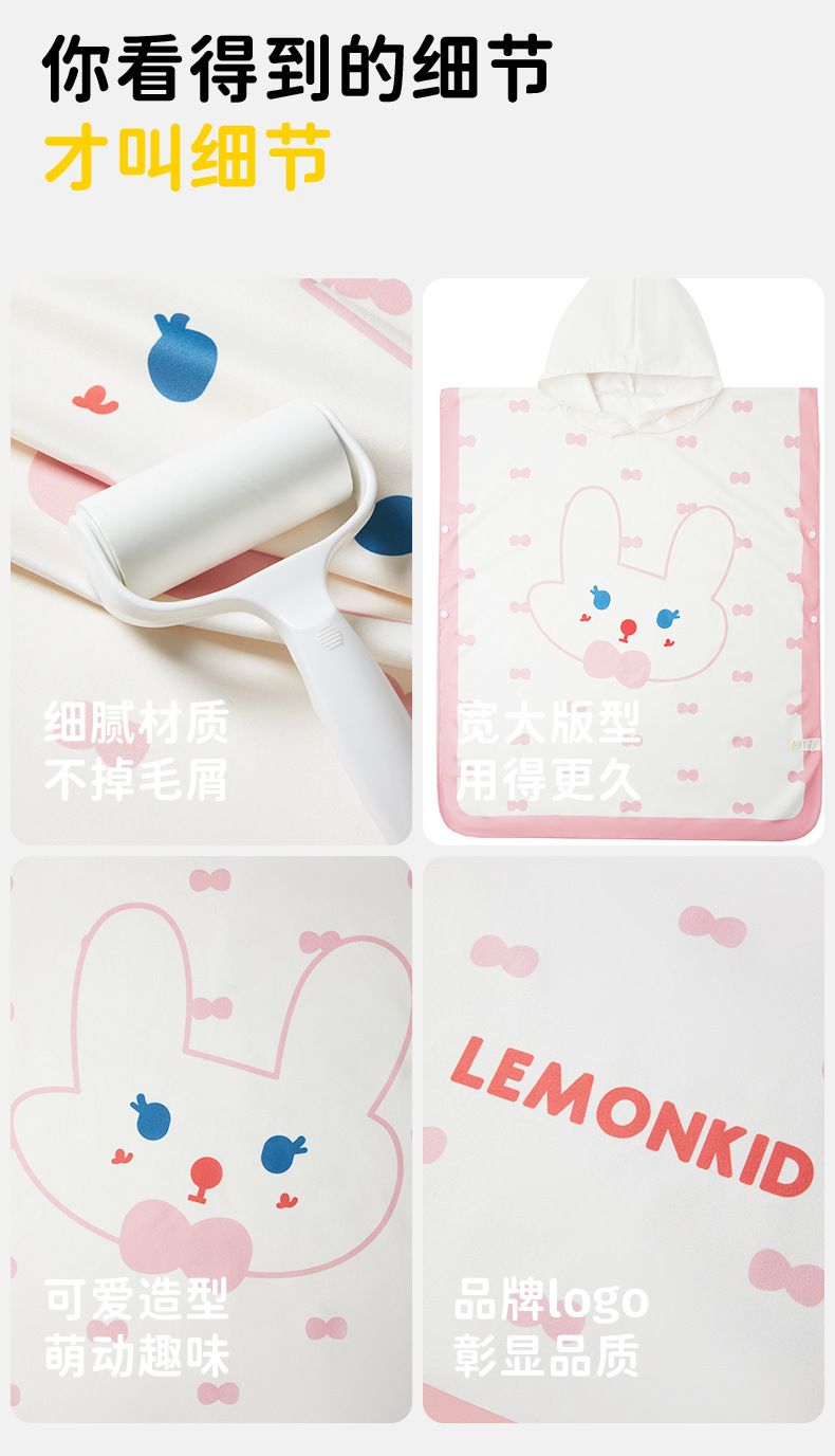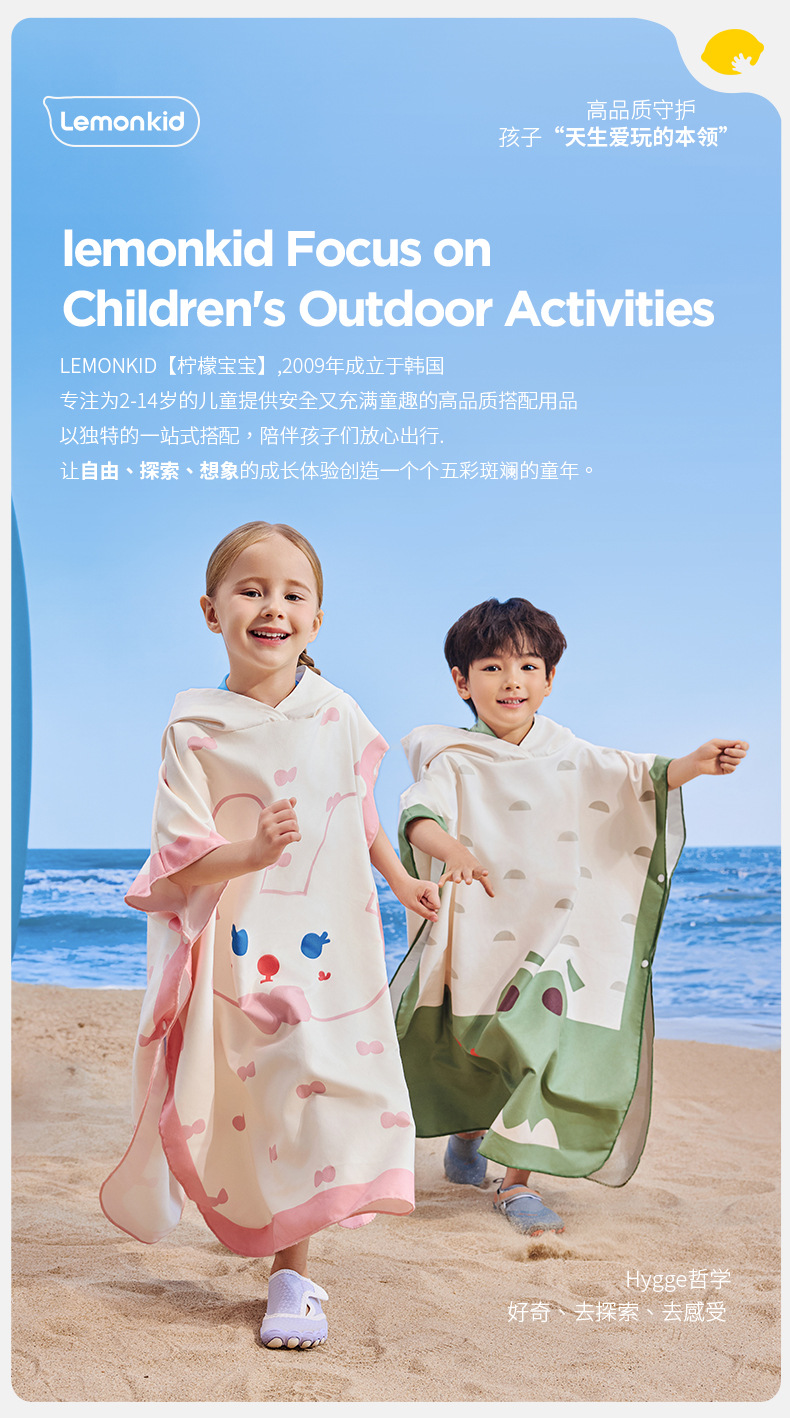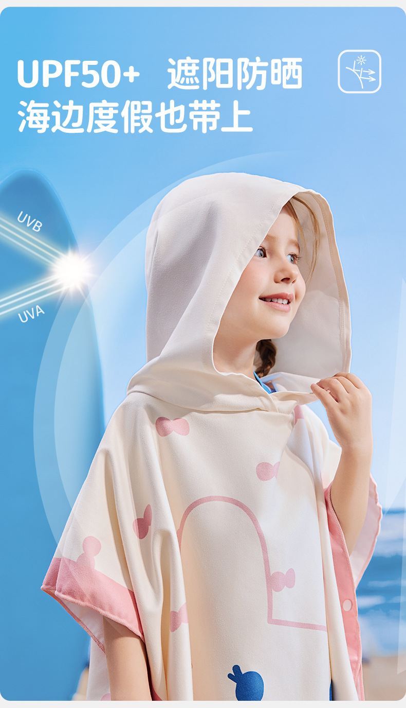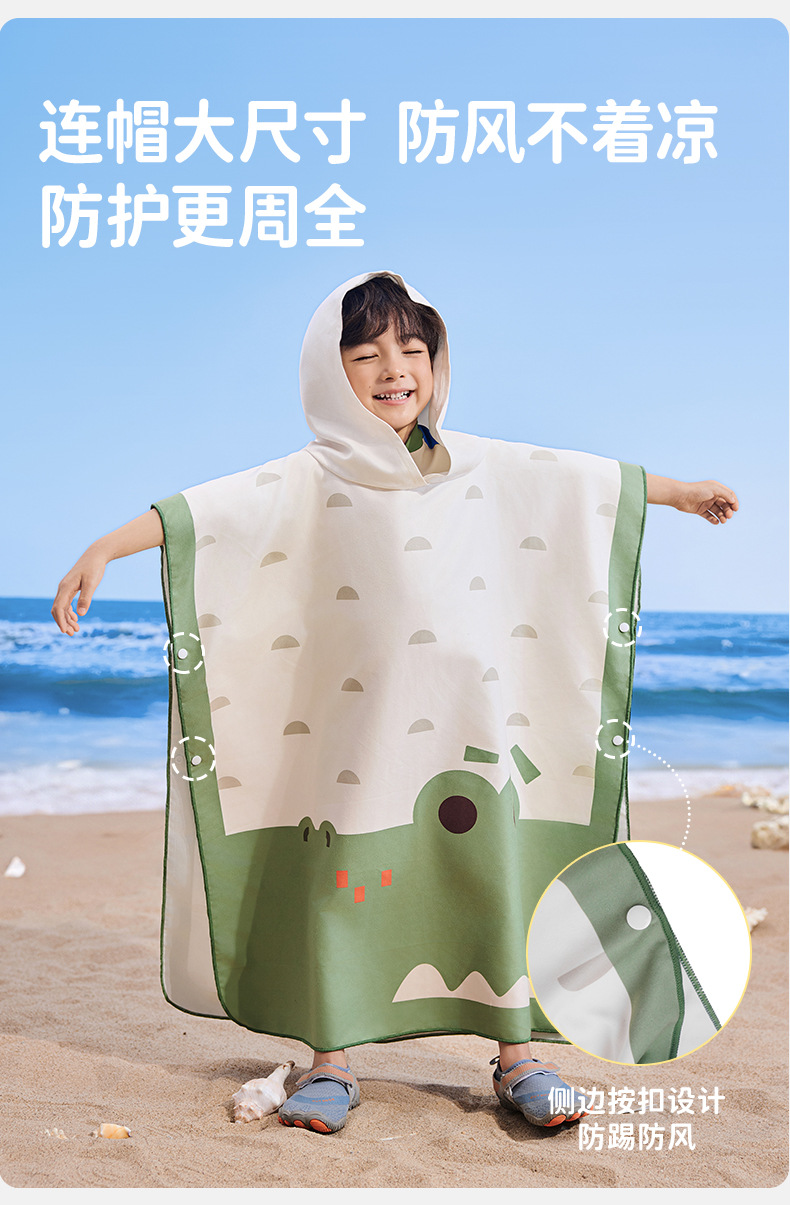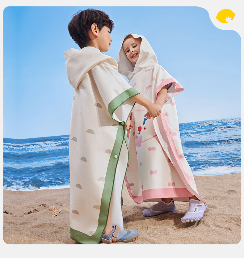 【强防晒,瞬吸水,多功能春夏浴袍】柠檬宝宝儿童游泳速干浴巾 斗篷浴袍 男女童吸水快干 沙滩温泉浴衣巾