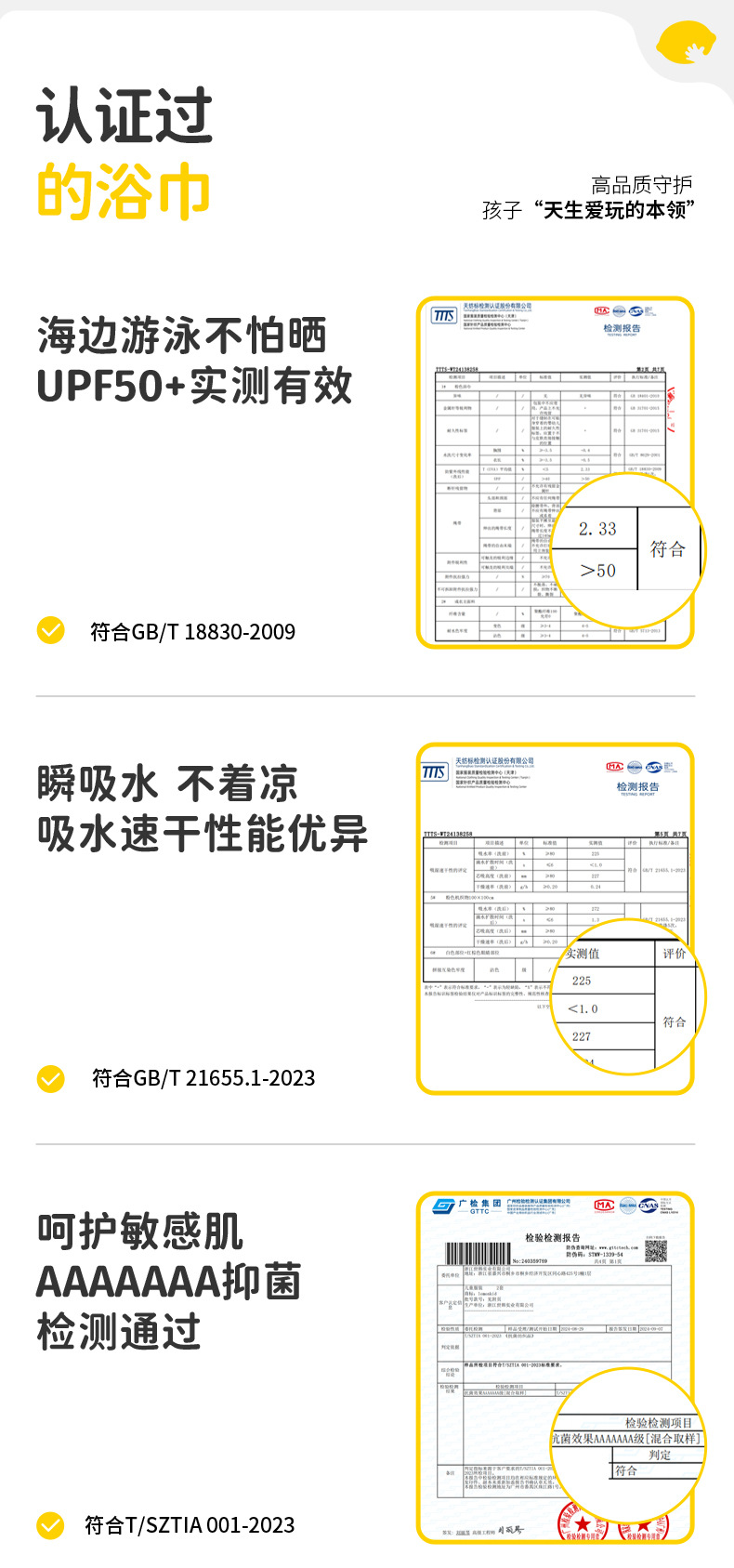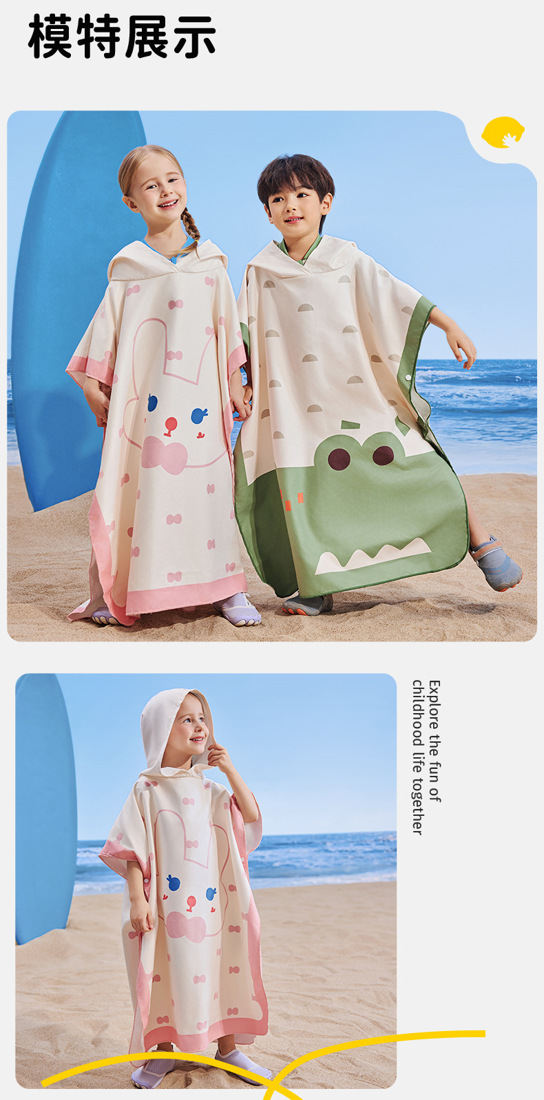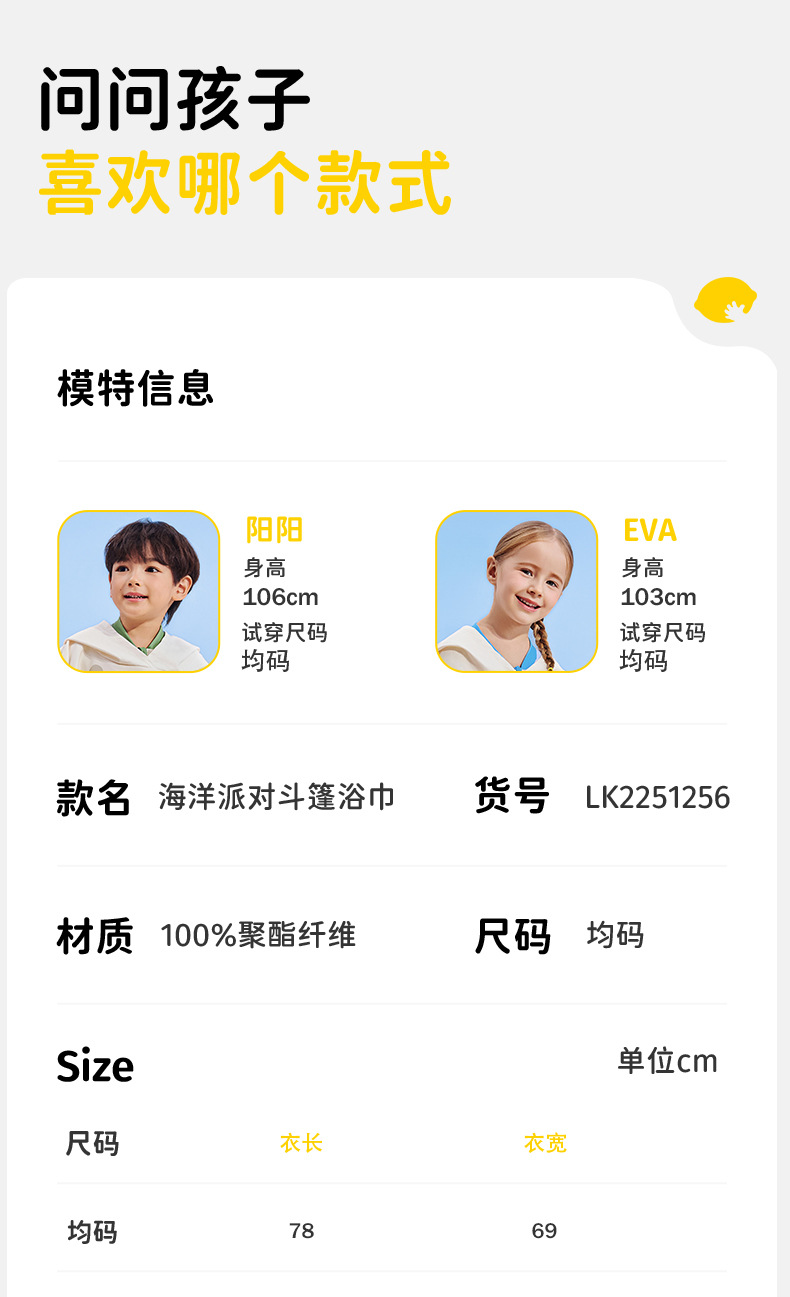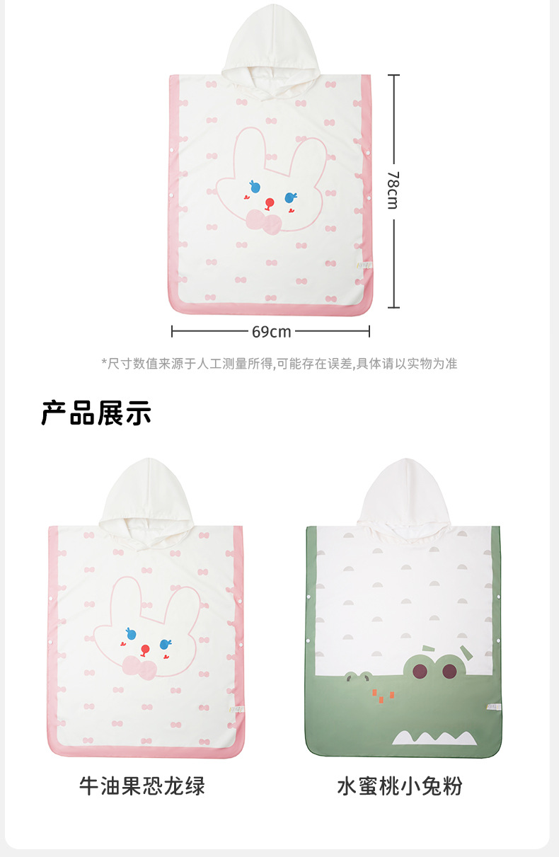 【强防晒,瞬吸水,多功能春夏浴袍】柠檬宝宝儿童游泳速干浴巾 斗篷浴袍 男女童吸水快干 沙滩温泉浴衣巾