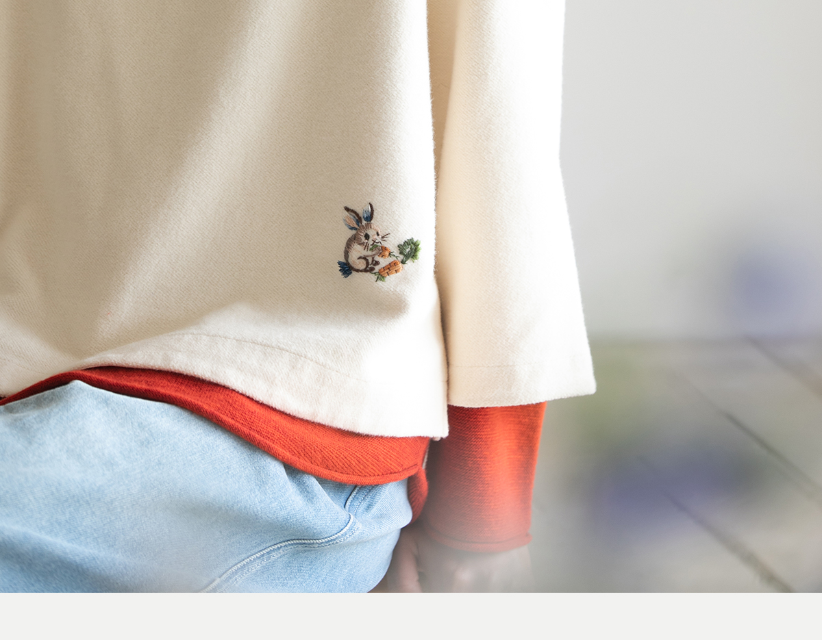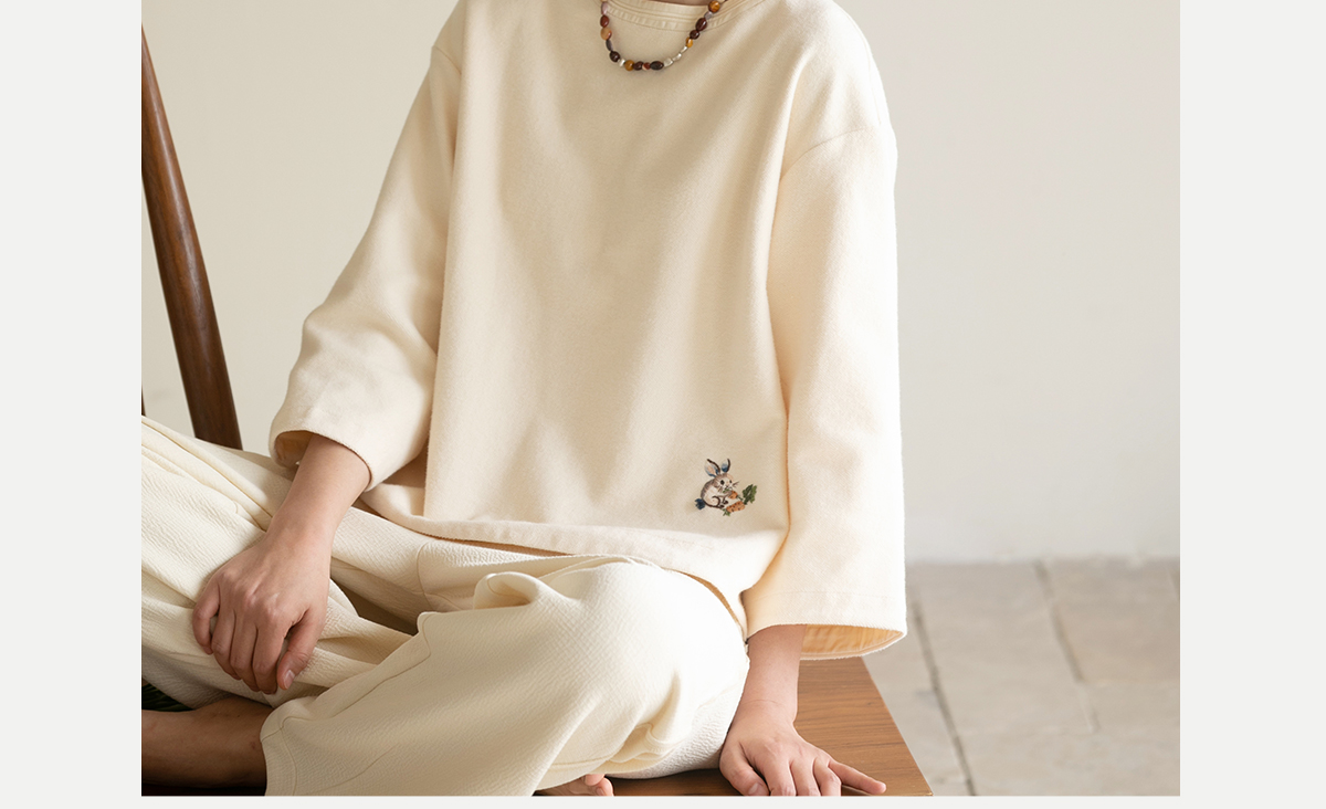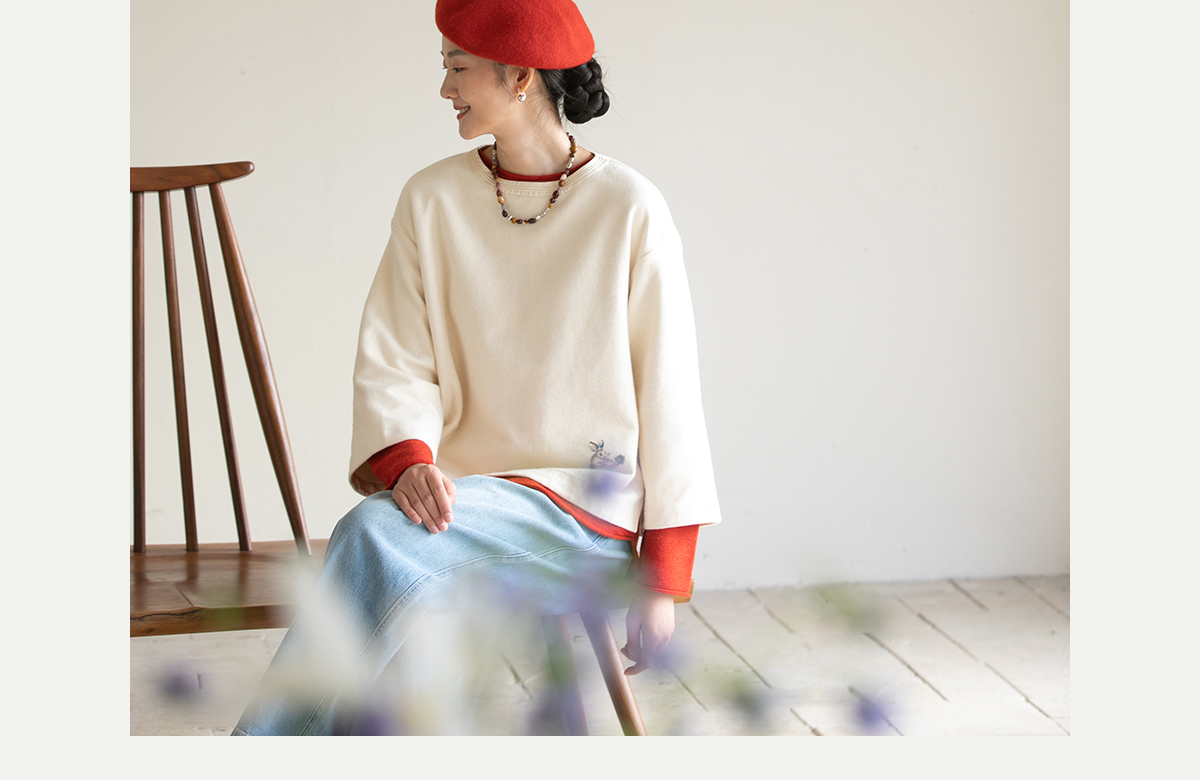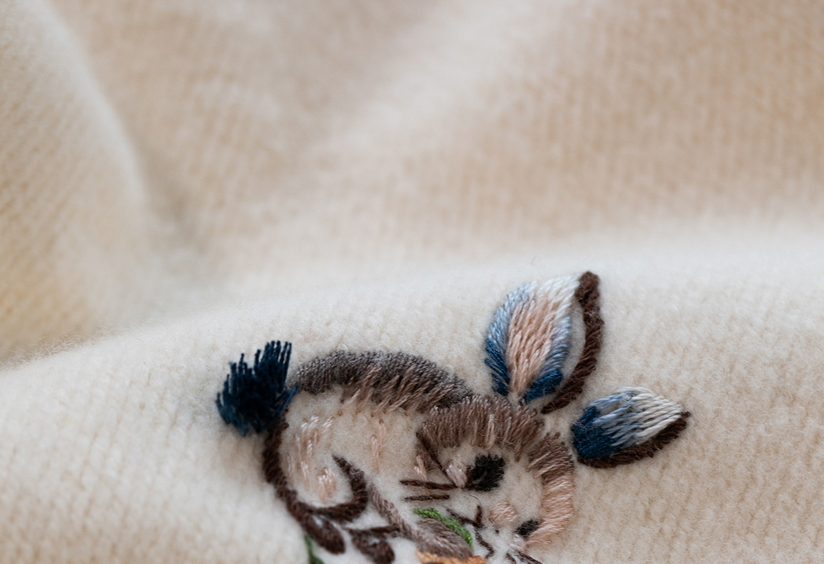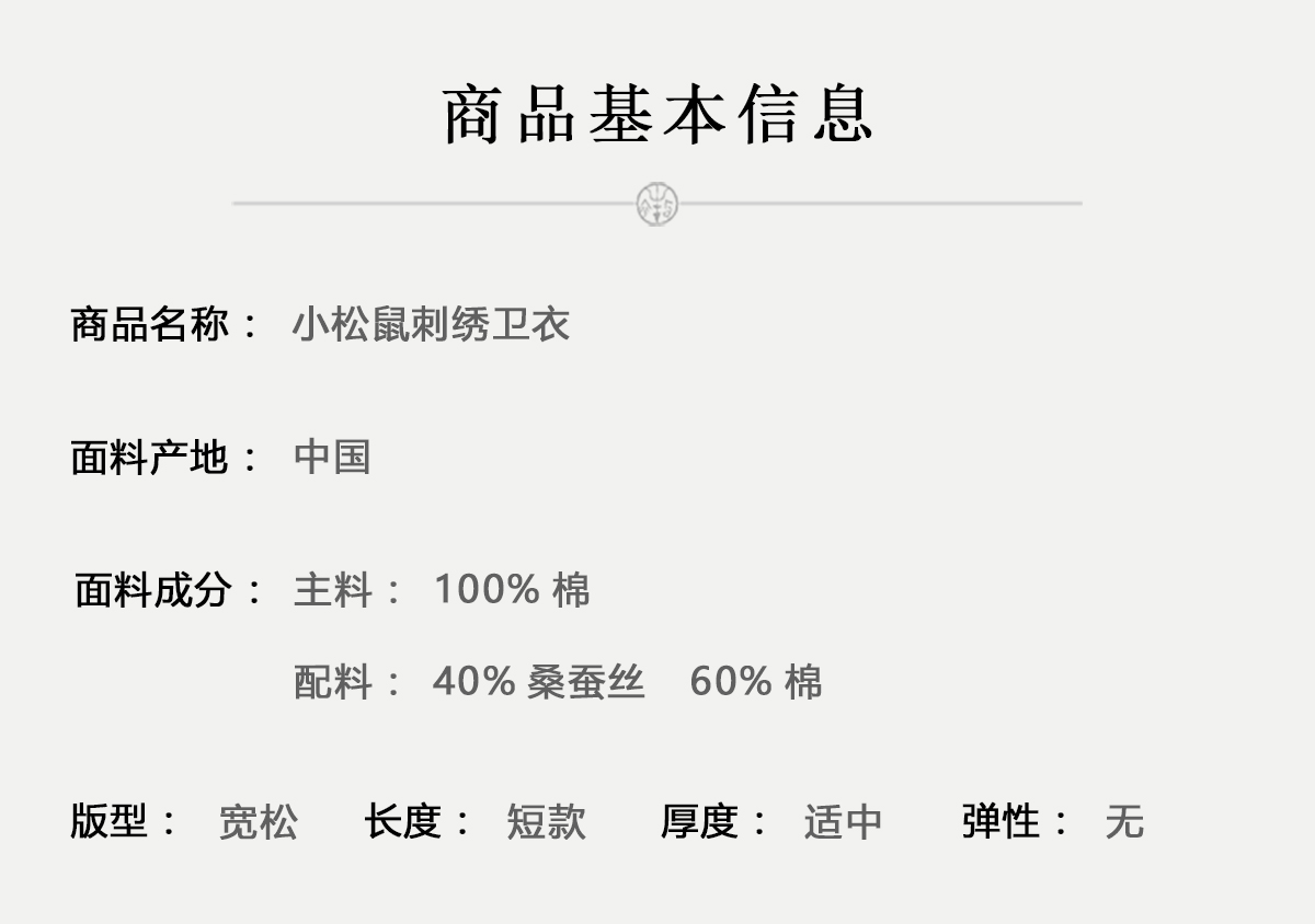 牧衣游原创 小松鼠手工刺绣卫衣纯棉新款圆领宽松长袖上衣 一悟静