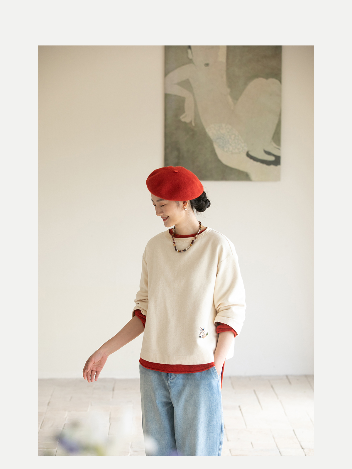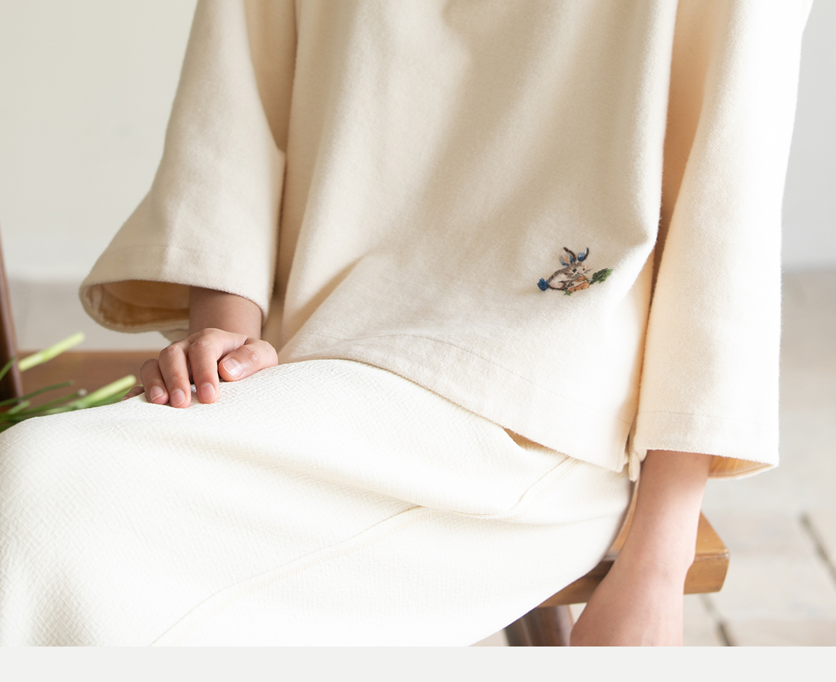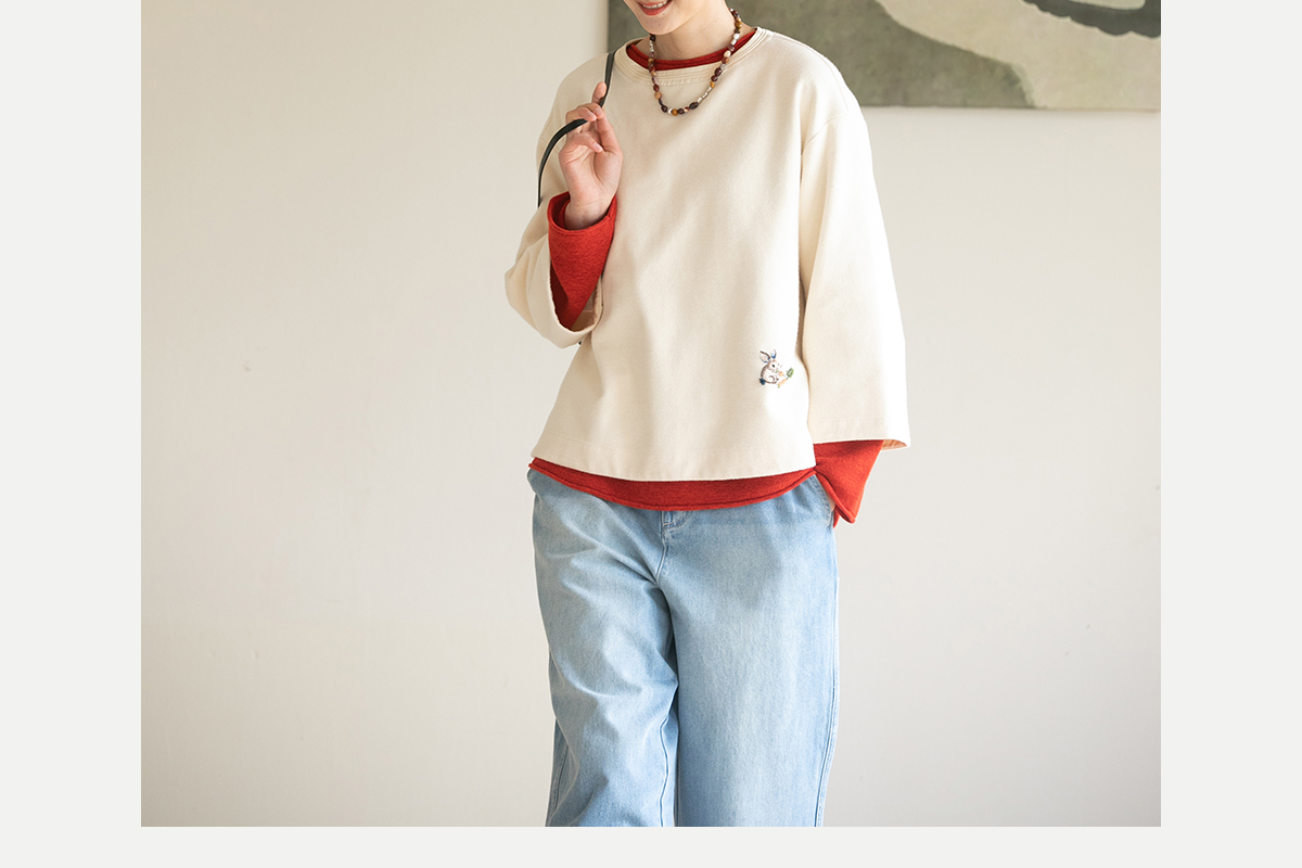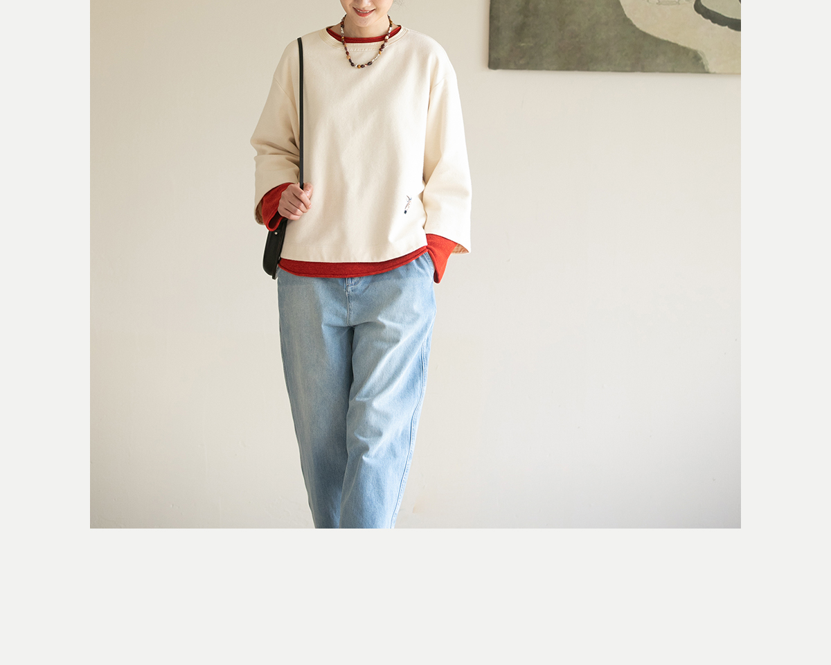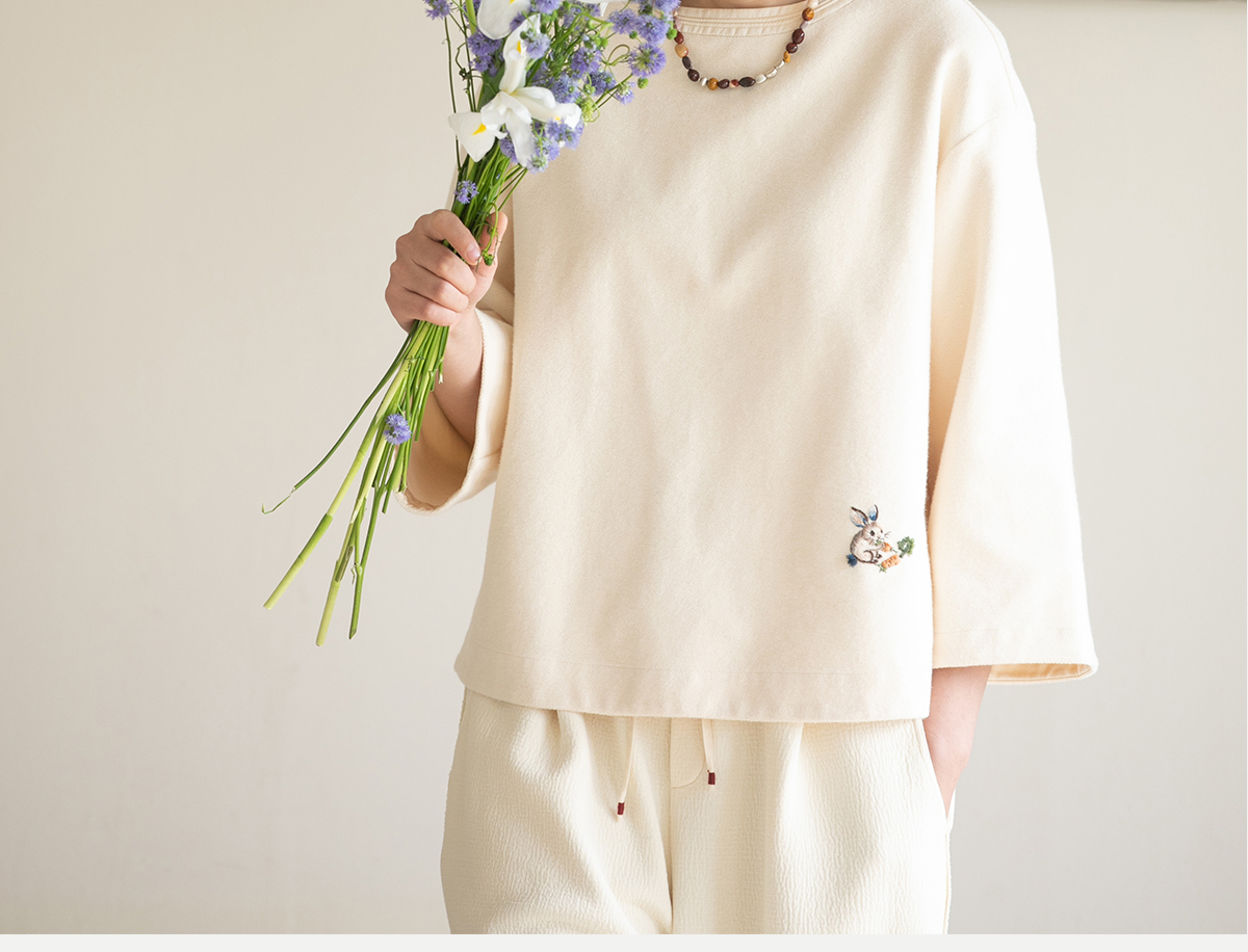 牧衣游原创 小松鼠手工刺绣卫衣纯棉新款圆领宽松长袖上衣 一悟静
