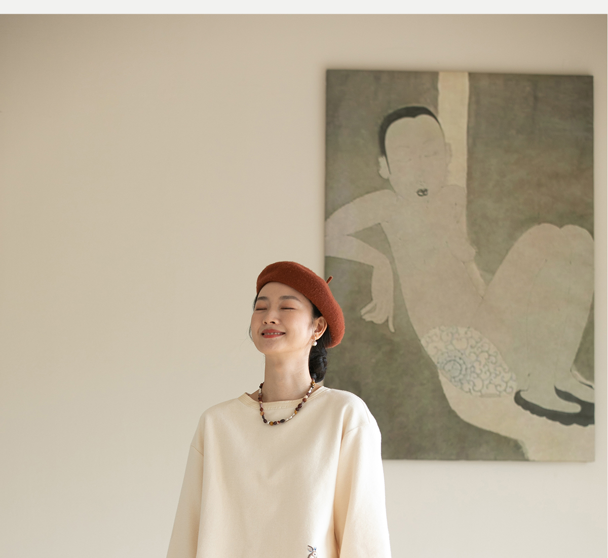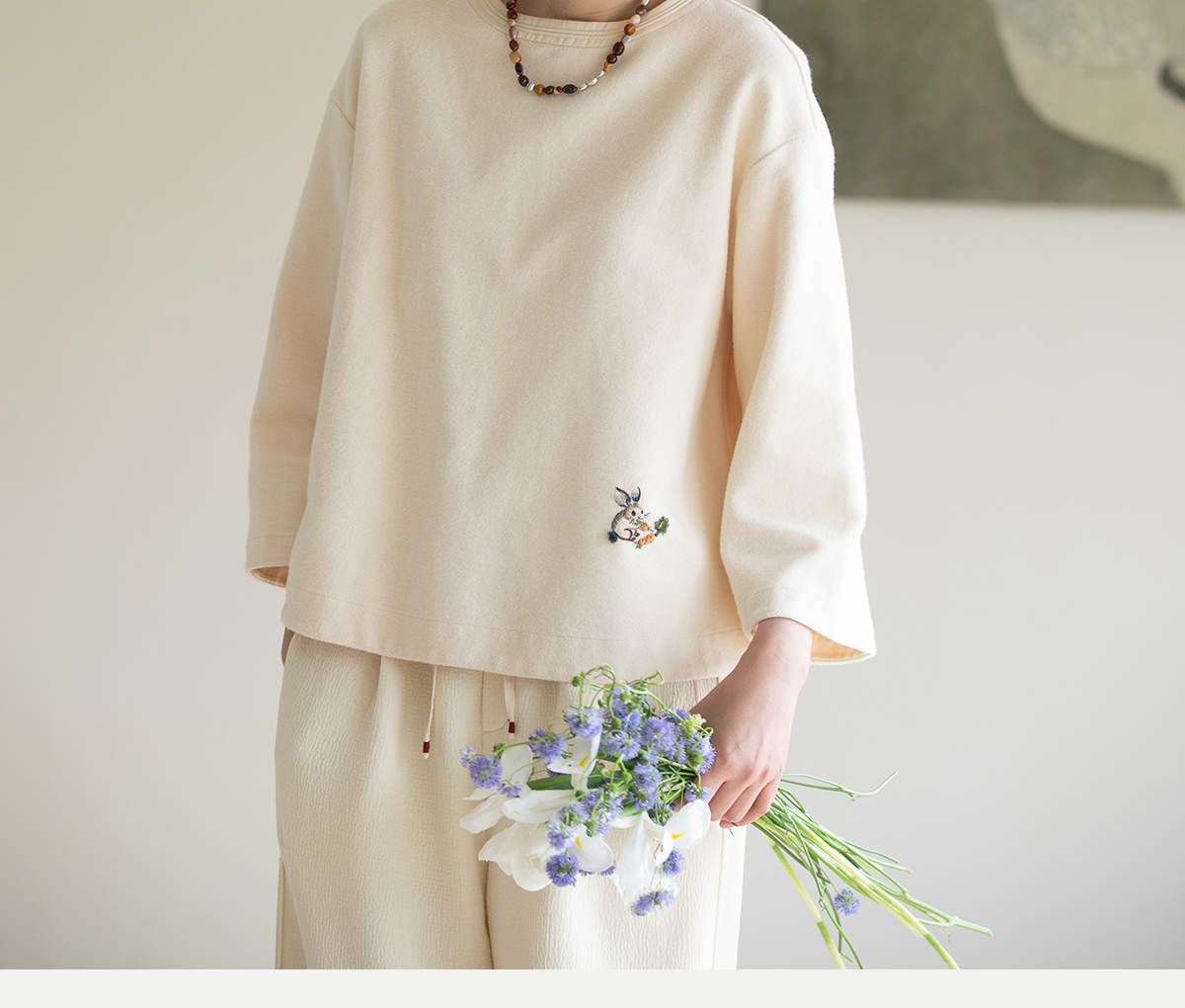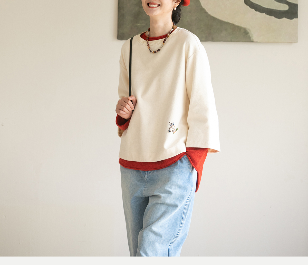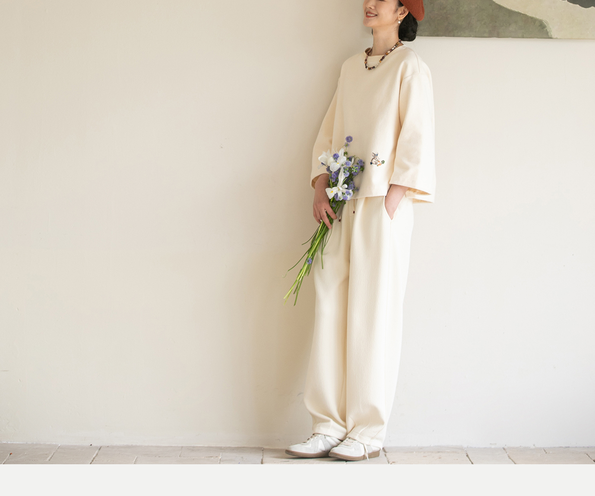 牧衣游原创 小松鼠手工刺绣卫衣纯棉新款圆领宽松长袖上衣 一悟静