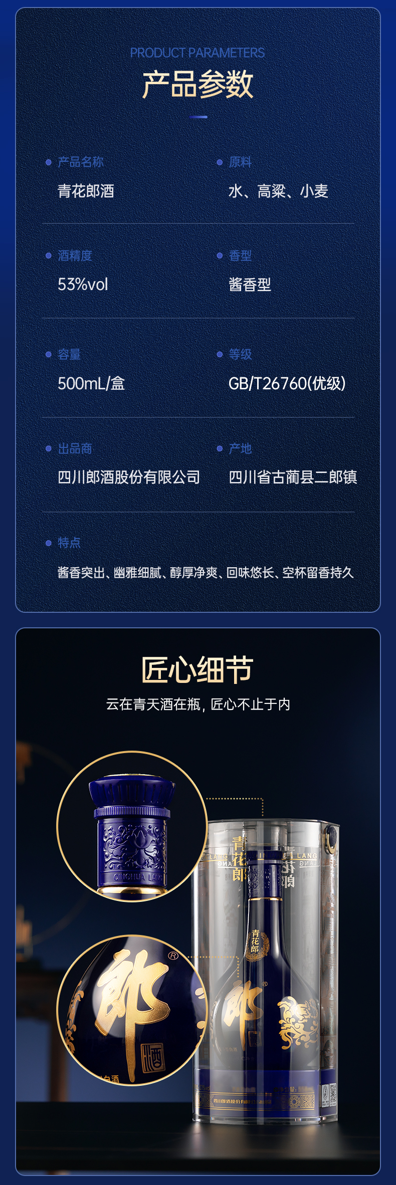 郎酒 青花郎 酱香型白酒 53度500ml 单瓶装(整箱为6瓶)