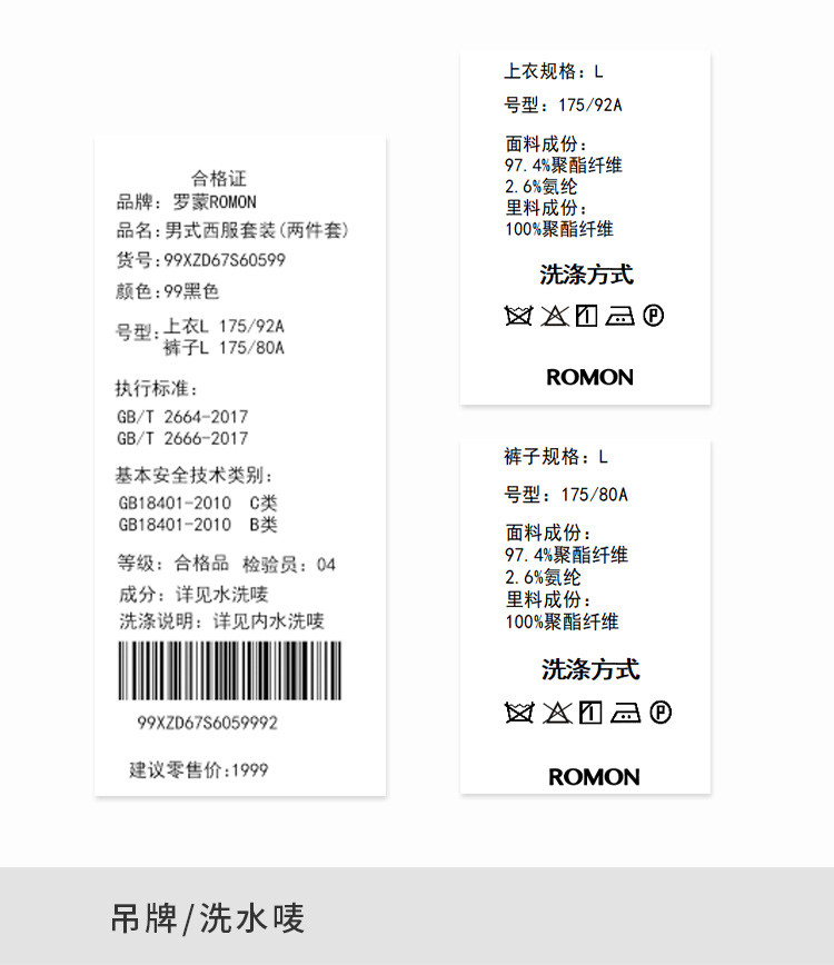 面料成份:97.4%聚酯纤维2.6%氨纶,里料成份:100%聚酯纤维