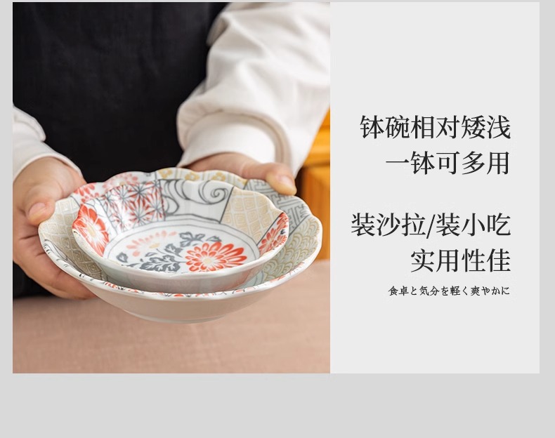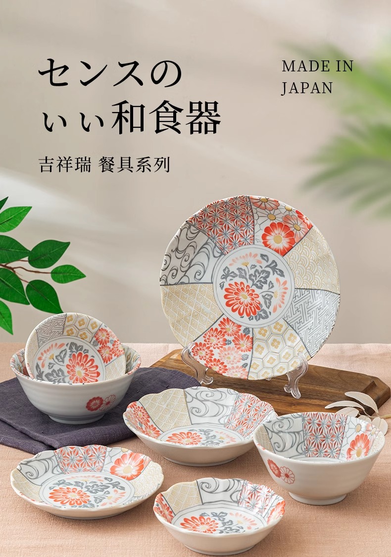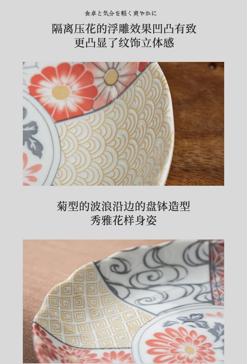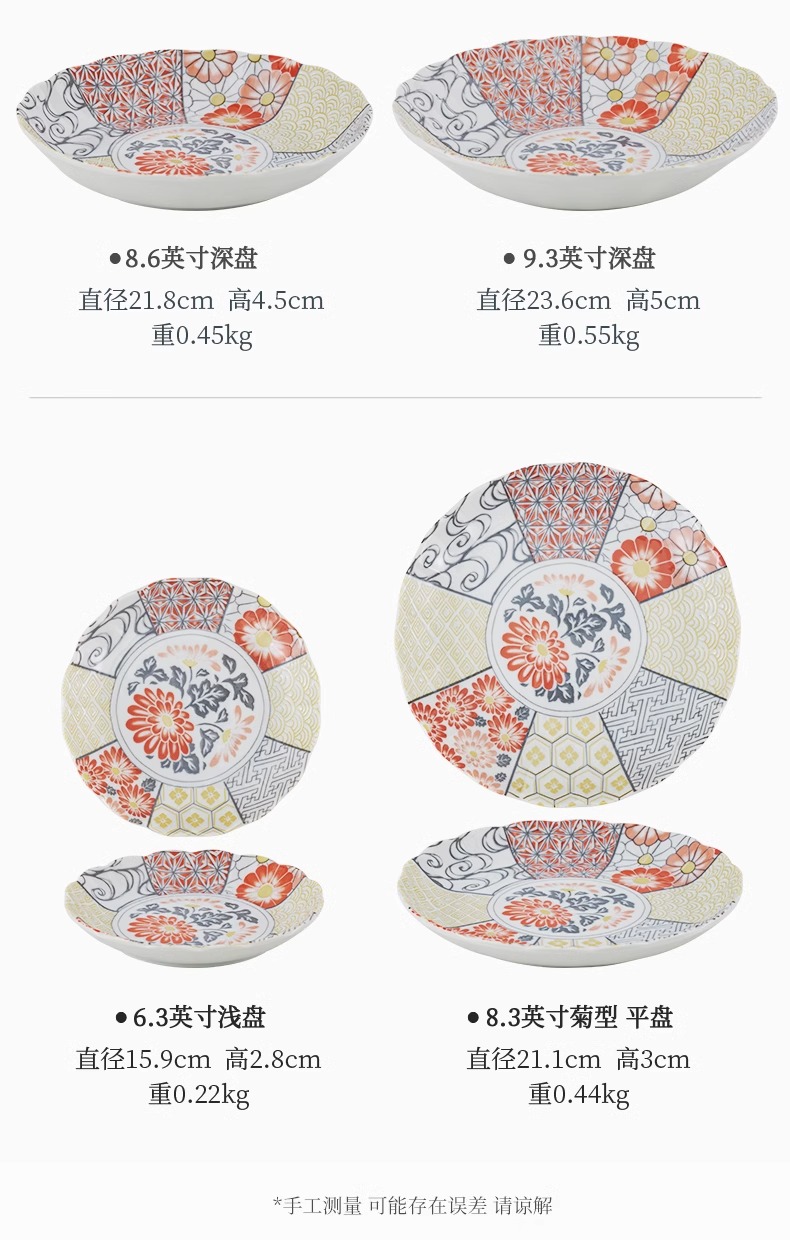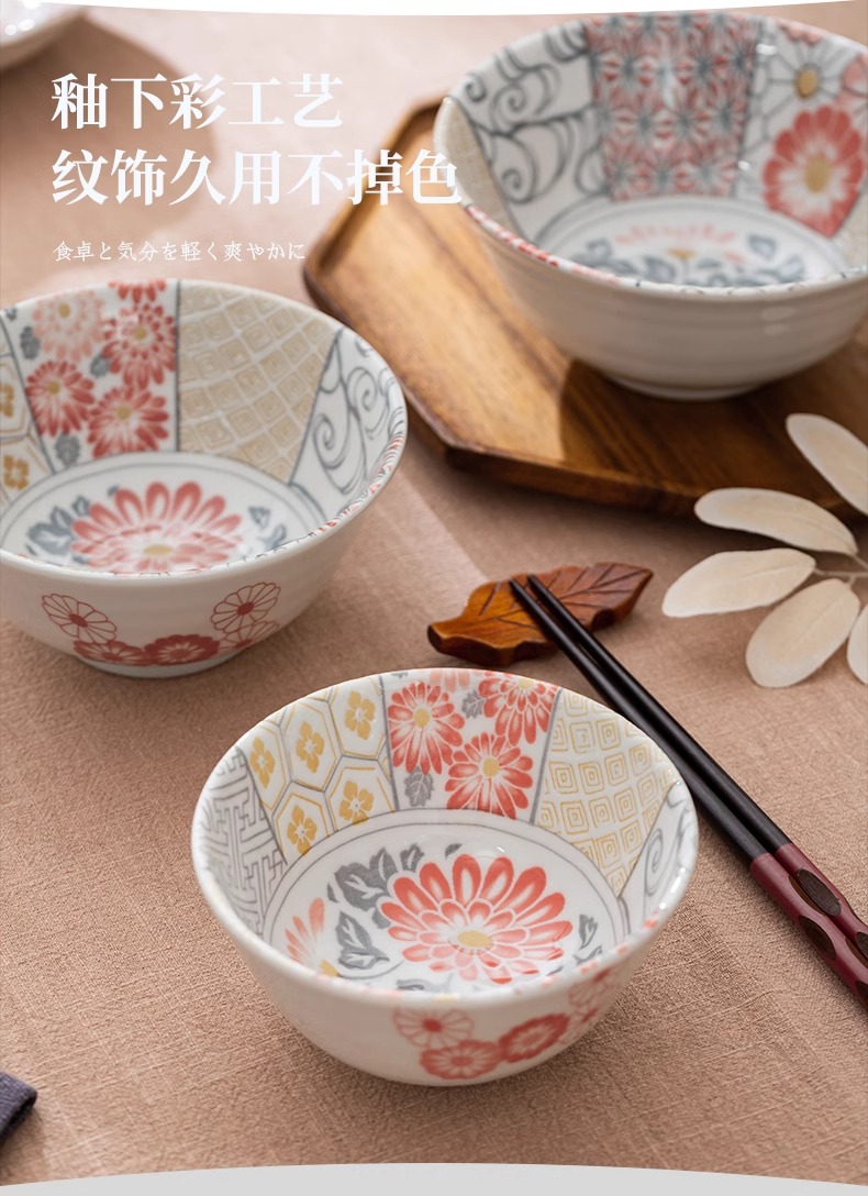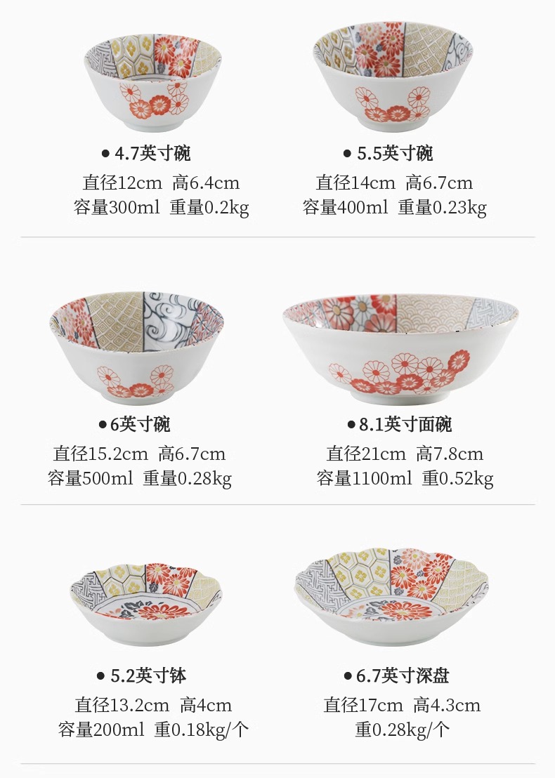 有古窑碗盘子菜盘家用高级米饭碗 日式釉下彩面碗高颜值平盘浅盘12件套