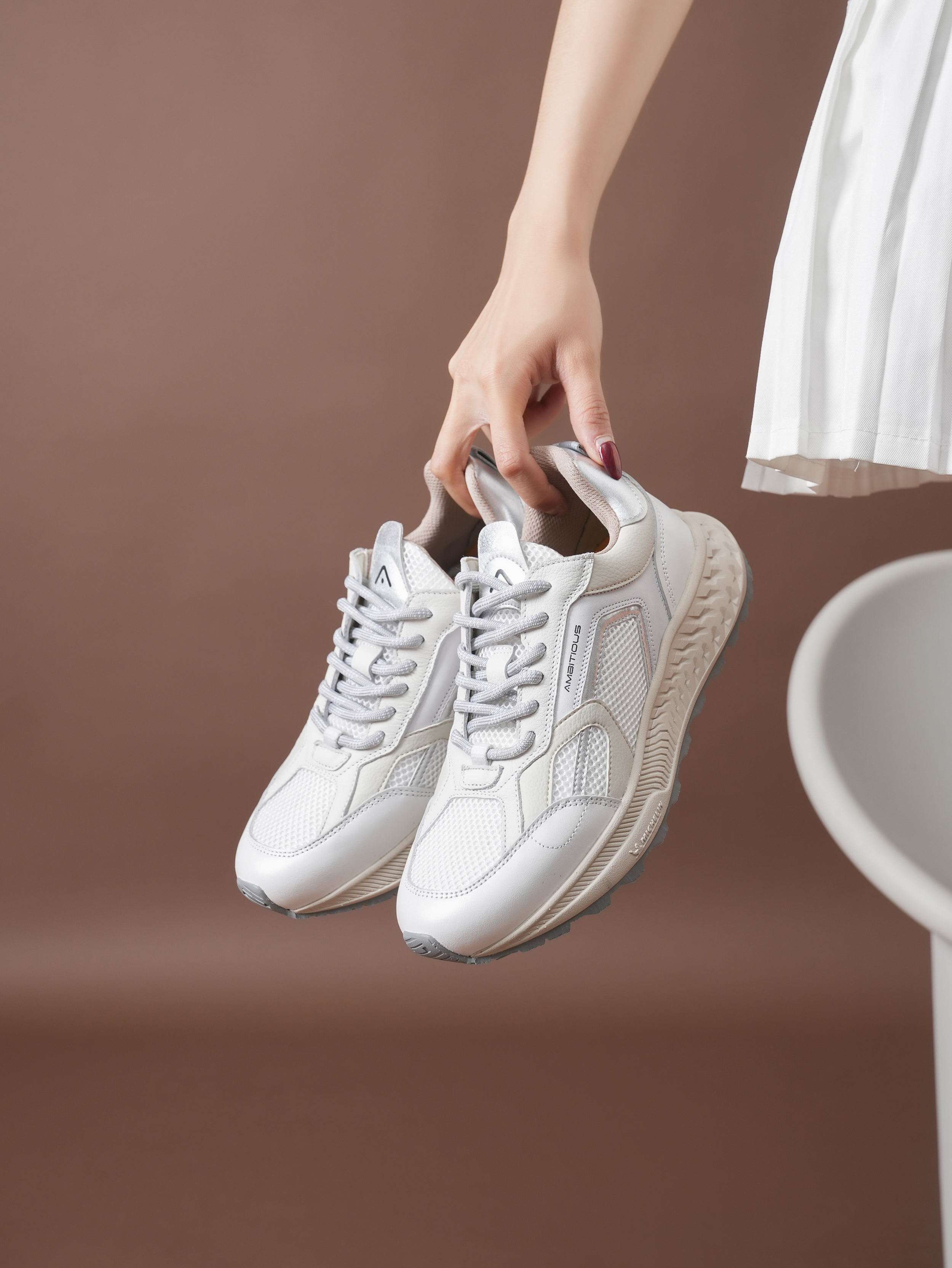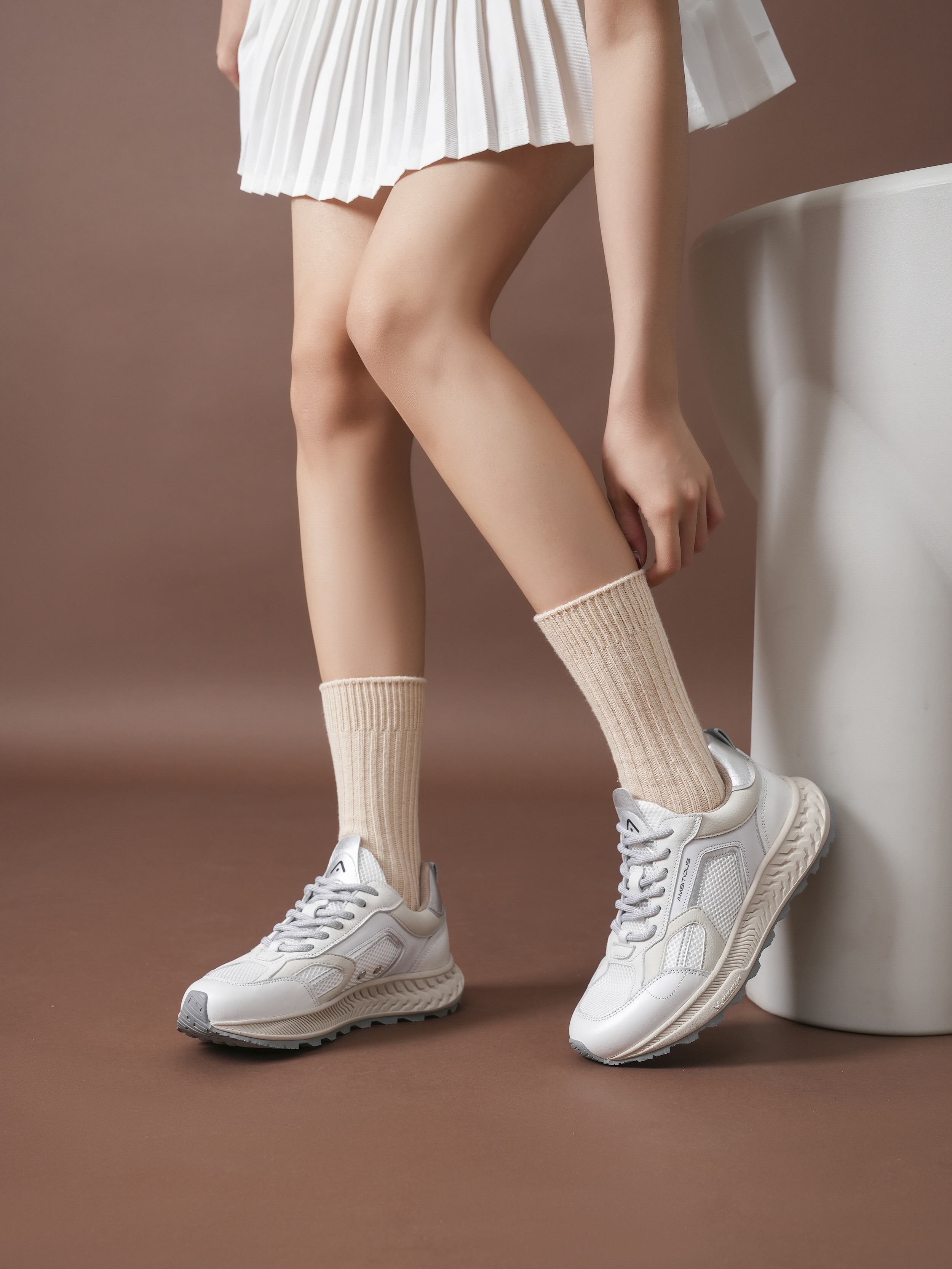 豪麟名鞋AMBITIOUS女鞋时尚休闲鞋牛皮革+织物13393WT白色