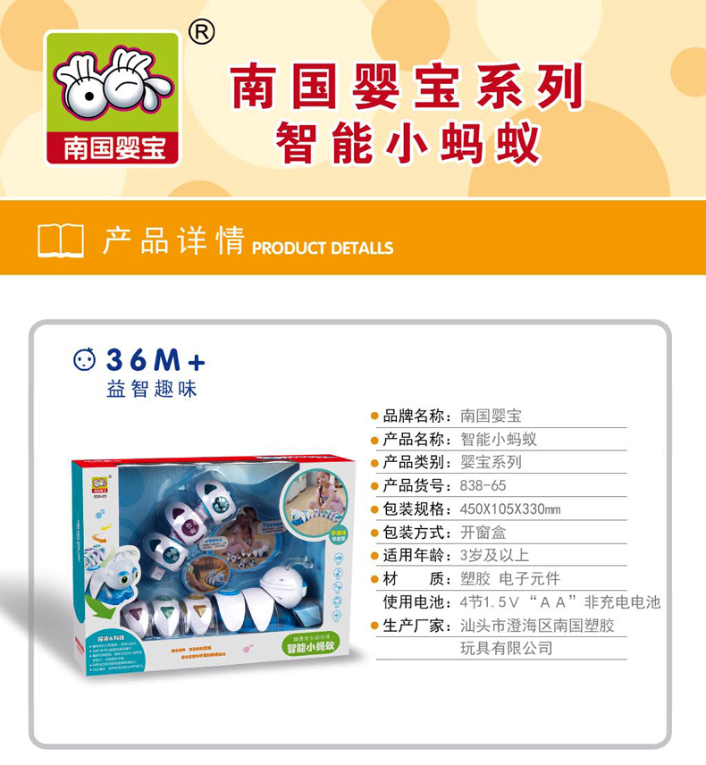 9月兑换南国婴宝电动音乐智能小蚂蚁玩具多功能毛毛虫类儿童早教益智玩具