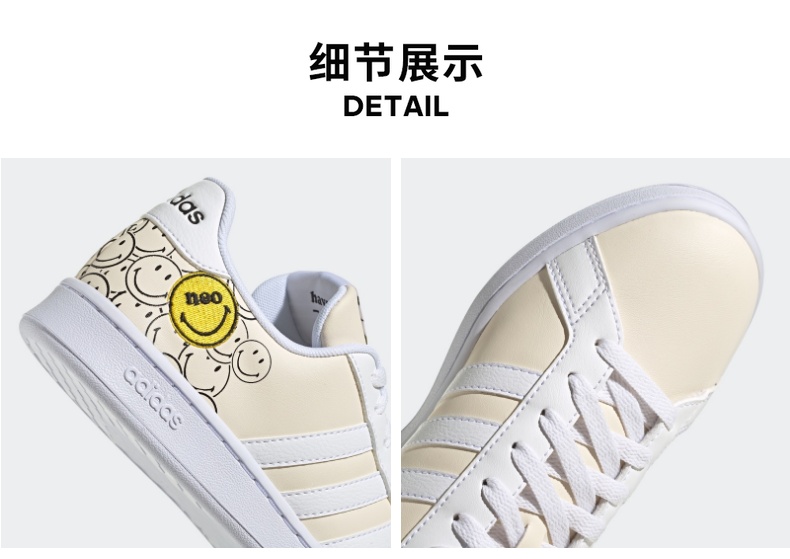 adidas阿迪达斯neo GRAND COURT SMILEY笑脸联名女休闲鞋GY5001