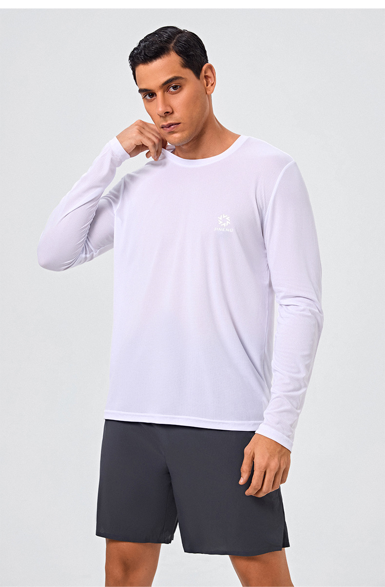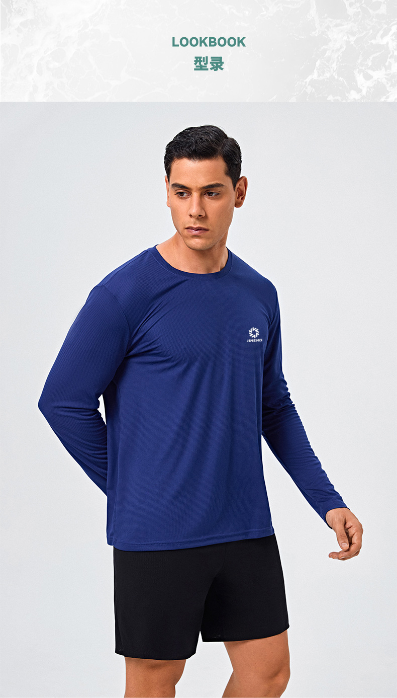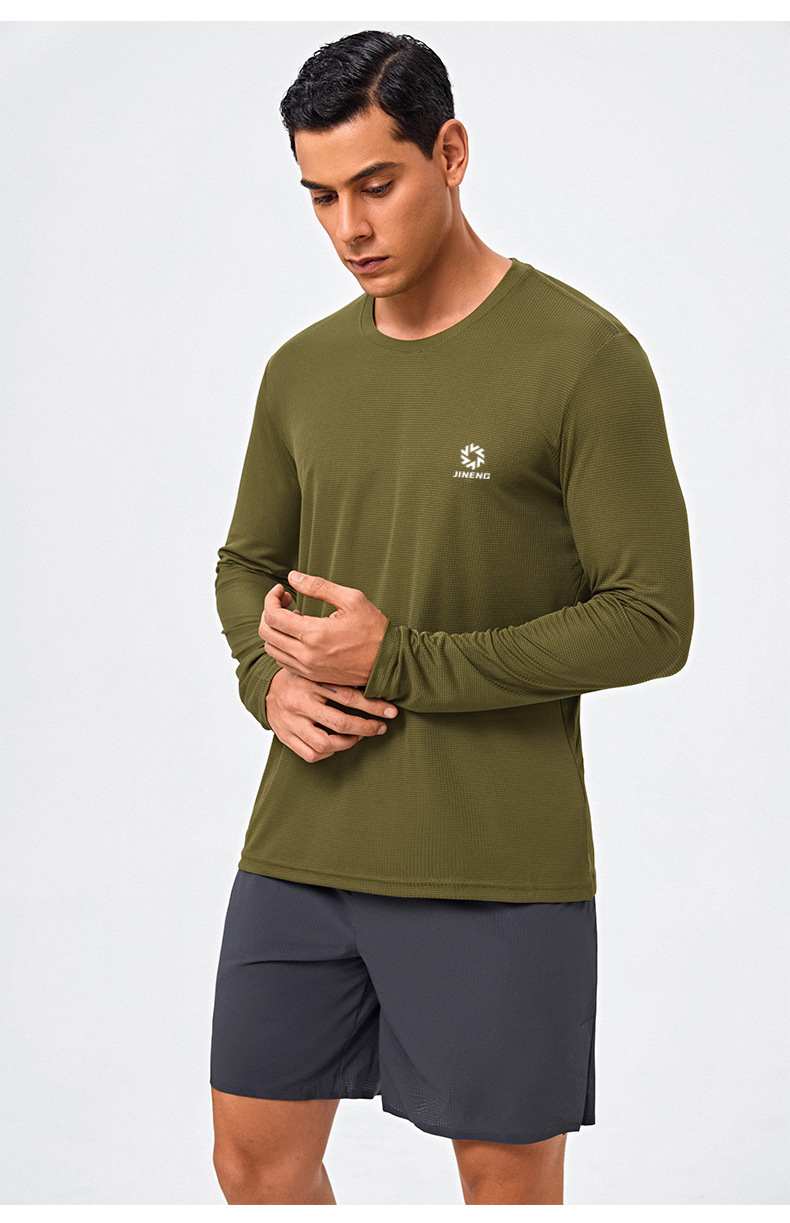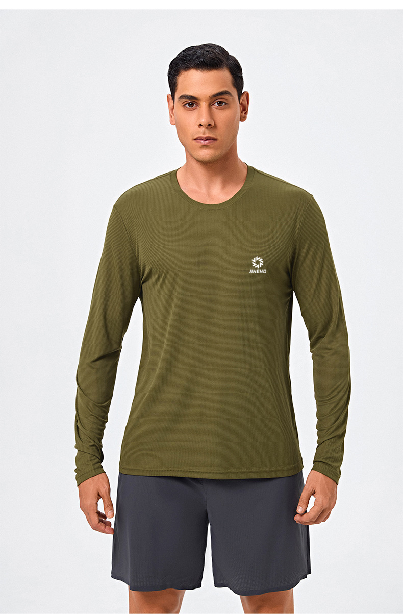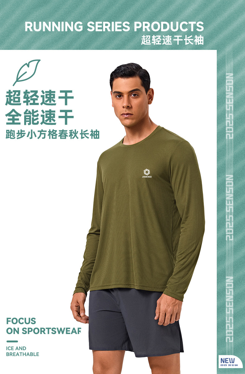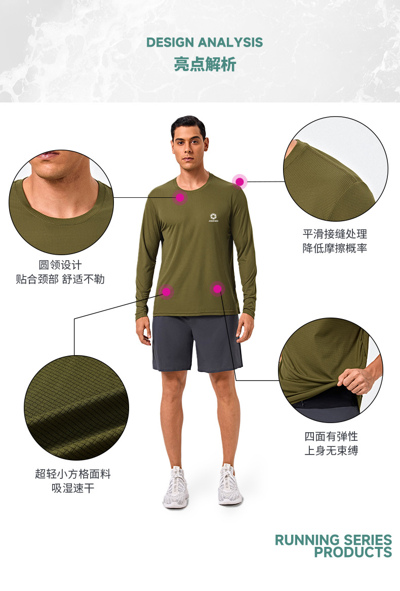 积能户外圆领上衣春夏速干透气超轻小方格运动长袖t恤跑步服