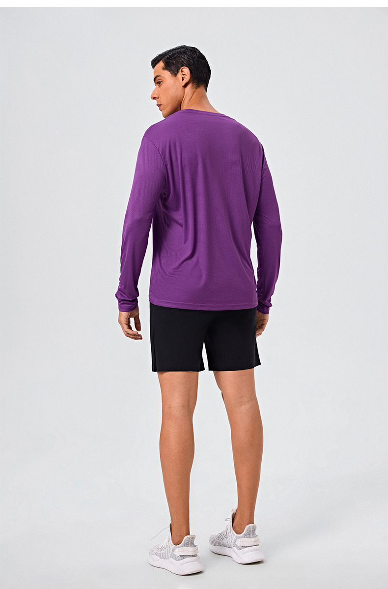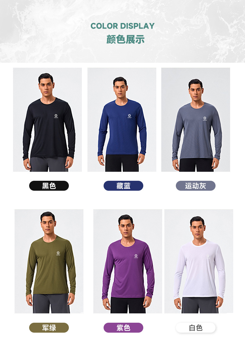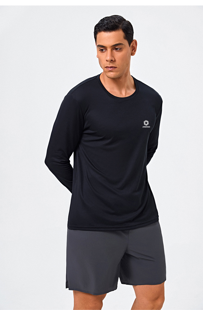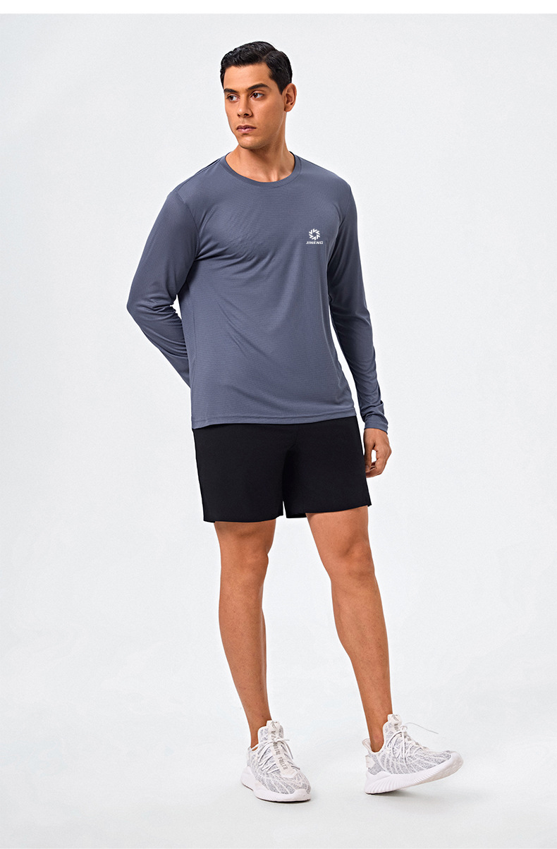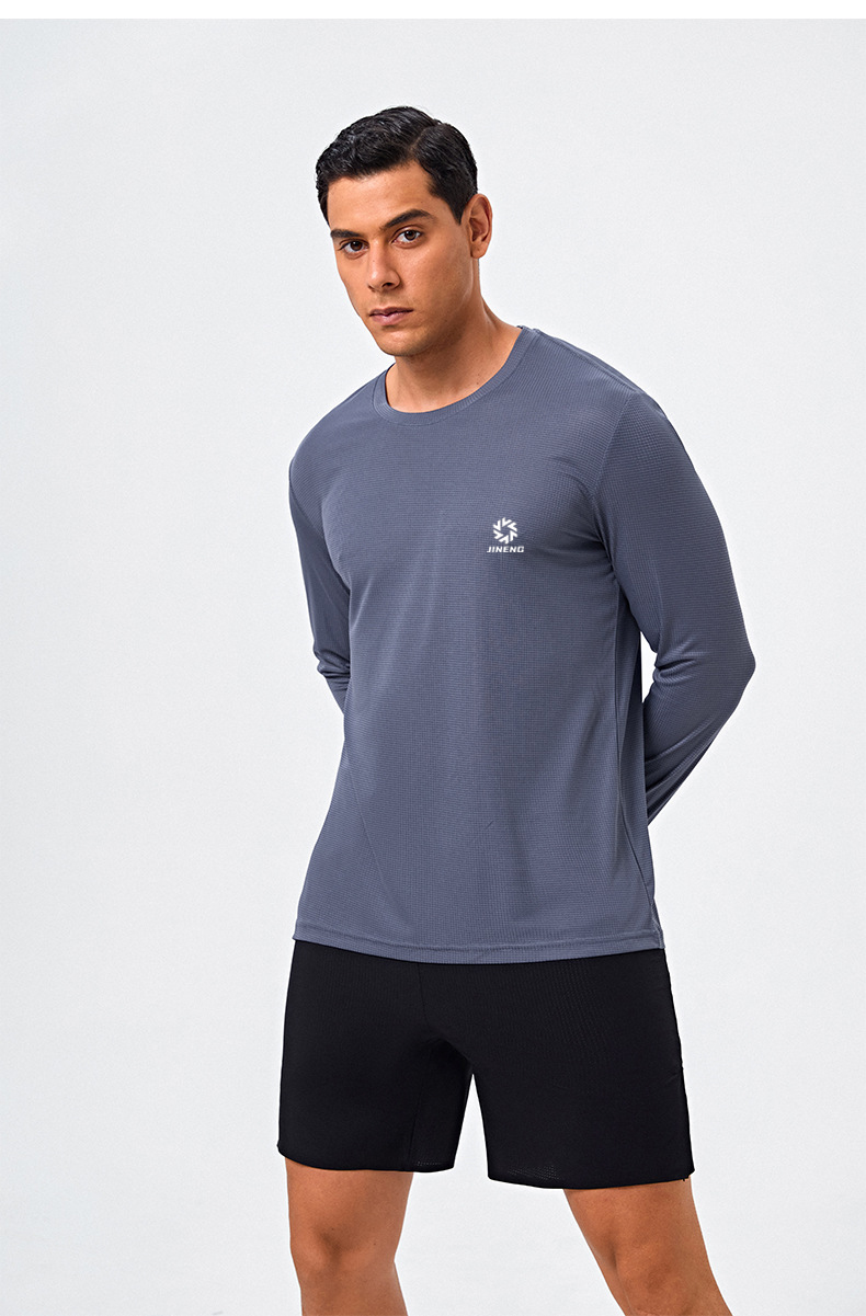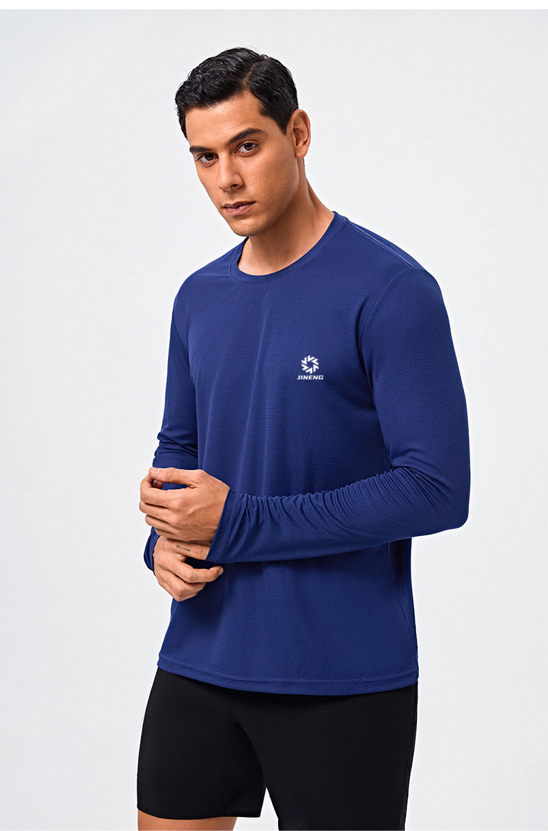 积能户外圆领上衣春夏速干透气超轻小方格运动长袖t恤跑步服