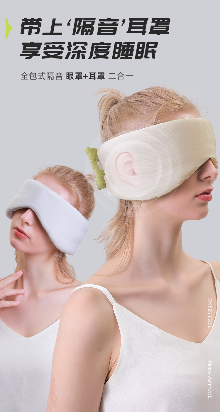 「温凉双感!眼罩+耳罩二合一」新款太空舱遮光眼罩 居家日用布艺睡眠办公旅行午休全包降噪护眼罩