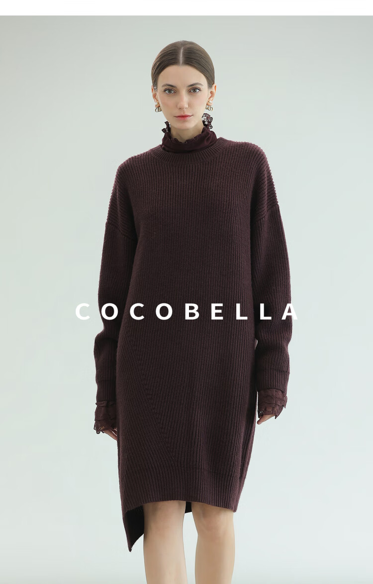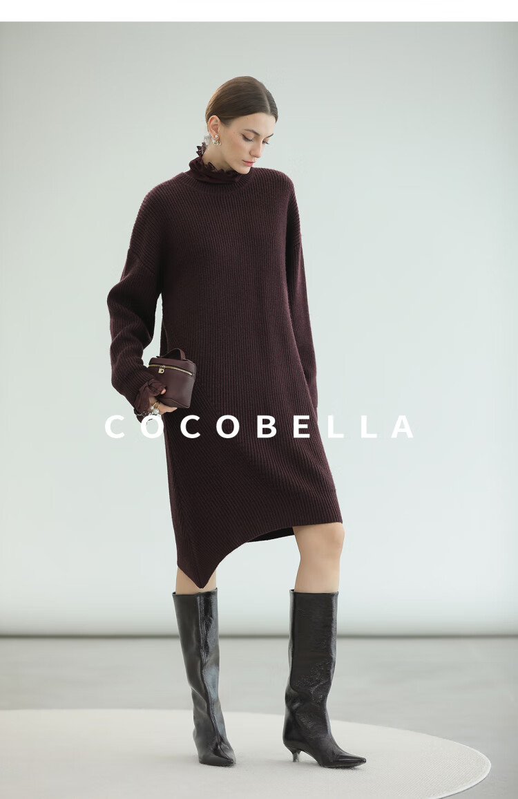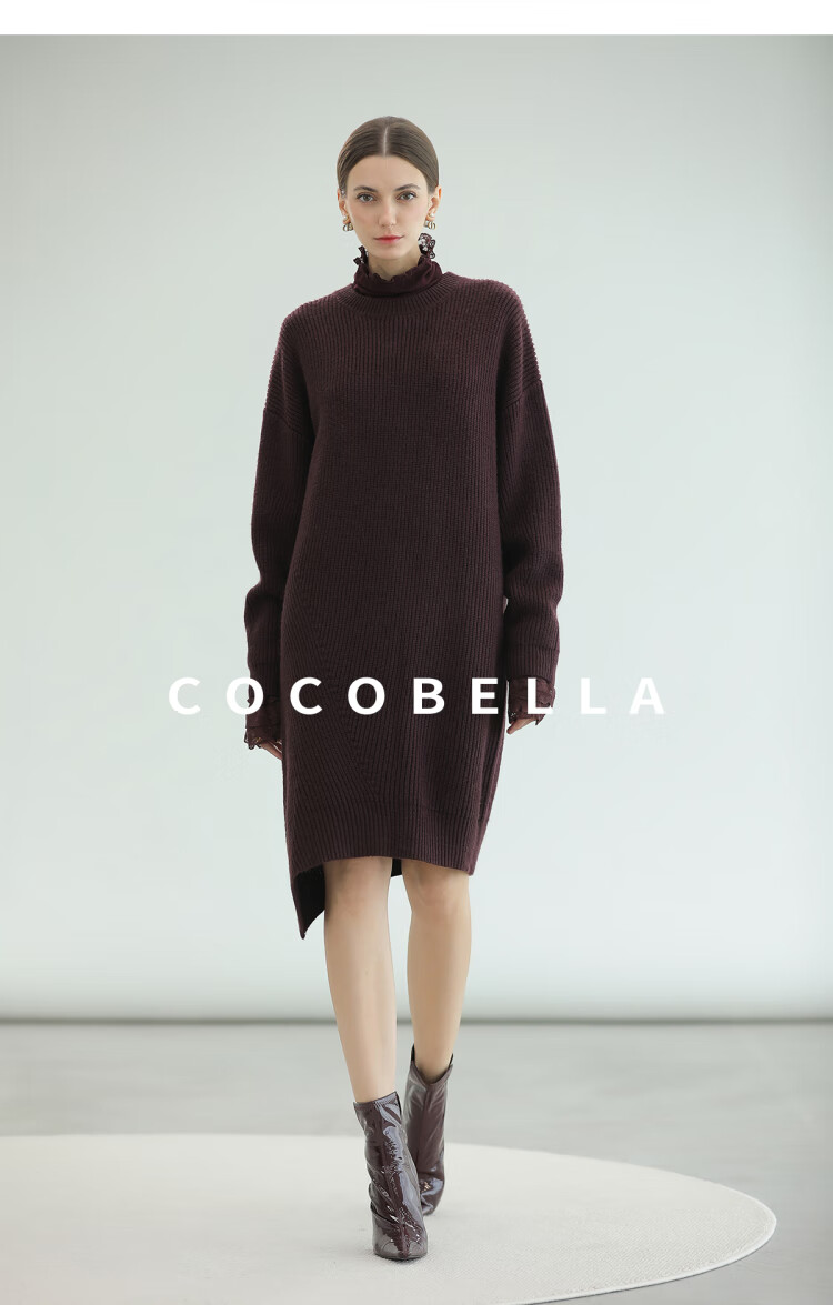 COCOBELLA设计感软糯粗针螺纹毛衣裙女秋冬针织连衣裙MZ3131