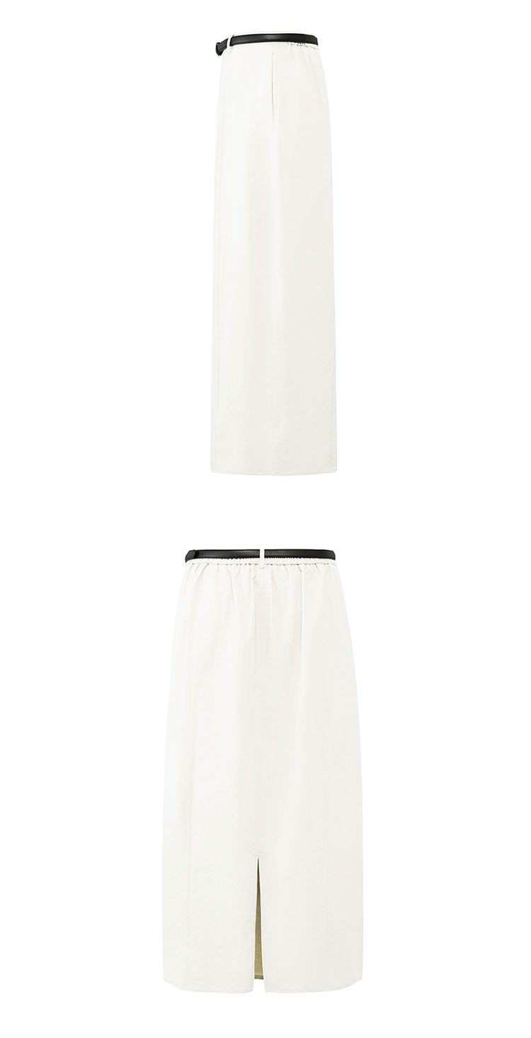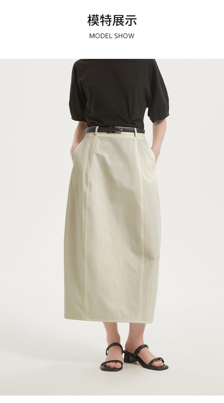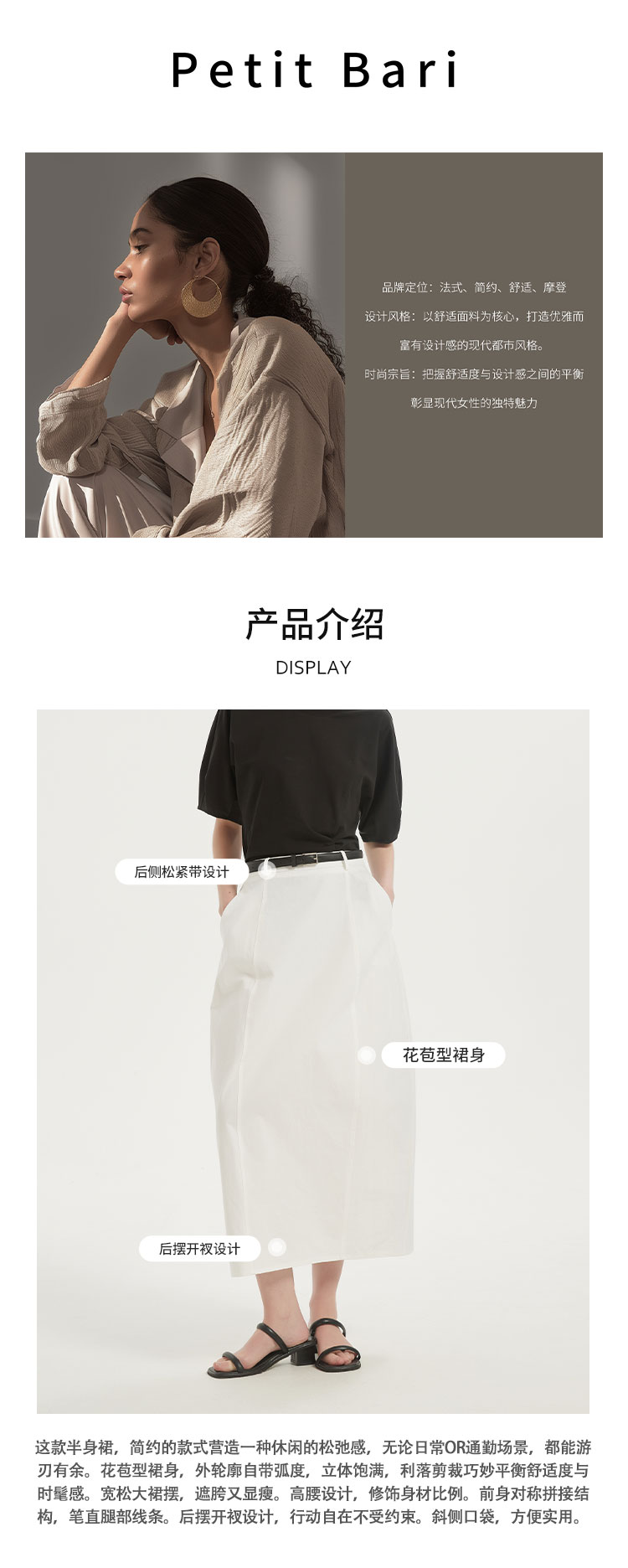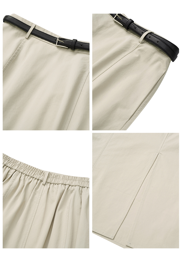 【2件9折】【Petit Bari】(多色)时髦廓型花苞开衩半身裙(附皮带)
