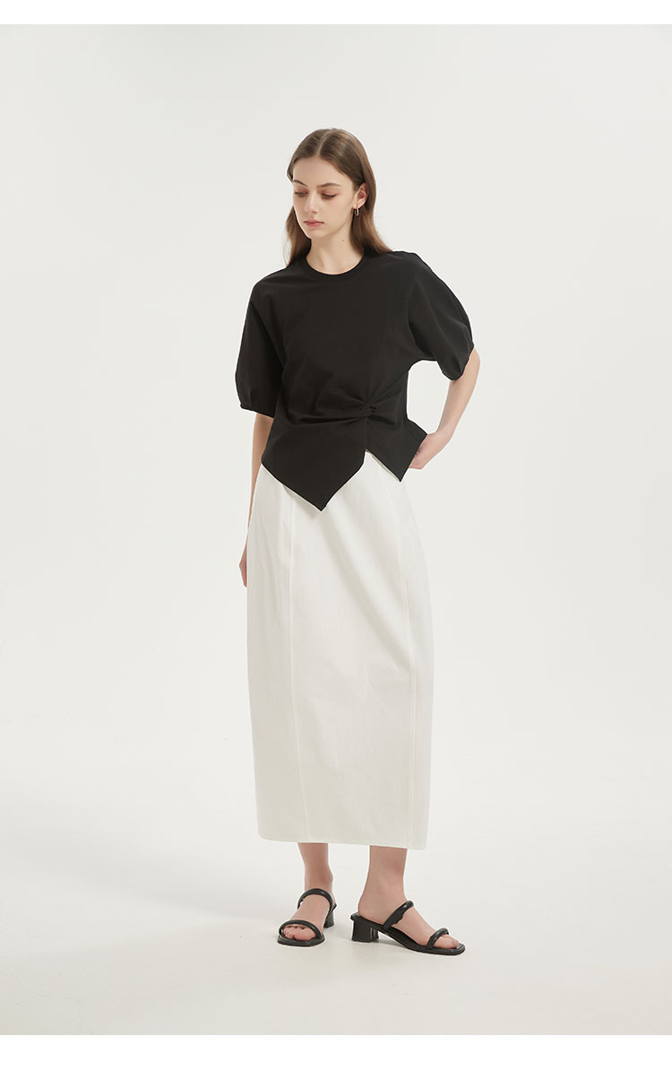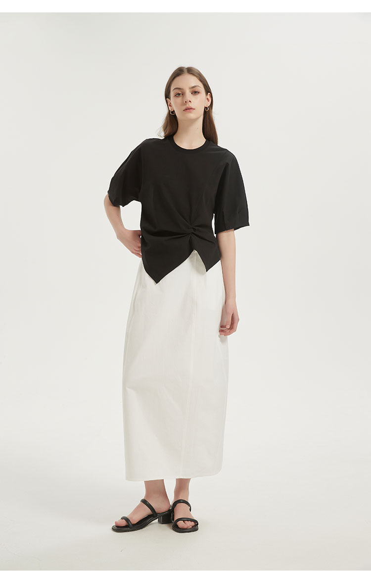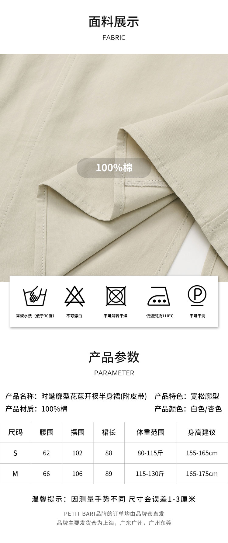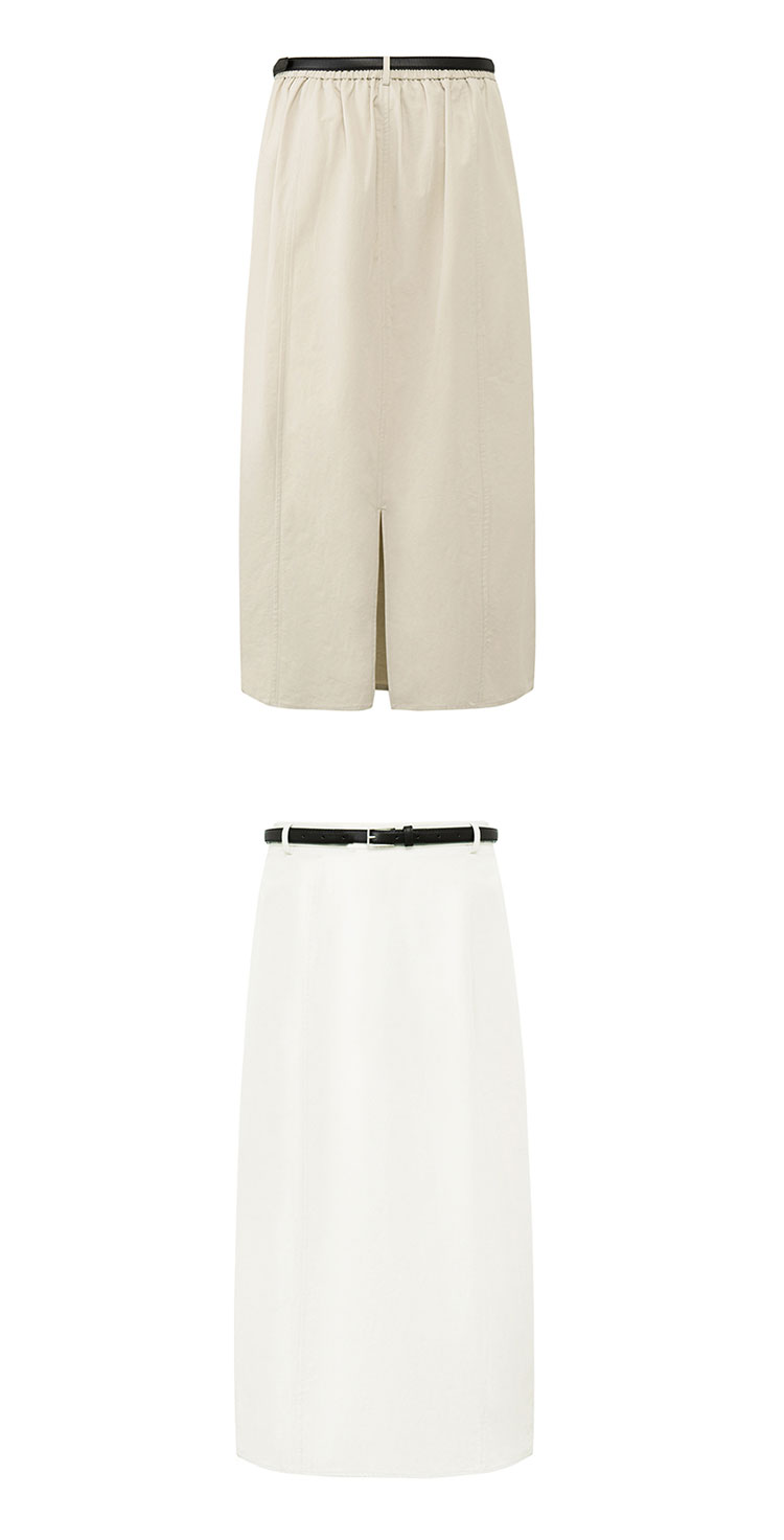 【2件9折】【Petit Bari】(多色)时髦廓型花苞开衩半身裙(附皮带)