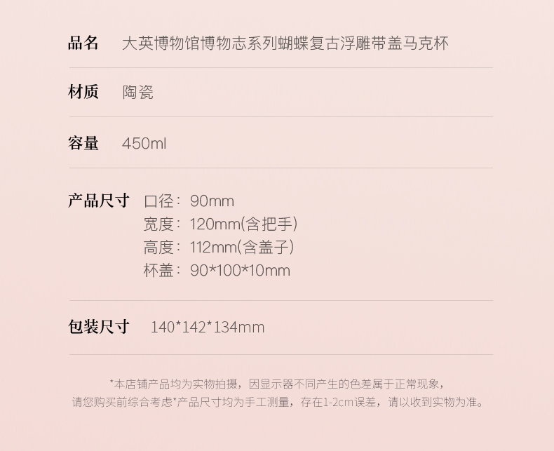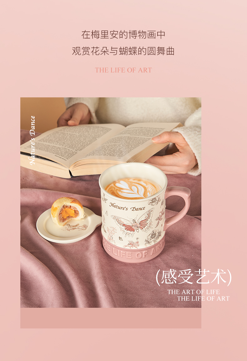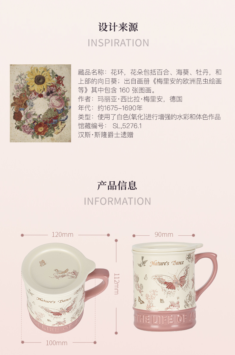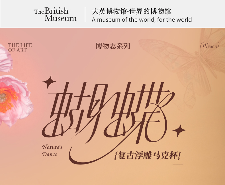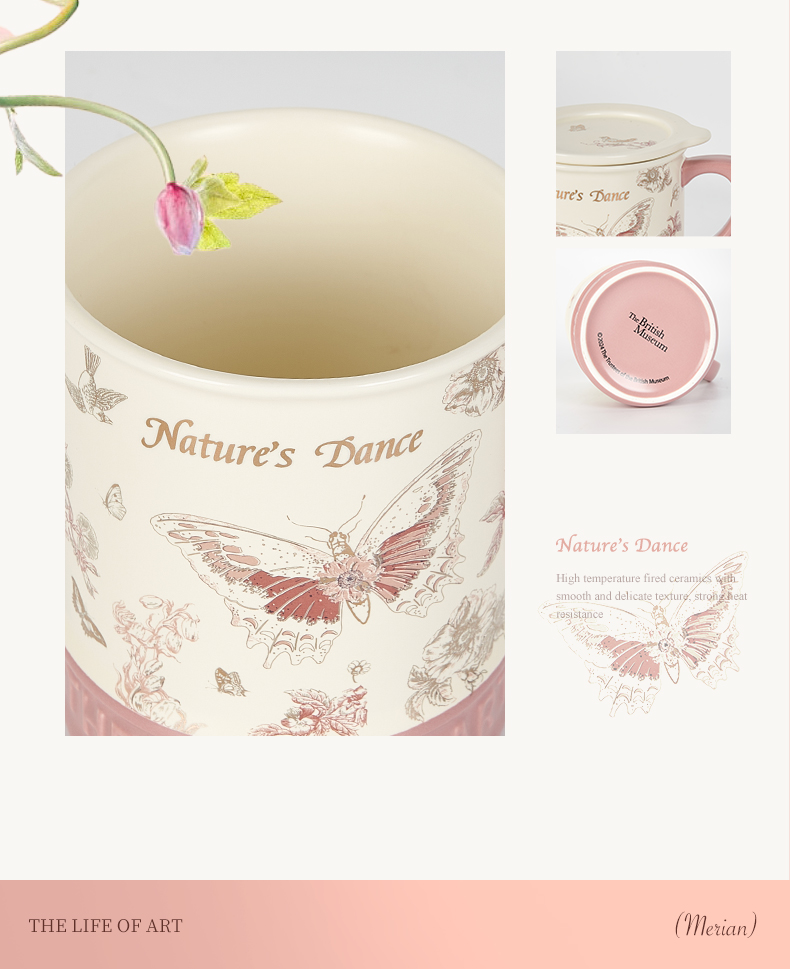 大英博物馆博物志系列蝴蝶复古浮雕带盖马克杯