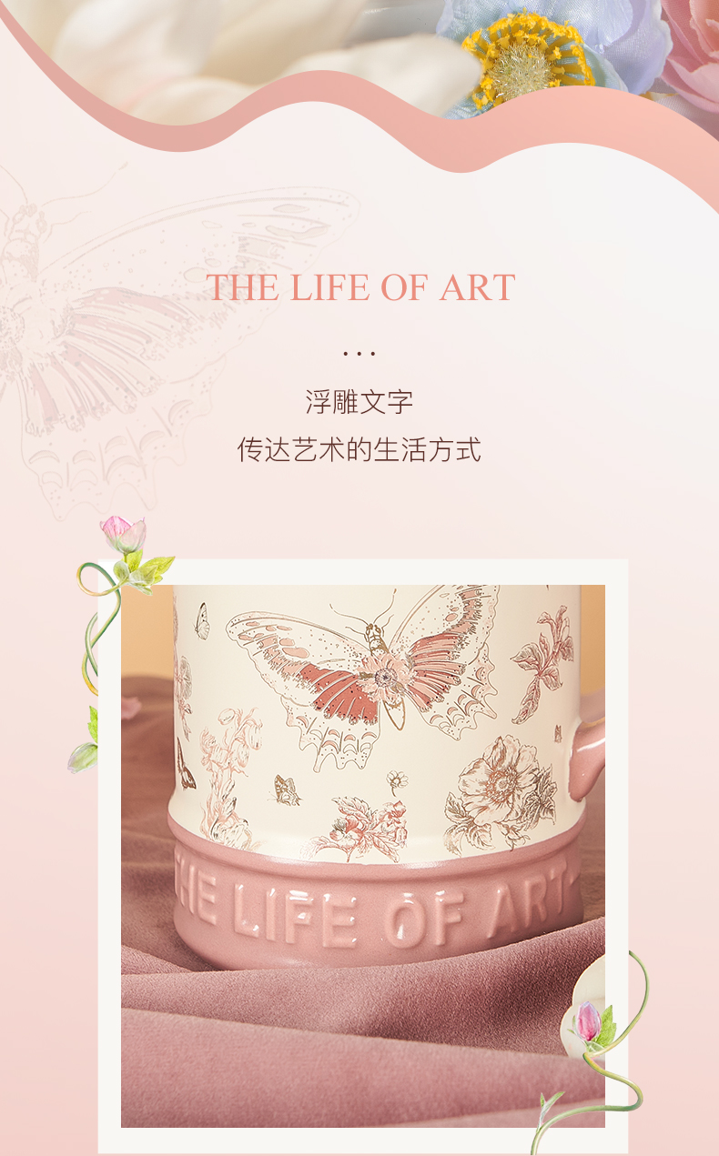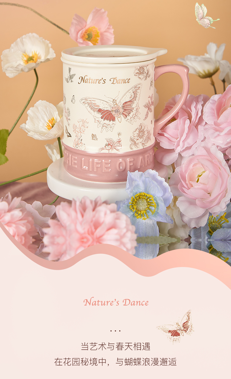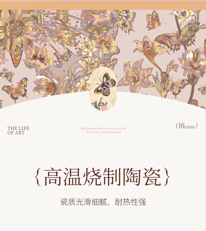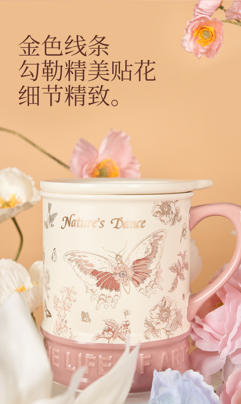 大英博物馆博物志系列蝴蝶复古浮雕带盖马克杯