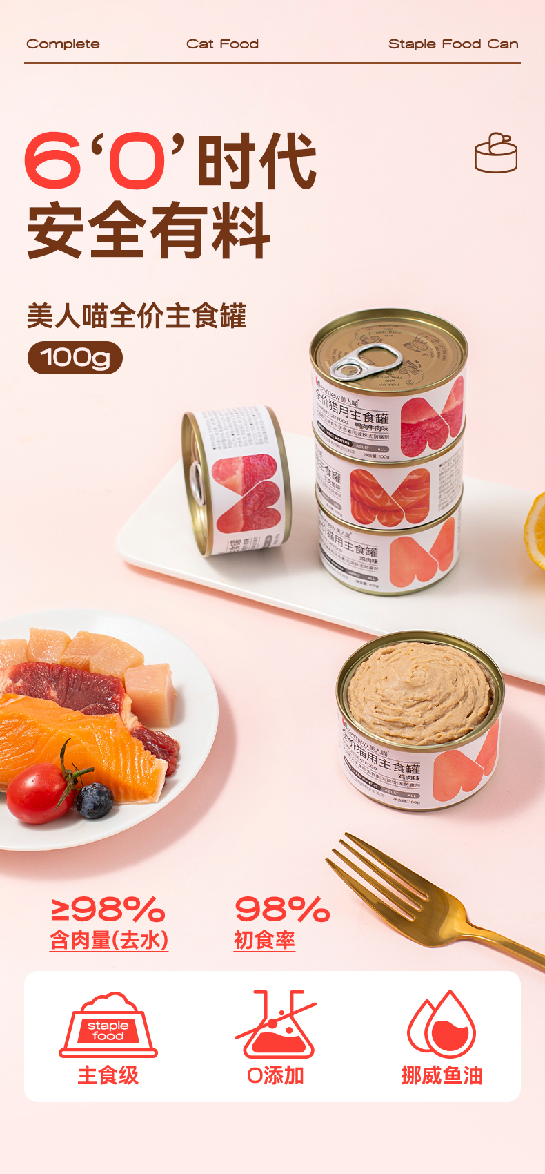 美人喵 全价主食罐 100g*3罐 猫罐头