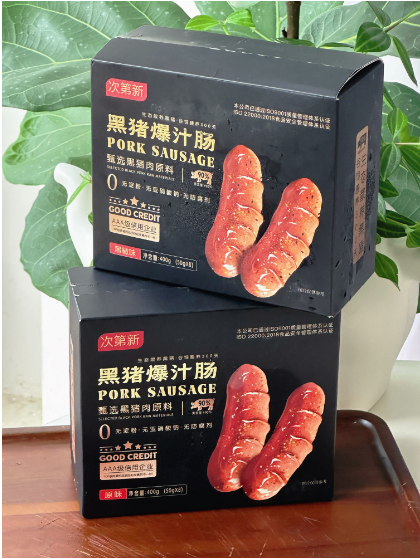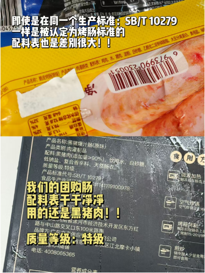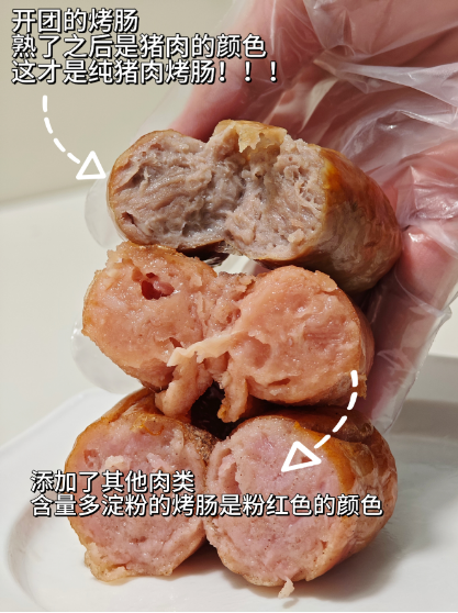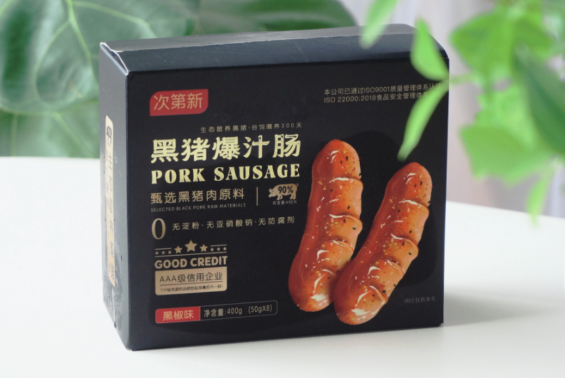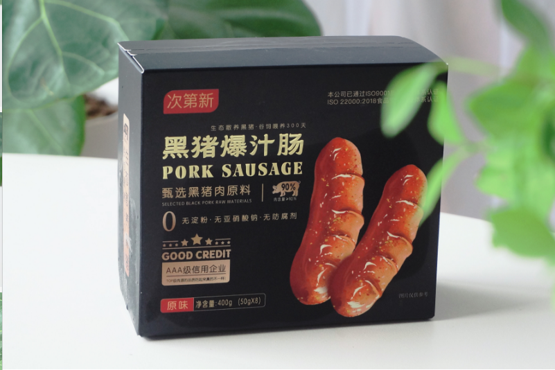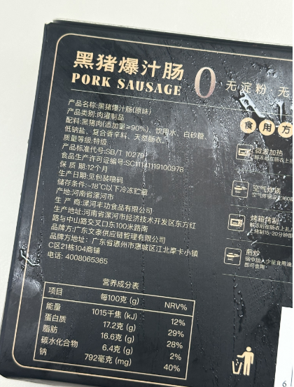 【黑猪肉爆汁烤肠】配料表非常干净,肉质紧实,调味不重,咸香微甜