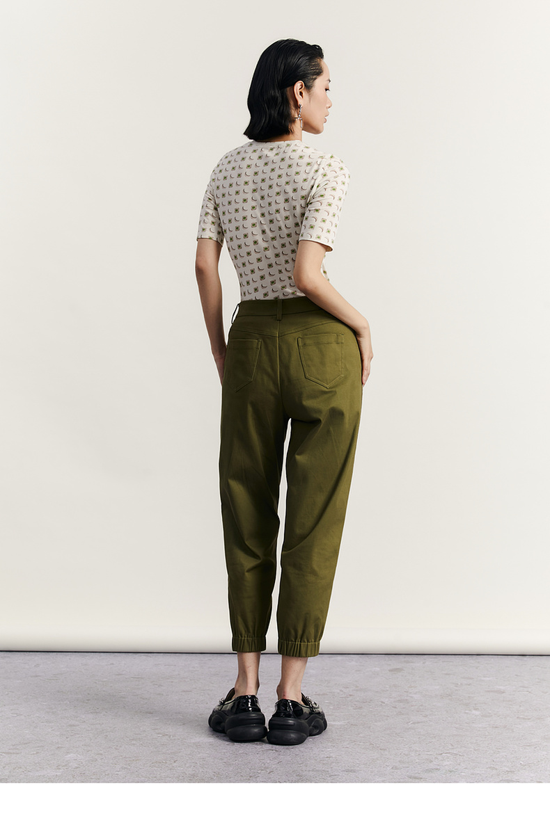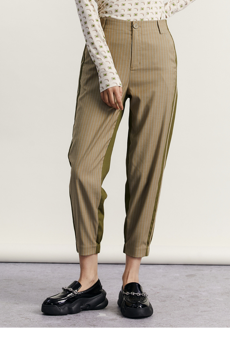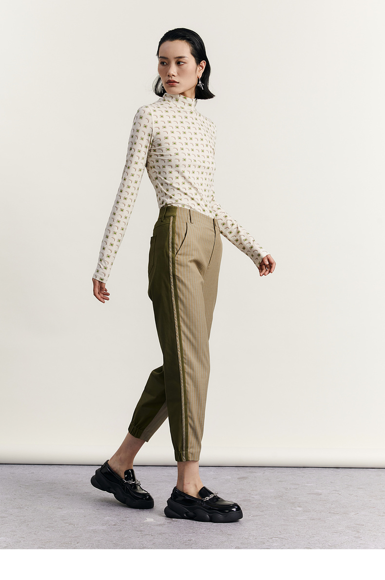谜底束脚休闲裤女2023秋季新款时尚合体萝卜裤拼接拼色233MK1116
