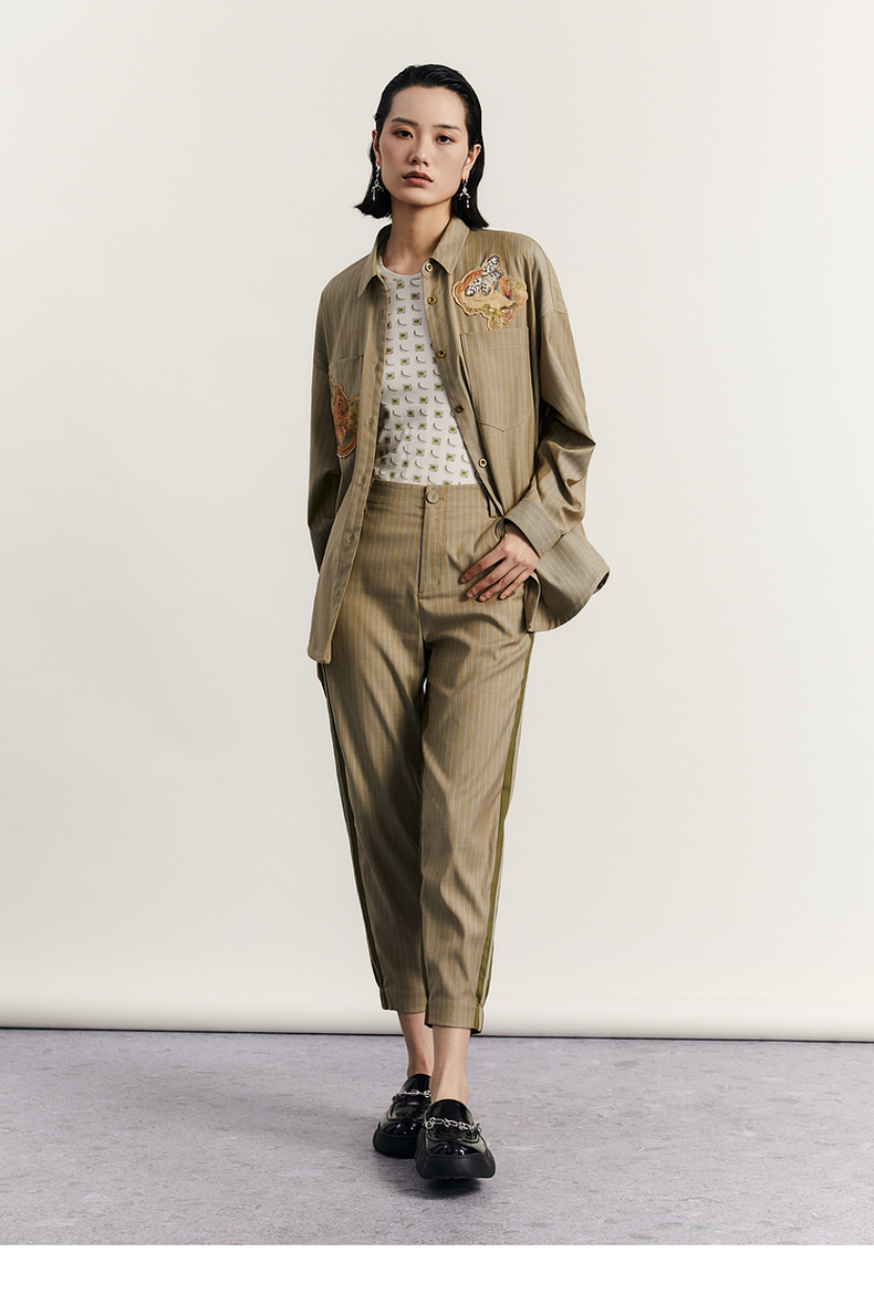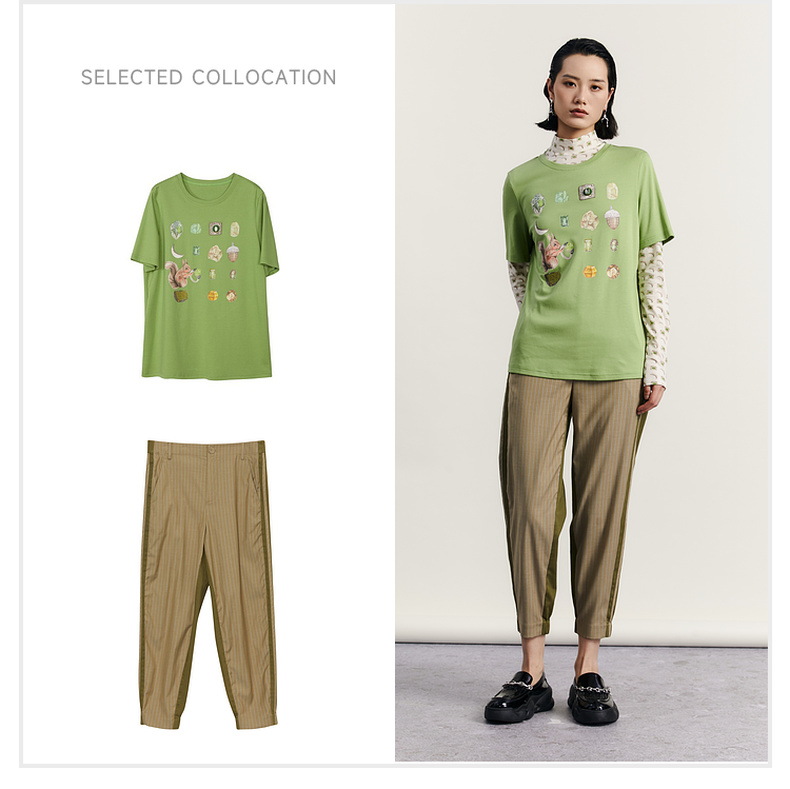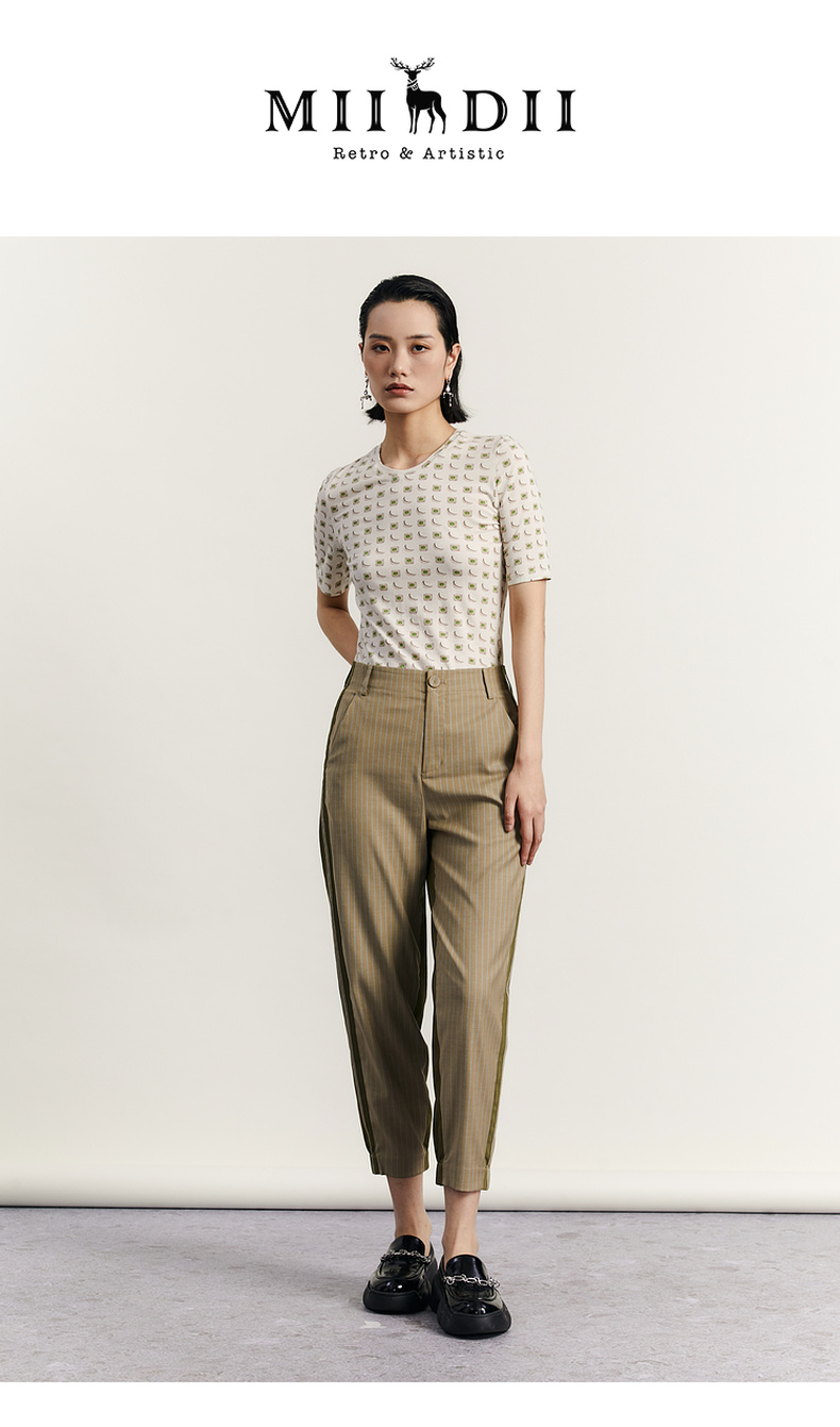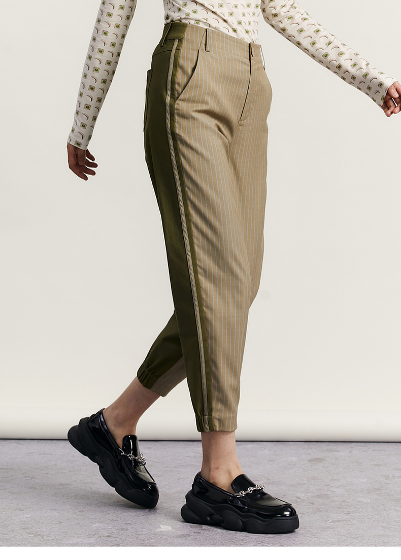 谜底束脚休闲裤女2023秋季新款时尚合体萝卜裤拼接拼色233MK1116
