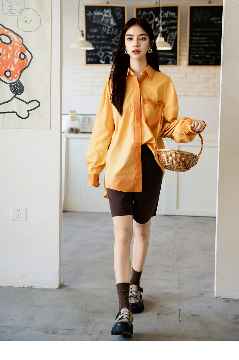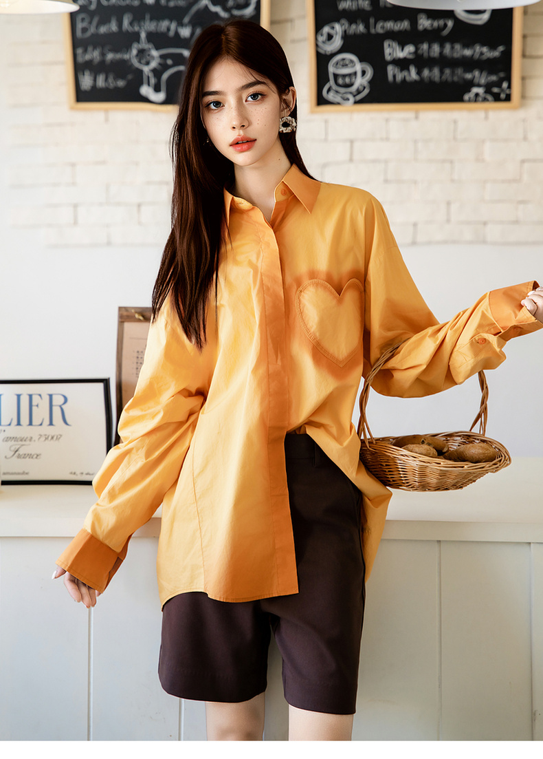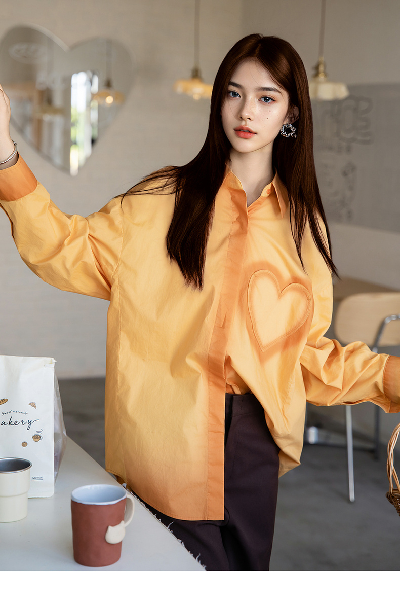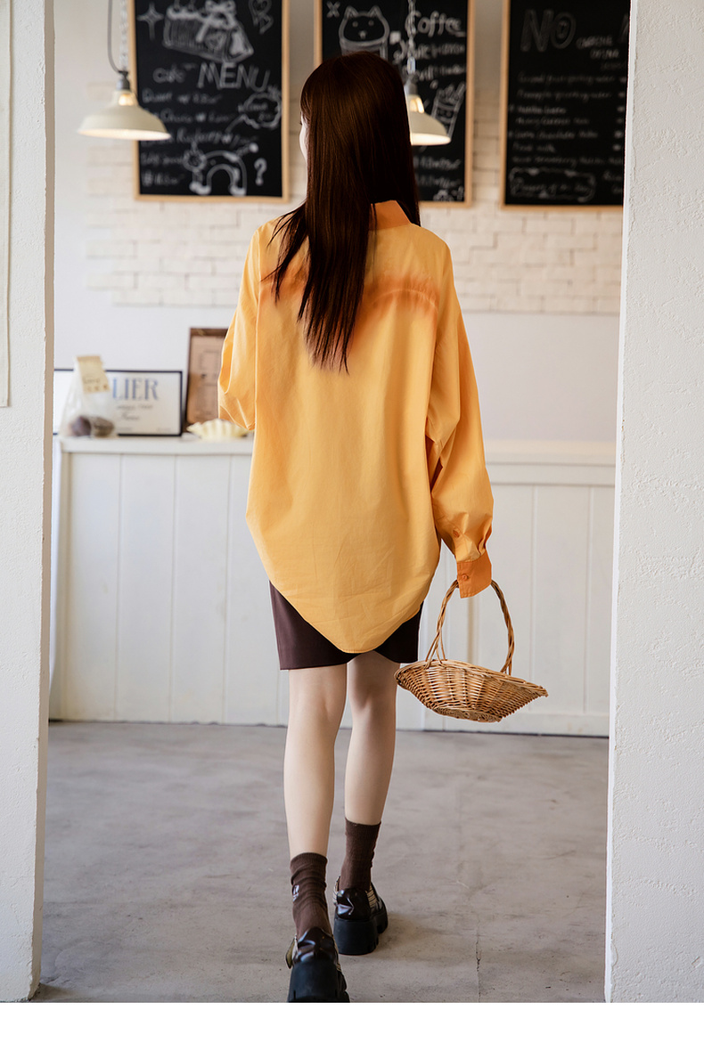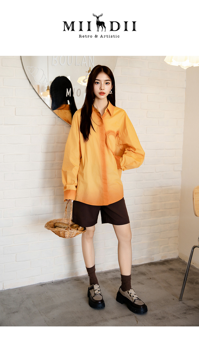 谜底大廓形衬衣2025秋季新款复古文艺渐变色中长款衬衫257MC7748