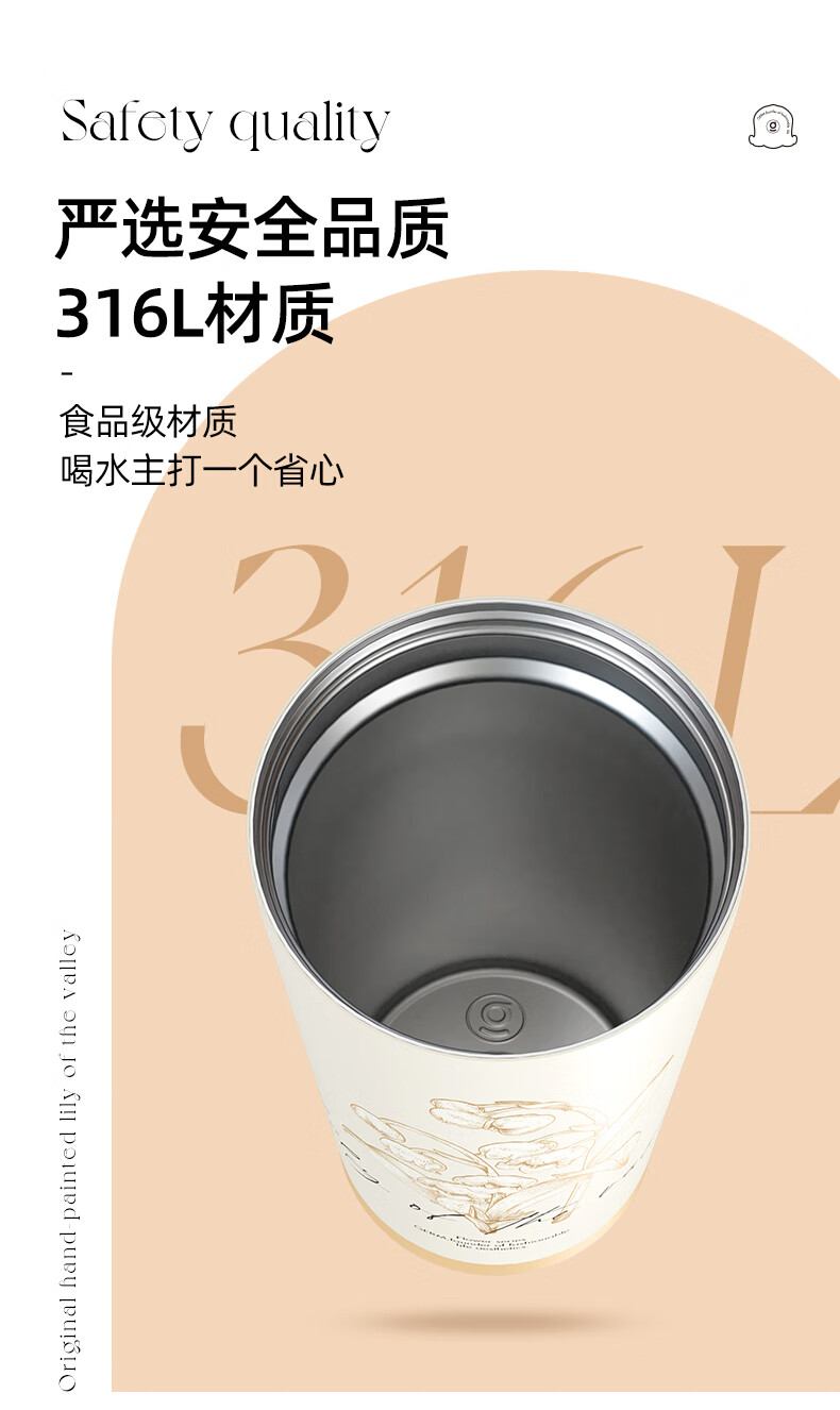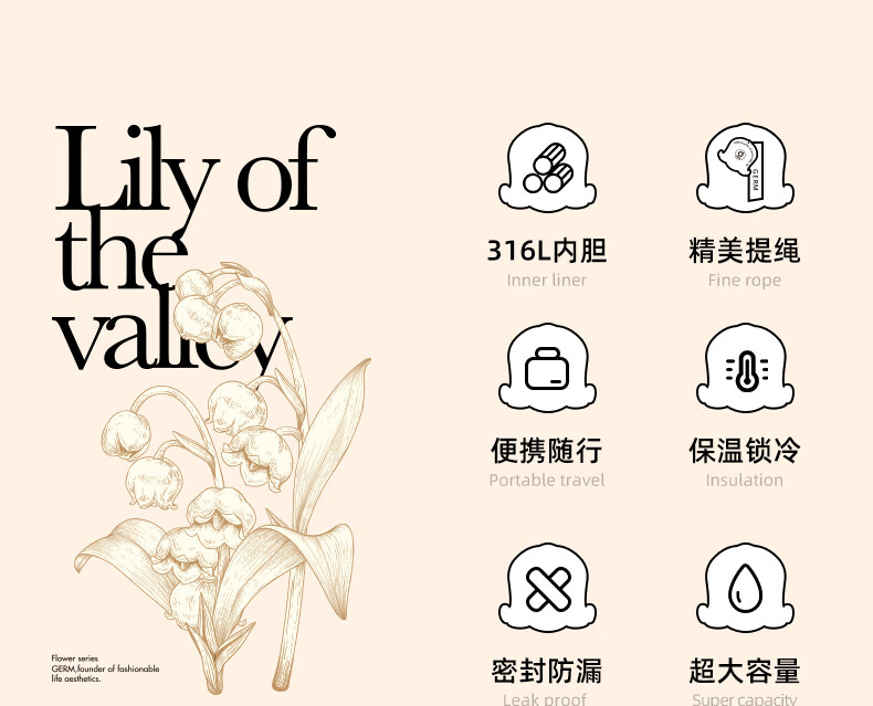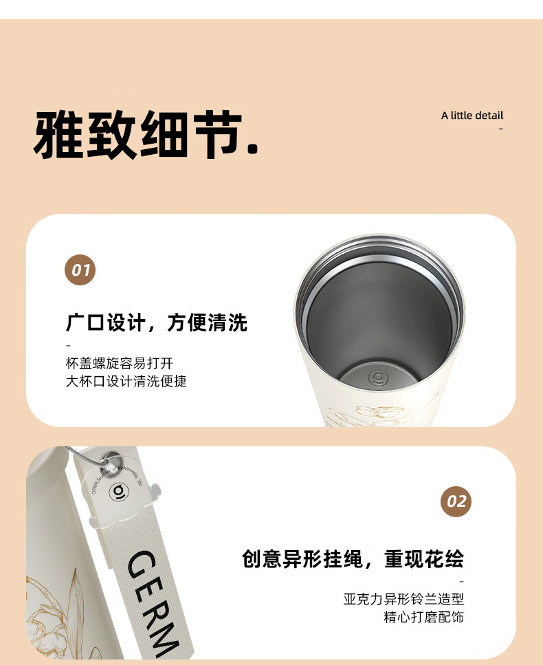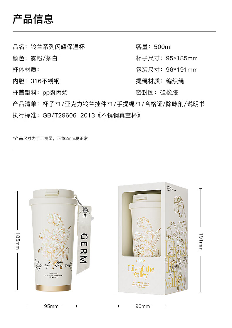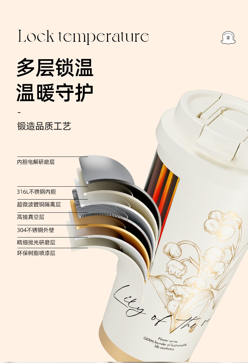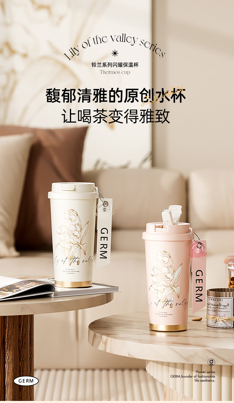 【小家电】格沵(germ)铃兰系列保温杯咖啡杯女生高颜值水杯便携随行保冷杯子女礼物 500ml HF