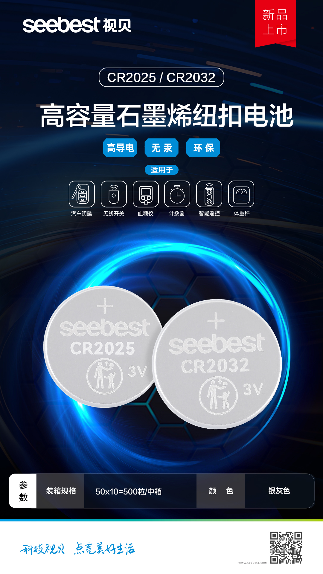 CR2025/CR2032 高容量石墨烯纽扣电池