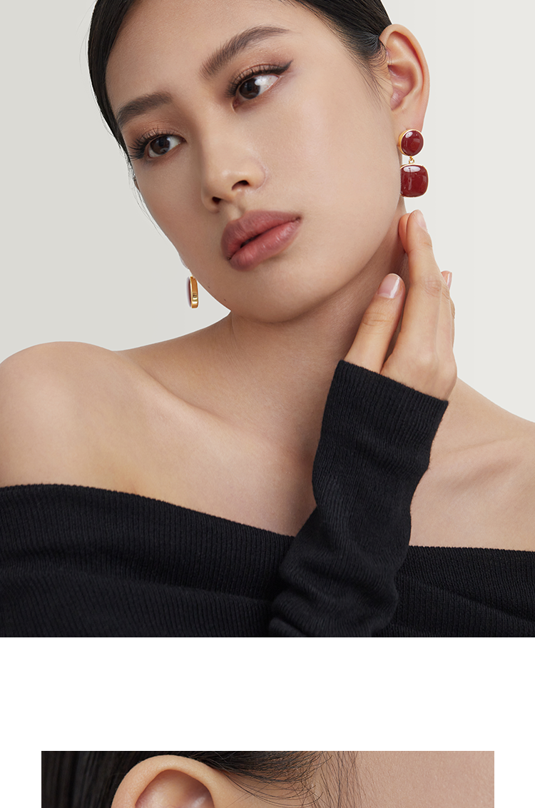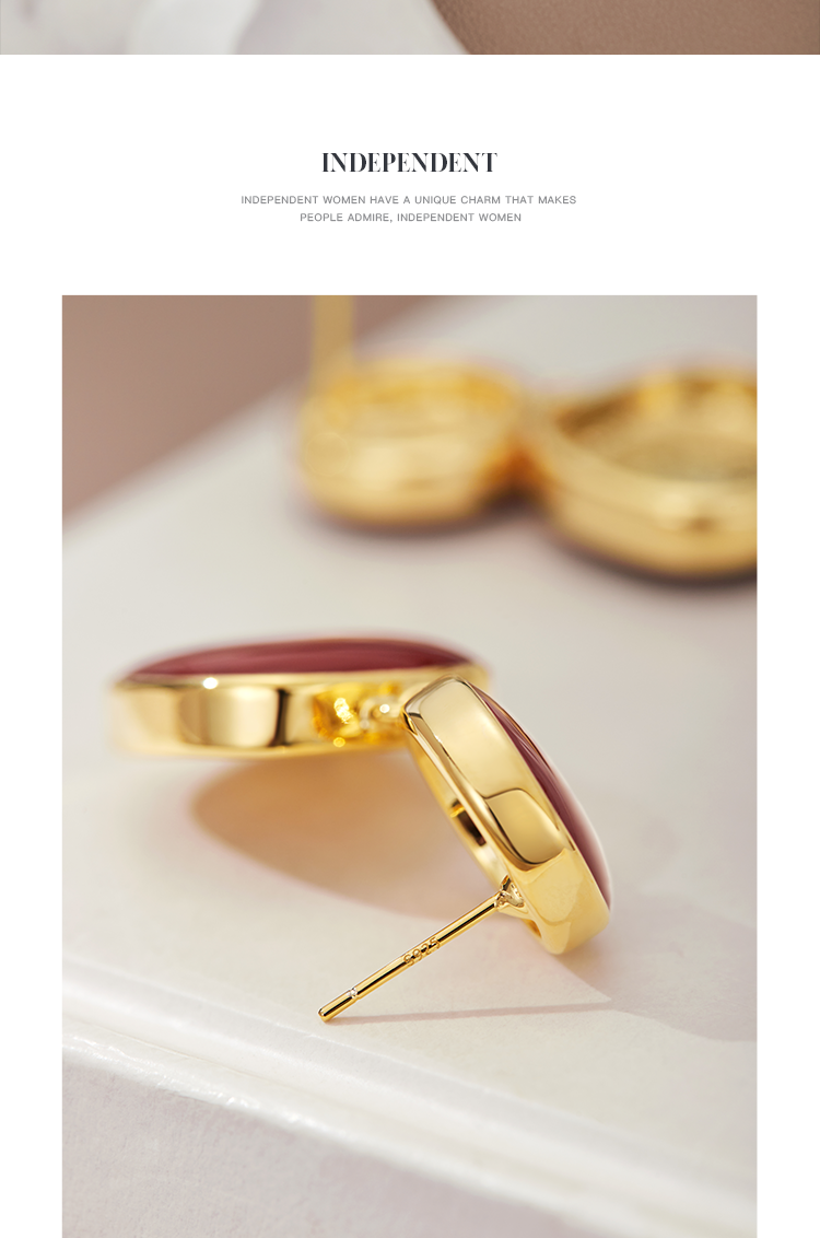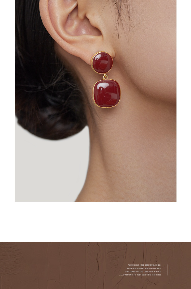 Oflye潮流饰品 酒红色本命年耳环女小众气质耳钉轻奢高级感耳饰