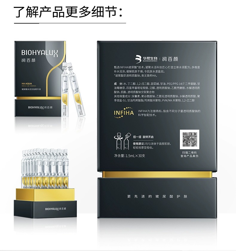 润百颜玻尿酸第3代水润次抛精华液1.5ml*30支,赠送5支旅行装❗️❗️,深层补水保湿滋润维稳肌肤