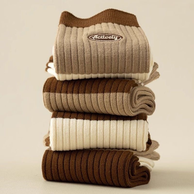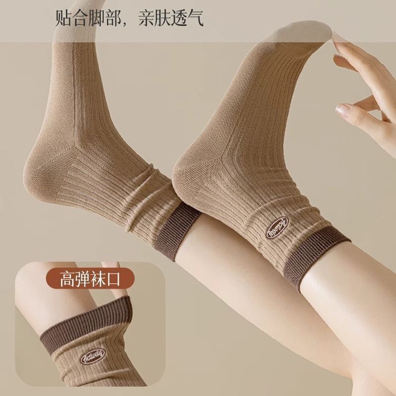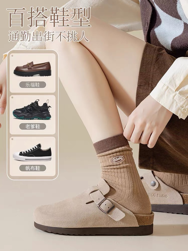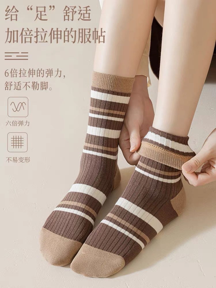 美拉德高筒堆堆袜女 撞色春秋ins 日系条纹袜子 学生潮流袜子 百搭高筒秋冬女士中筒袜