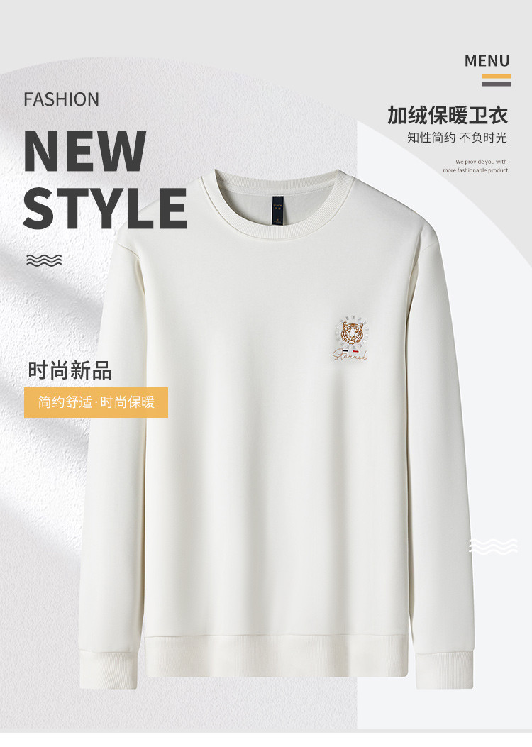 罗蒙男士秋冬加绒加厚卫衣金丝线绣花卫衣男秋冬保暖男上衣休闲百搭