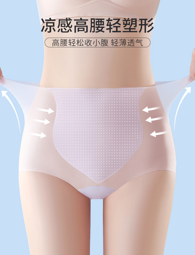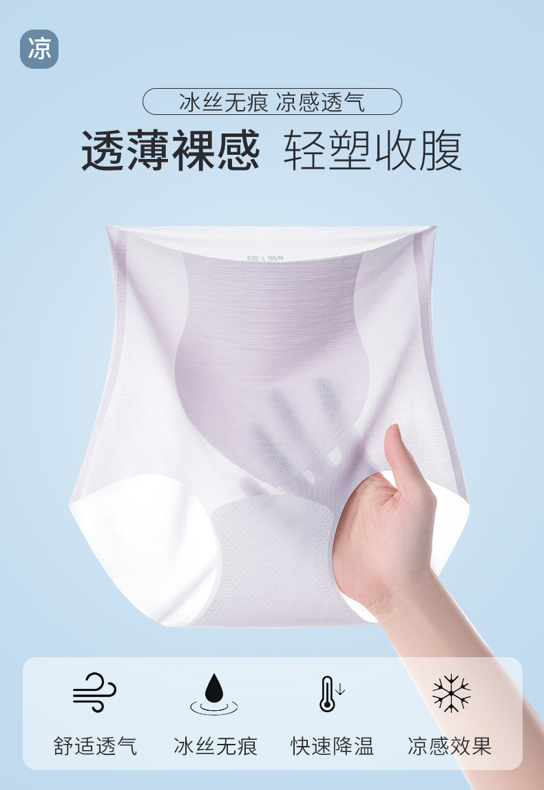 三合一内裤夏季超薄款高腰内裤女冰丝无痕收腹性感网纱女士三角裤大码桑蚕丝档内裤