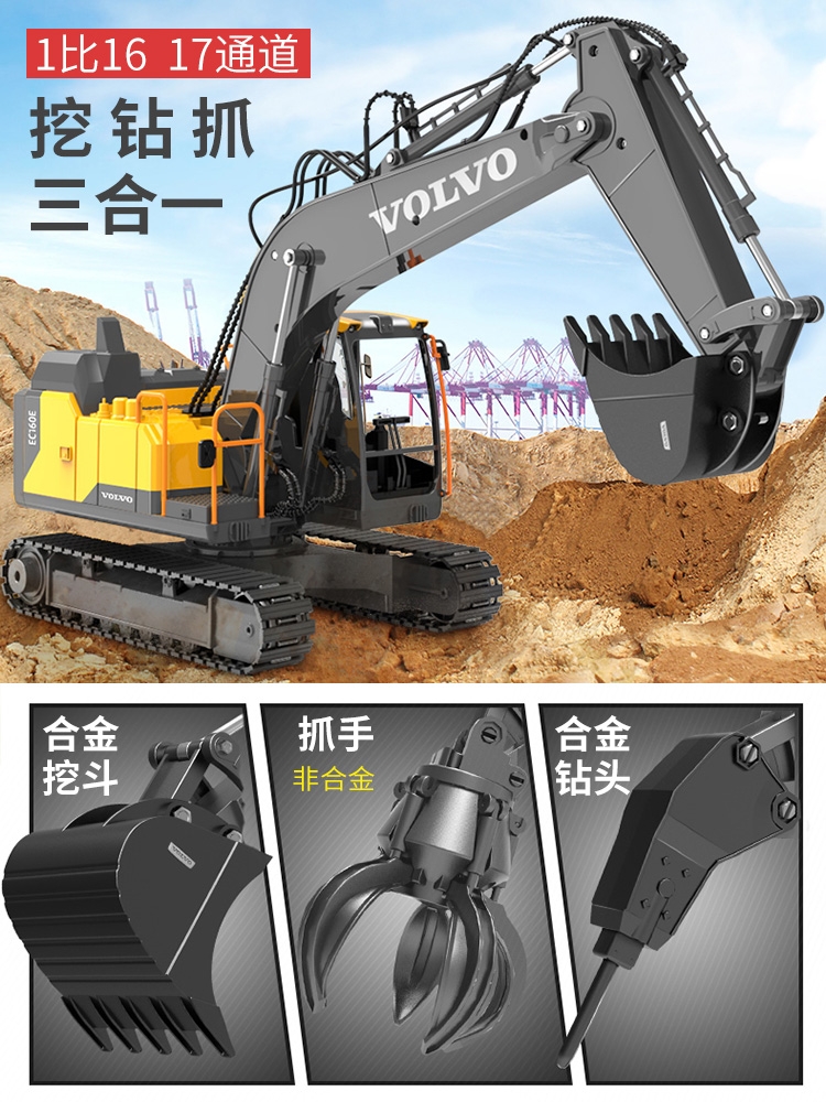 双鹰 DIT挖、钻、抓合金三合一工程机械 (1:16配挖和钻头) E561-001