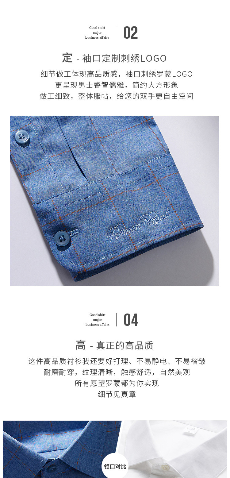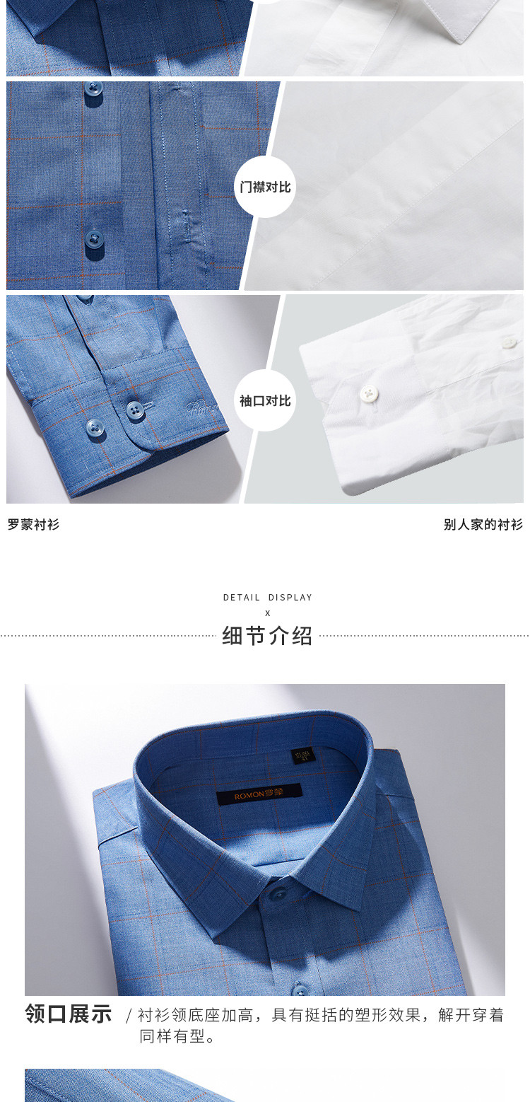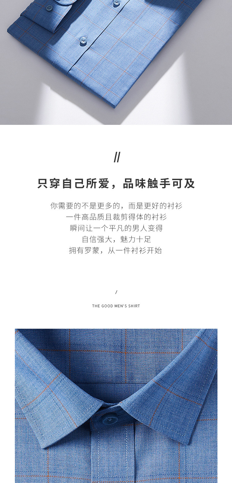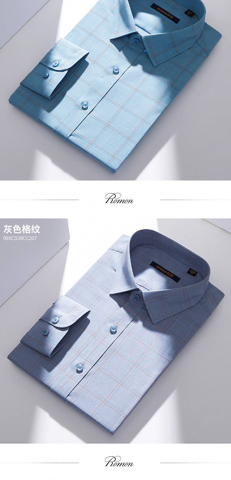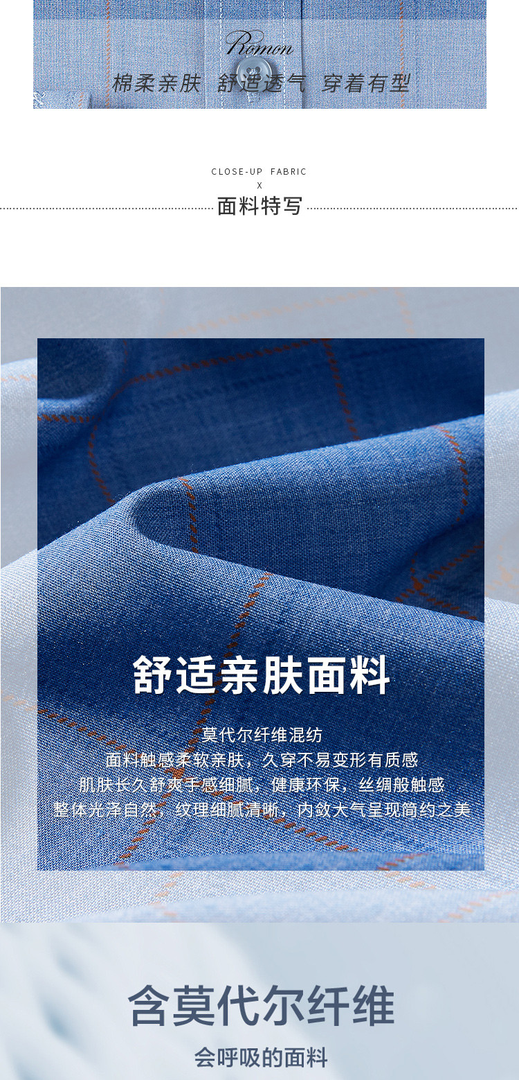 【专柜定制刺绣】罗蒙春夏莫代尔长袖衬衫男士商务休闲通勤百搭格子衬衣男