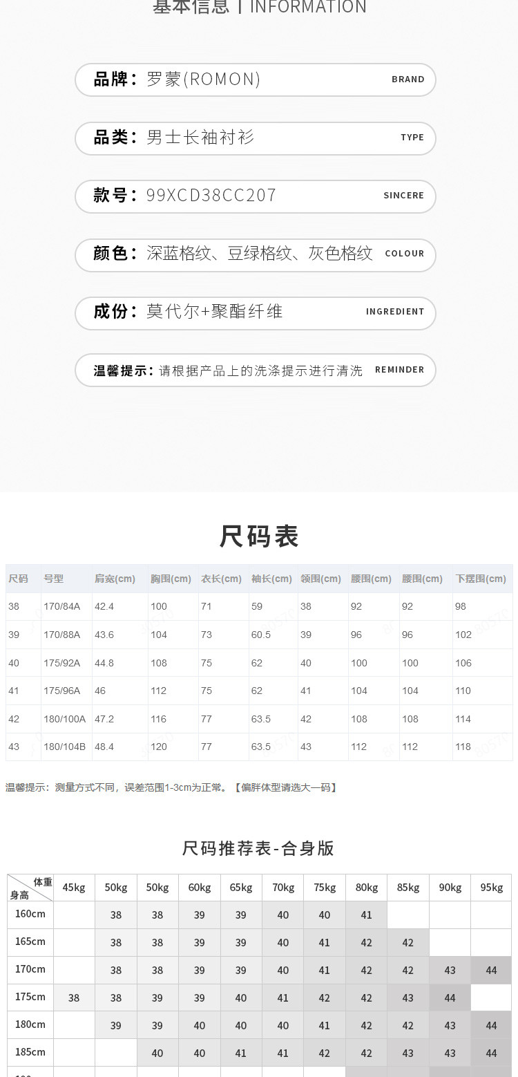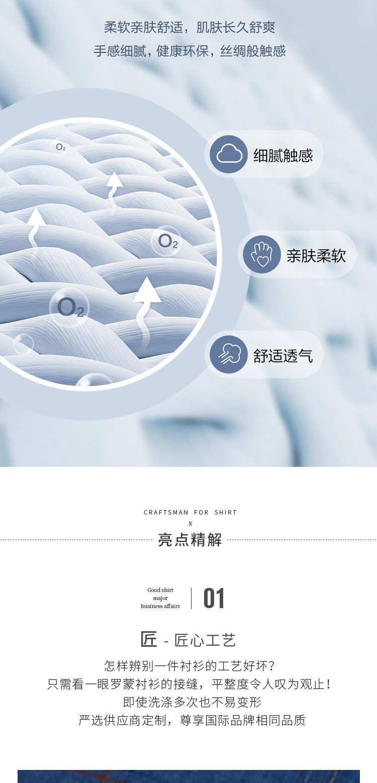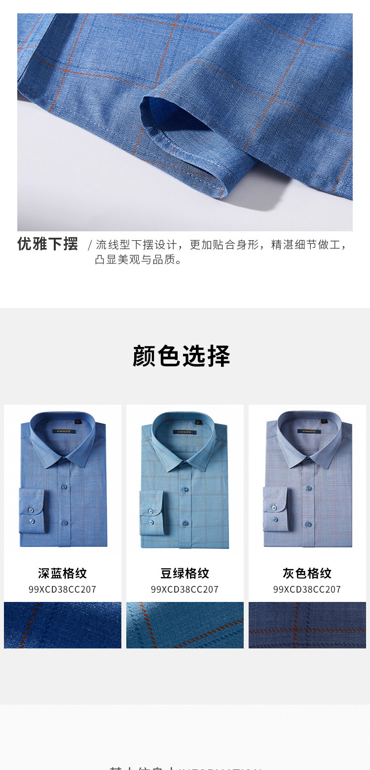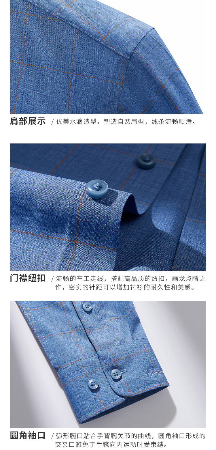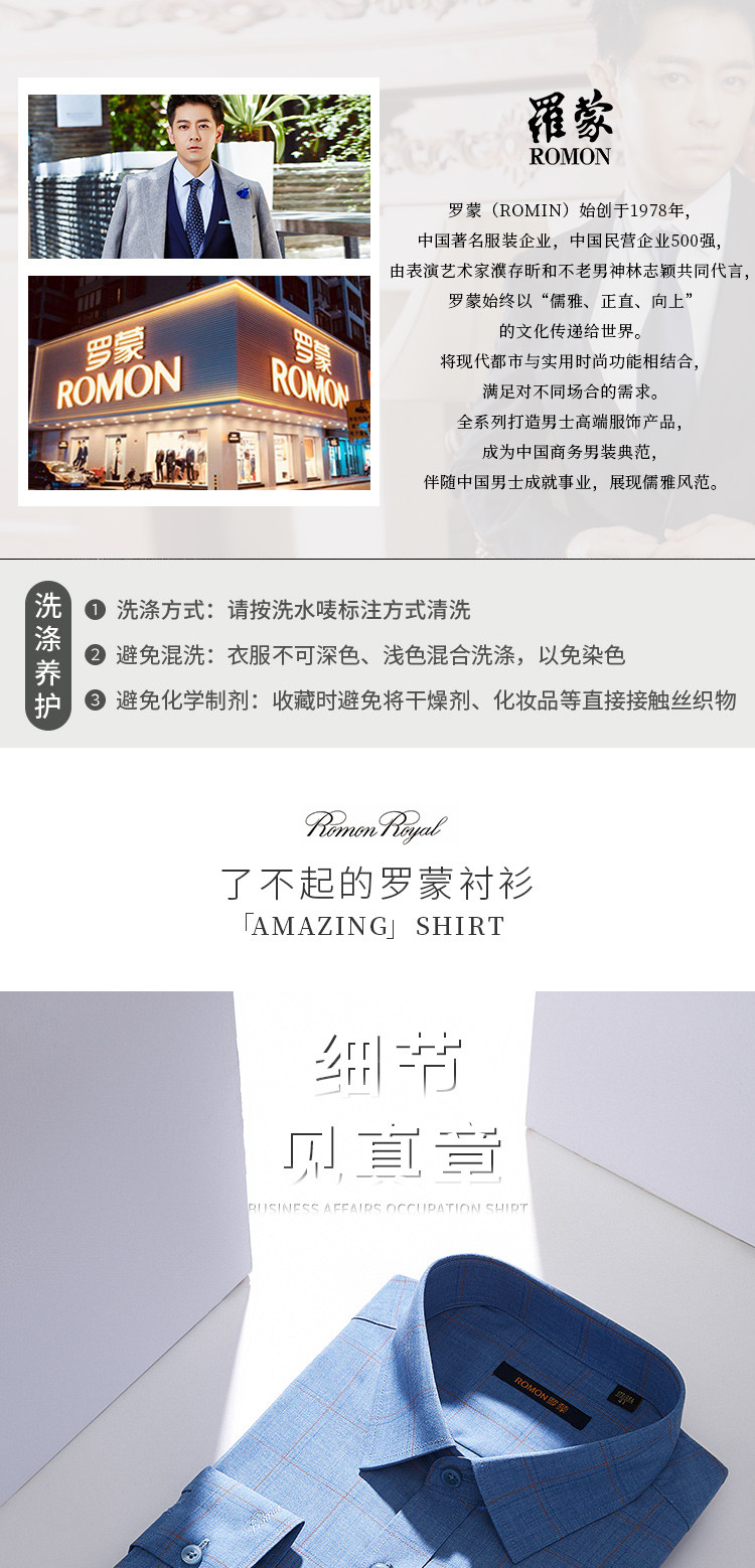 【专柜定制刺绣】罗蒙春夏莫代尔长袖衬衫男士商务休闲通勤百搭格子衬衣男
