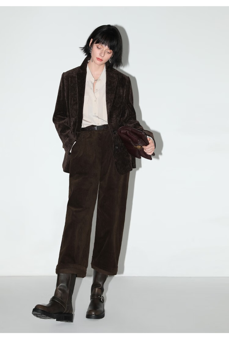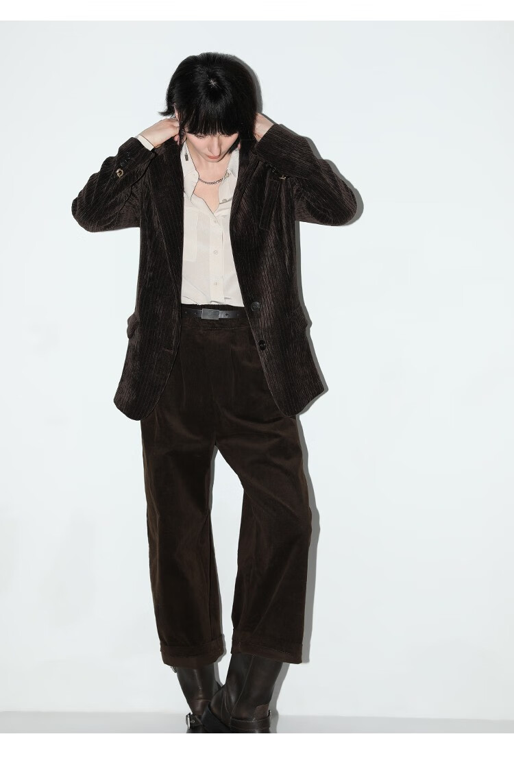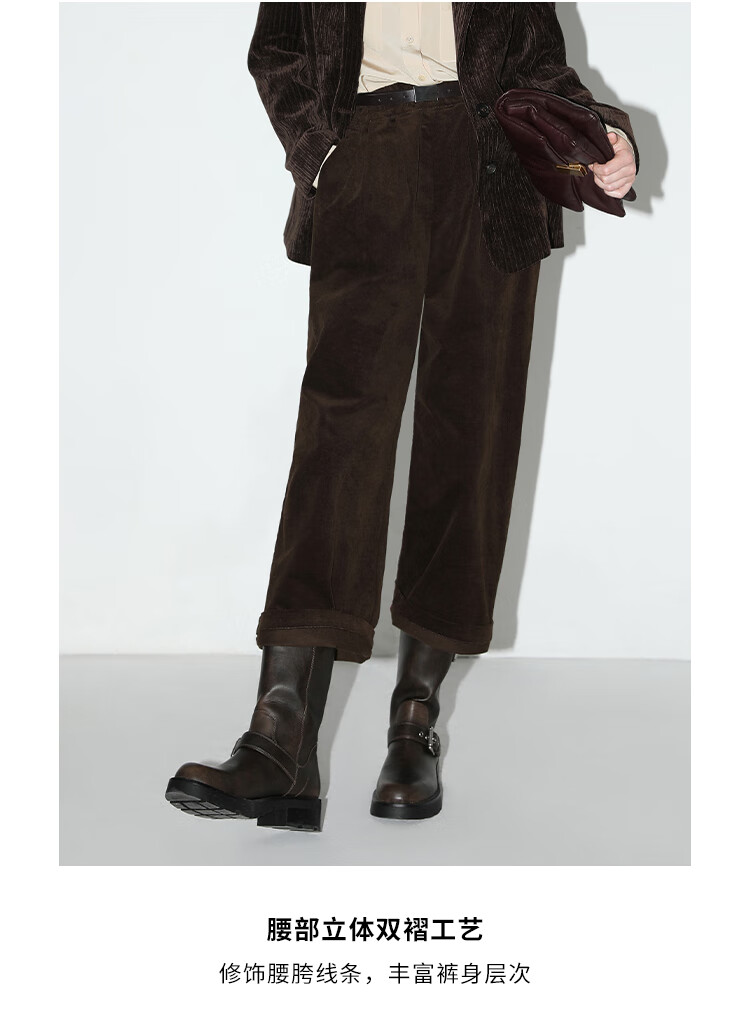 COCOBELLA美拉德穿搭雪尼尔莱赛尔休闲裤宽松打褶老爹裤PA940