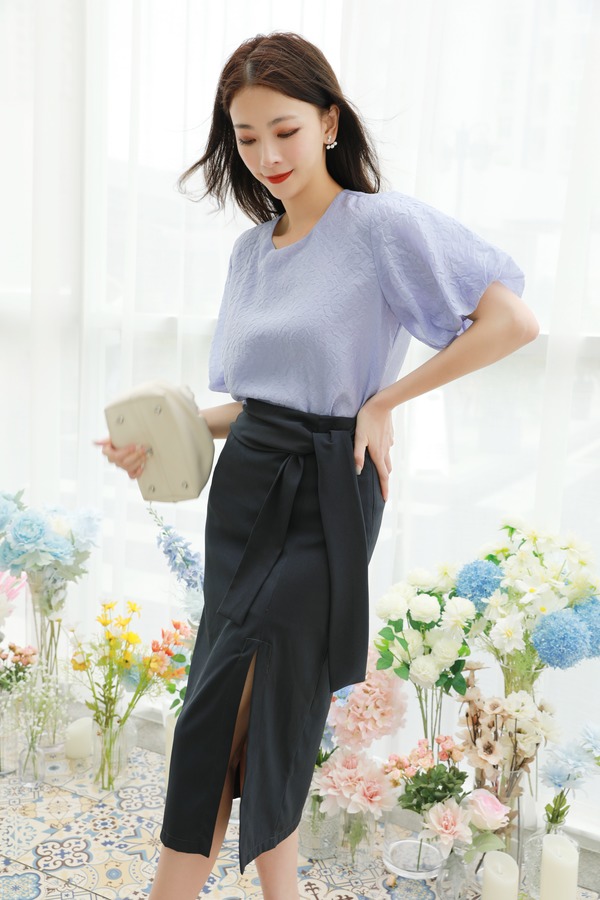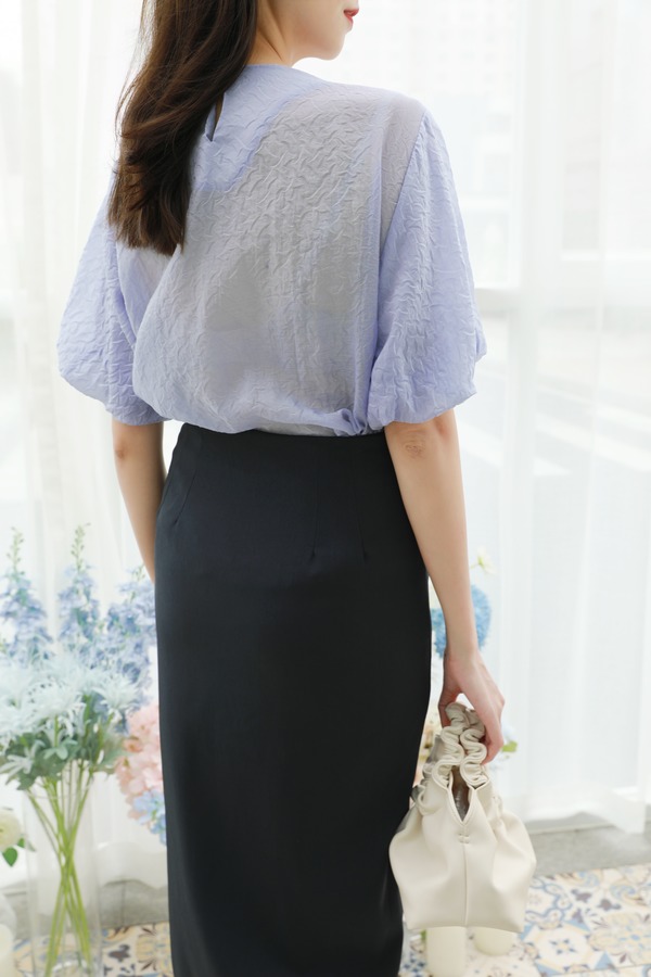 Le Malene 机理感圆领泡泡袖上衣 13057