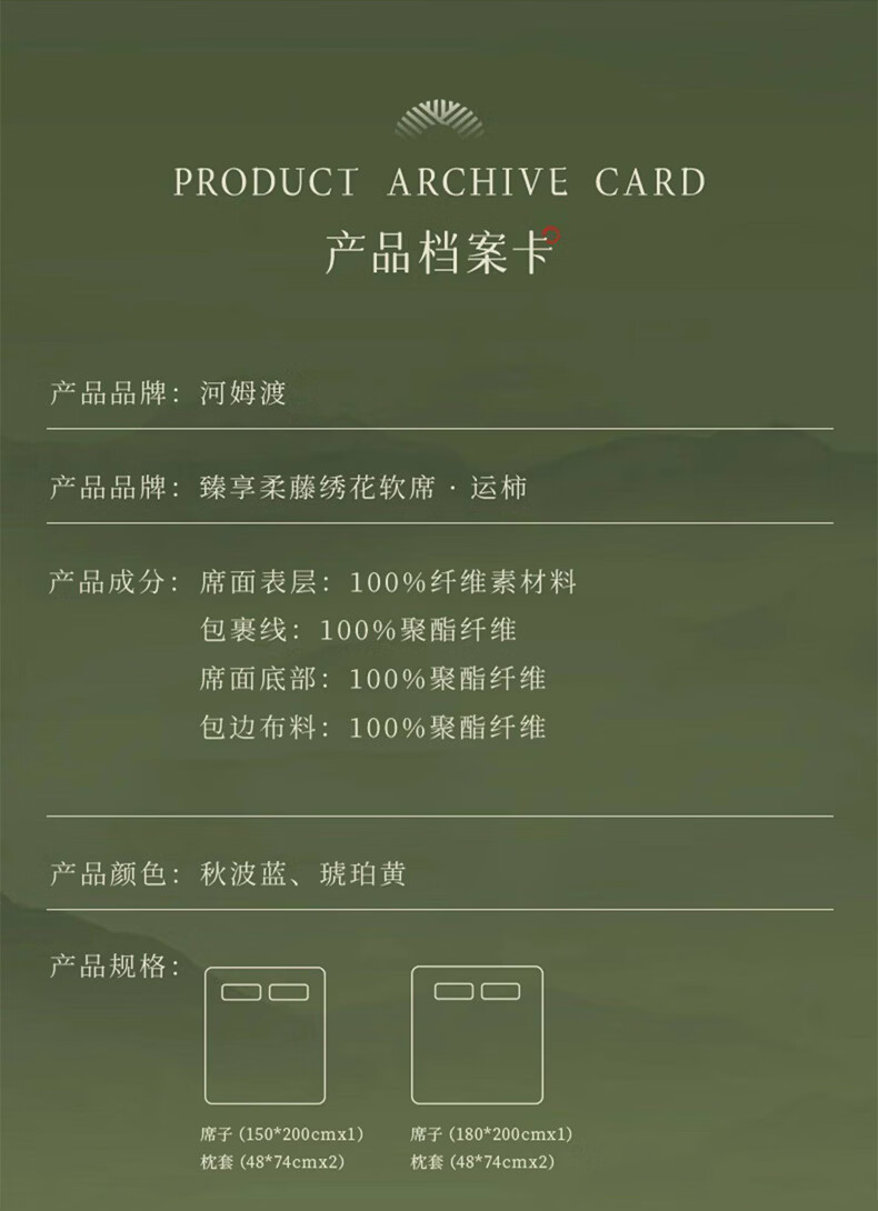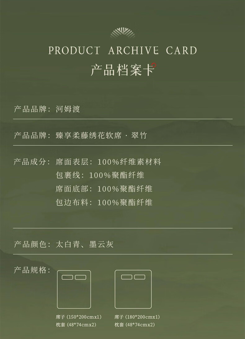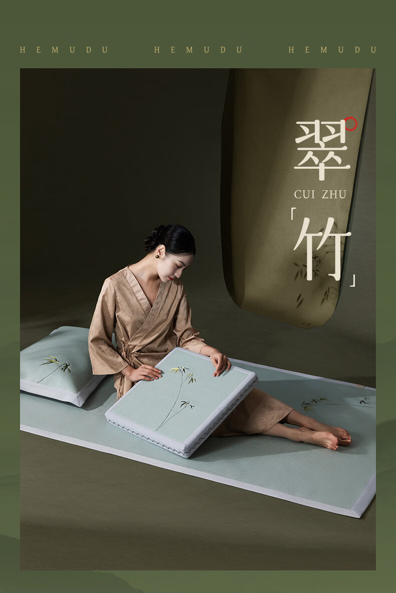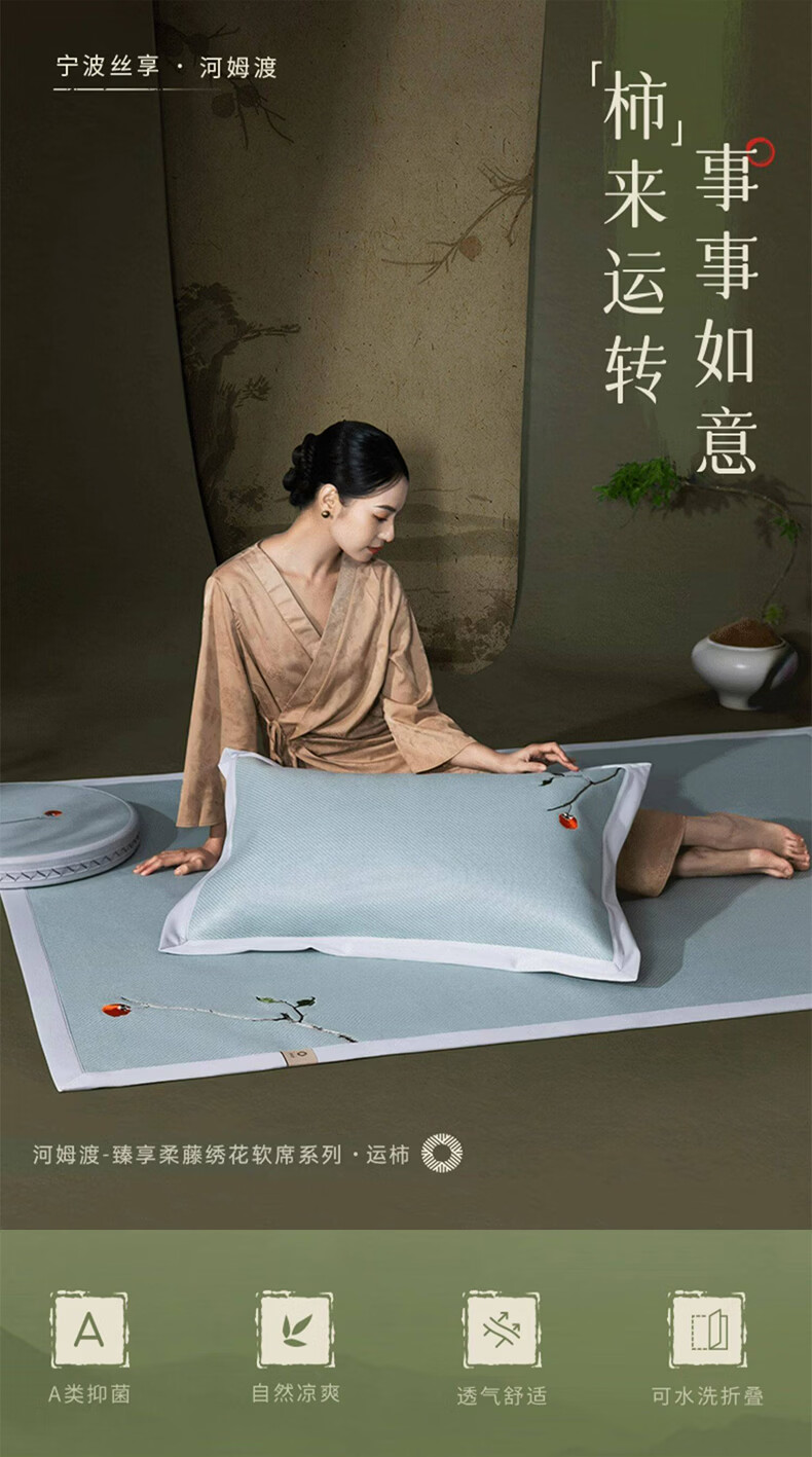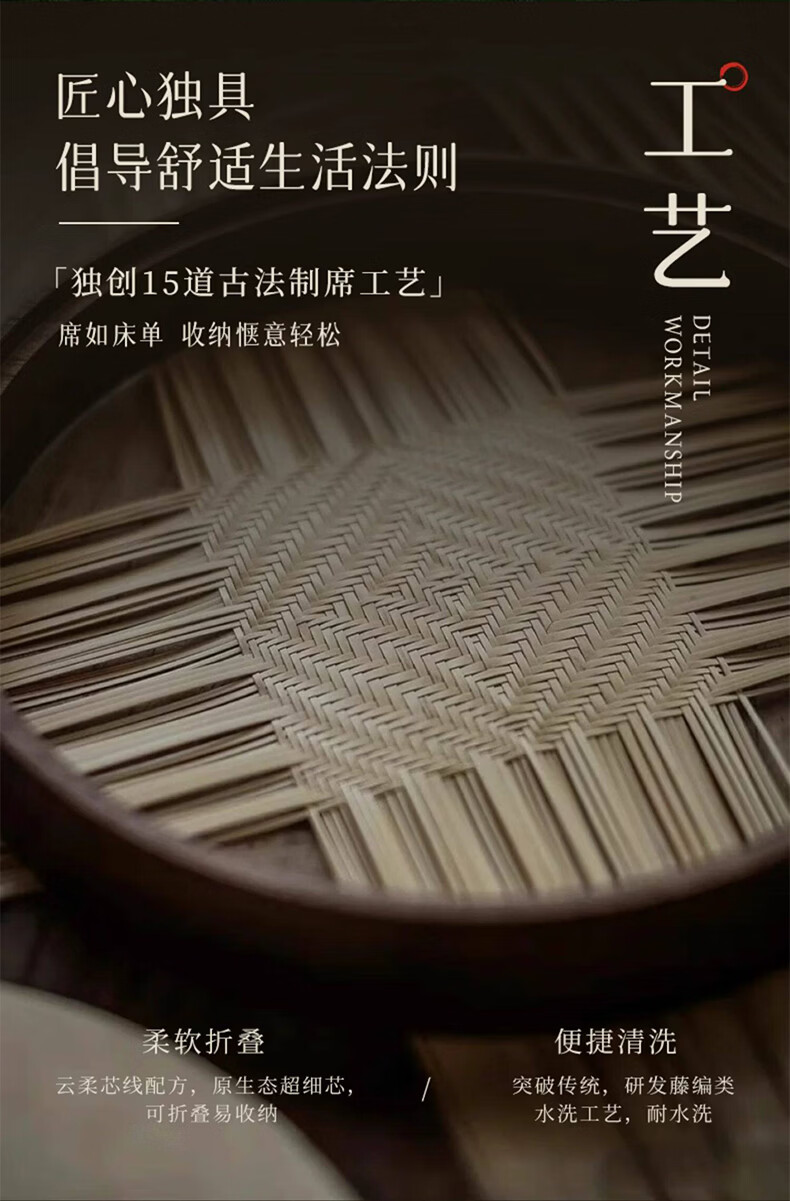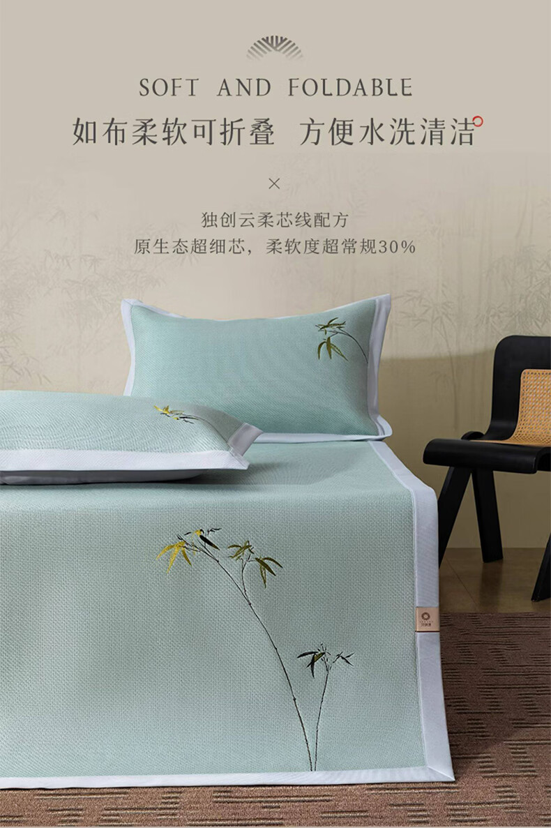 【高端系列 | 绣花软席】丝享河姆渡臻享柔藤绣花软席-翠竹柔软舒适家用凉席