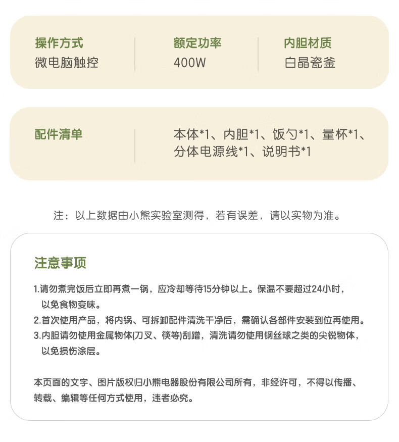 小熊DFB-Q20B2电饭煲[DQ6] 商品图8