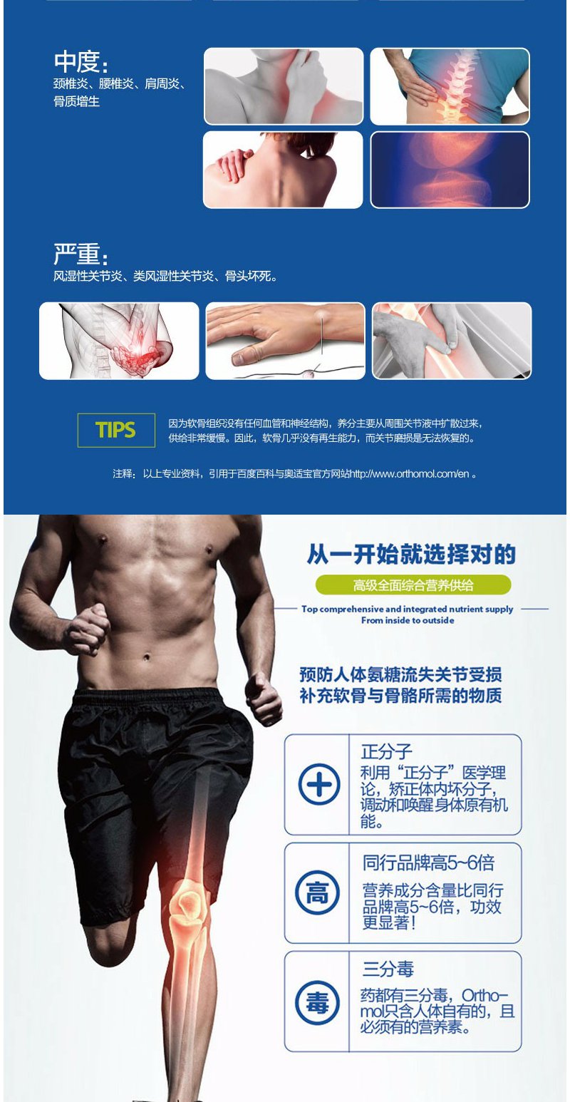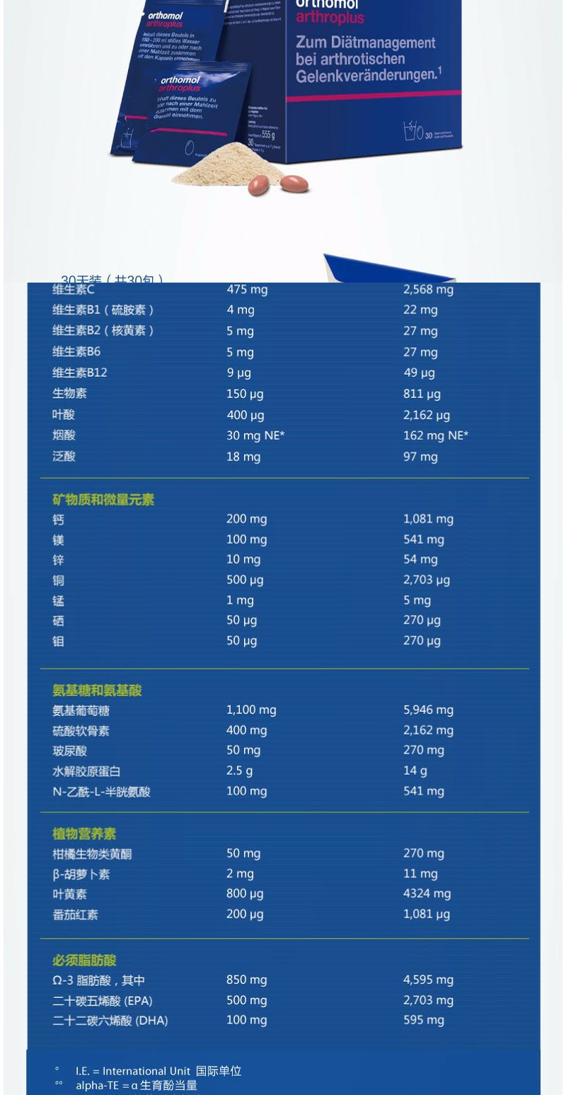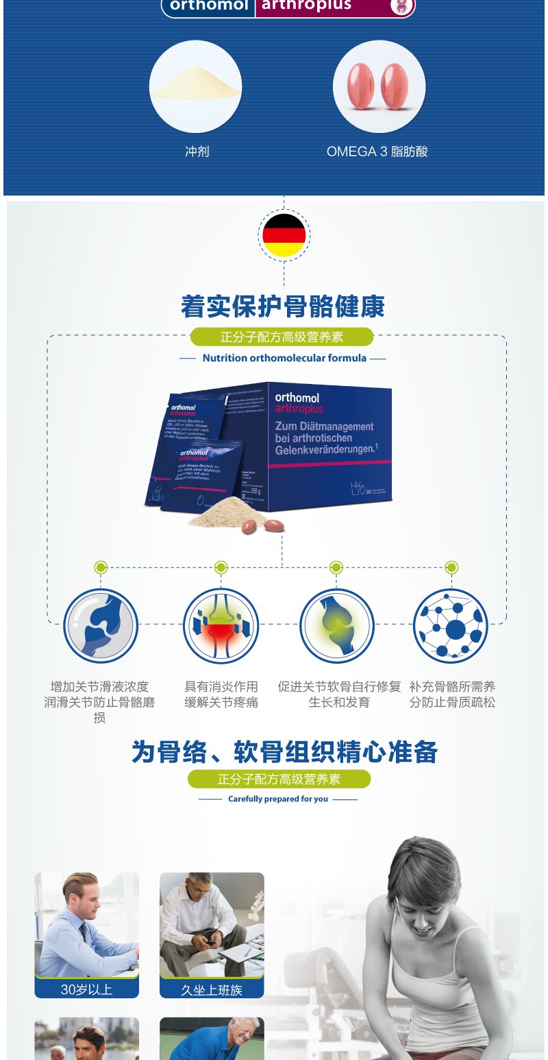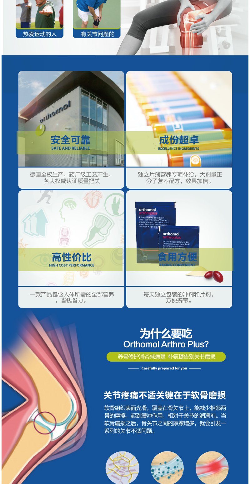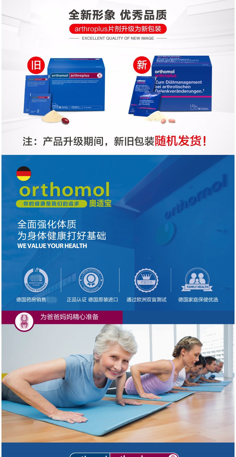 【会员折扣】【Orthomol奥适宝】缓解关节发炎疼痛肿优乐风arthroplus胶原氨基葡萄糖30袋