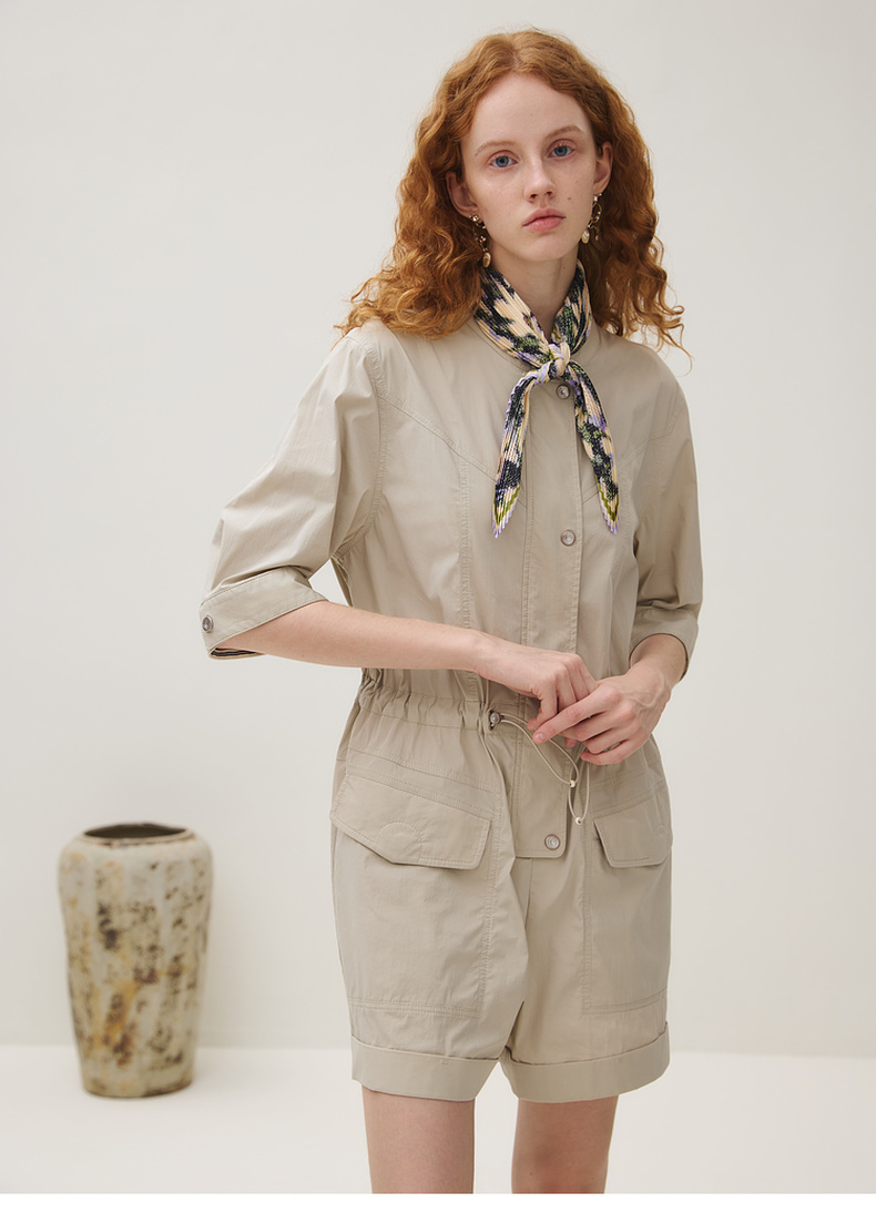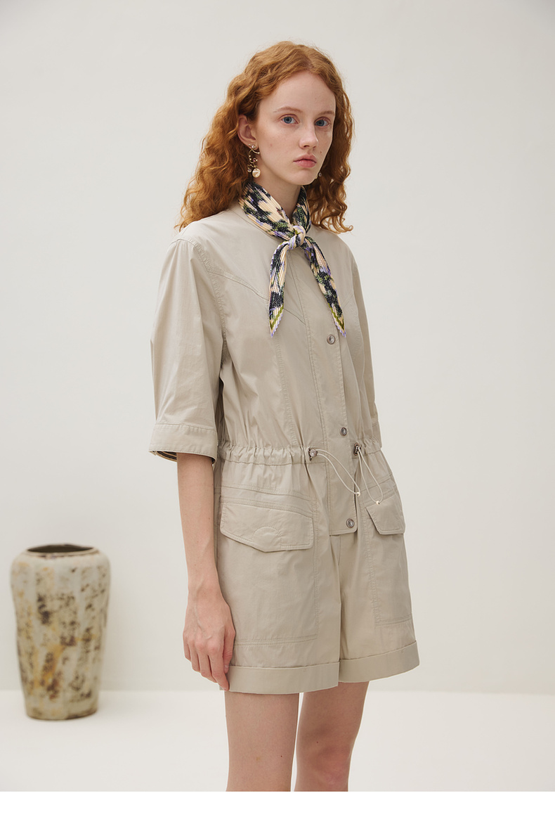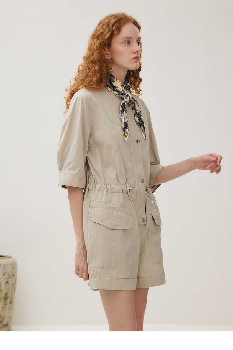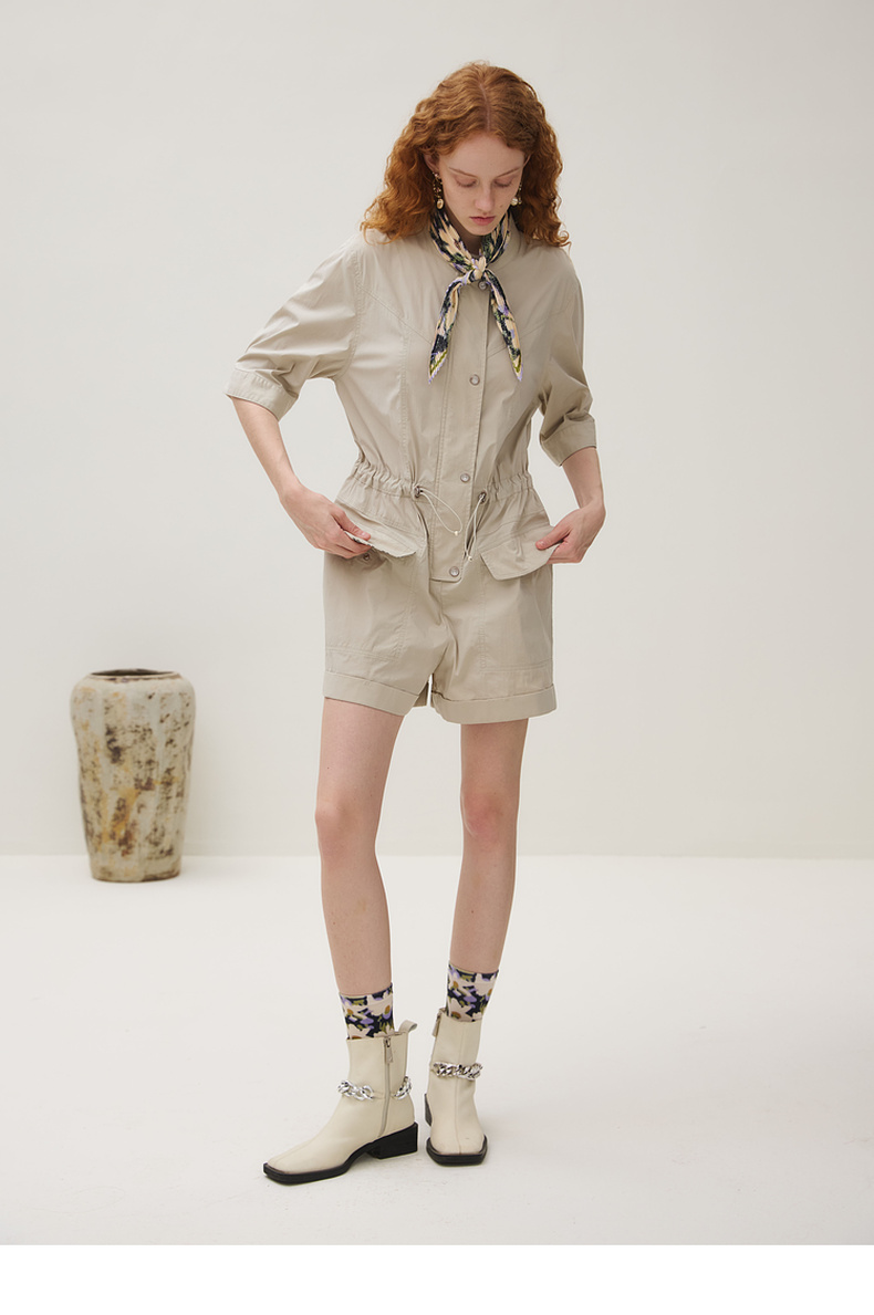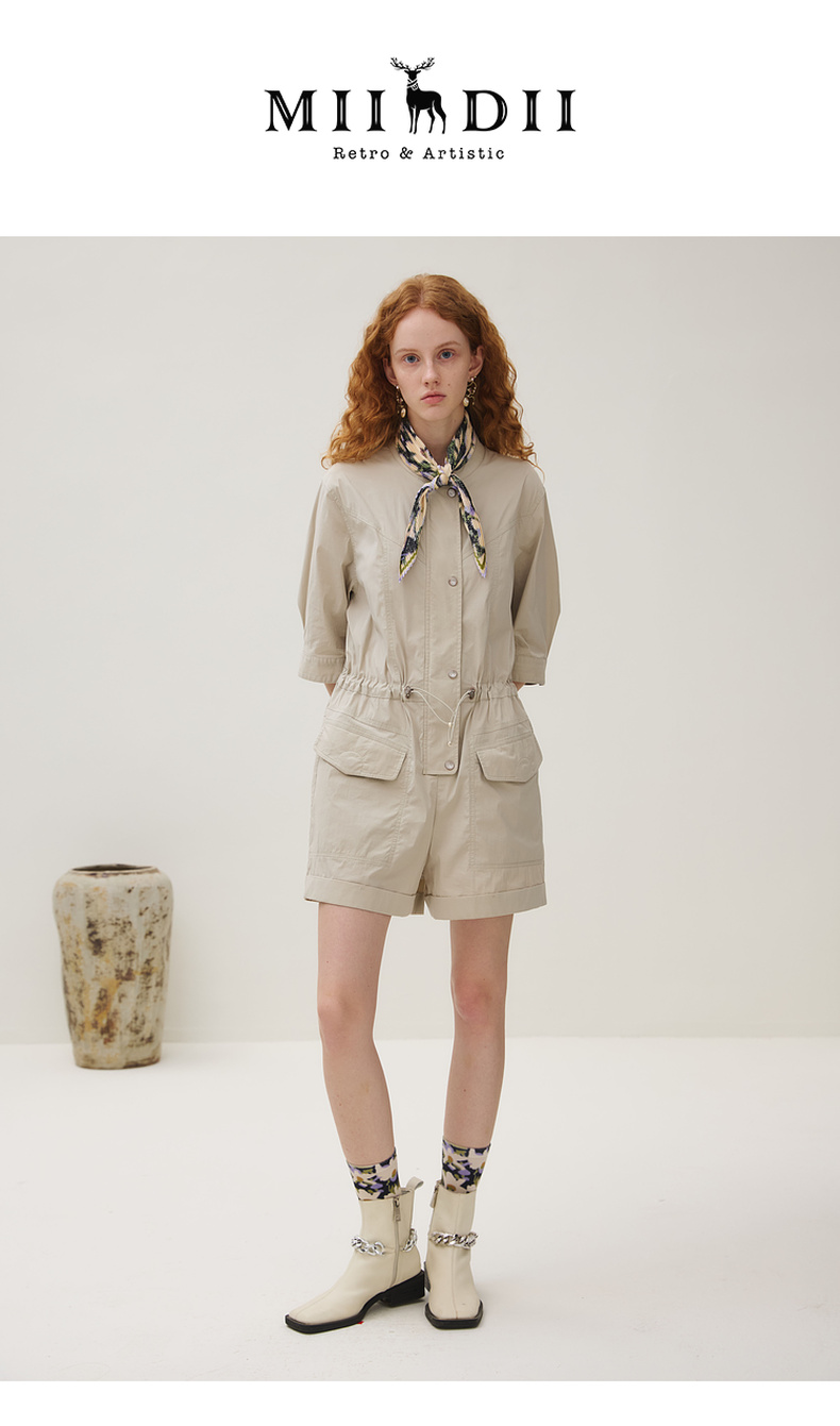 谜底连体裤短袖女2025秋新品设计感挺括时髦可调腰短裤253MK1033