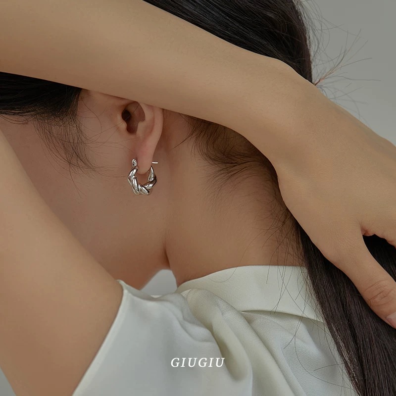 💰65元包邮 极简老钱风,十年不过时【拉夫**伦】元单 银色麻花耳环