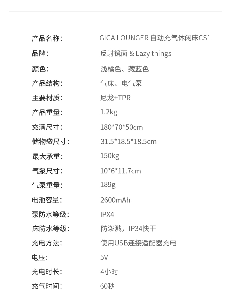 Lazy things GIGA LOUNGER自动充气休闲床CS1 [福利品]