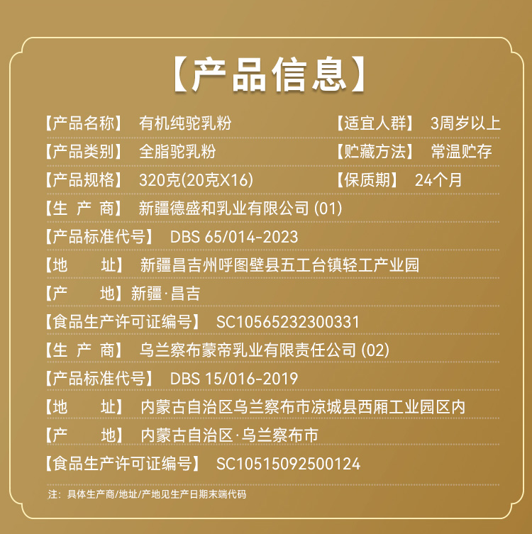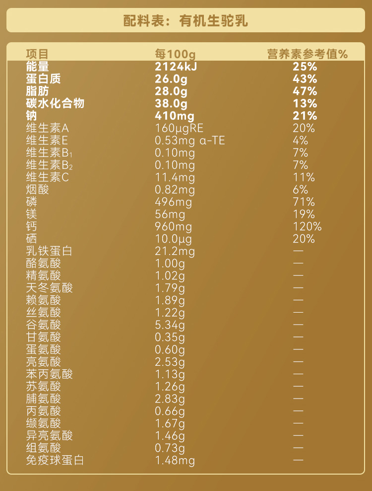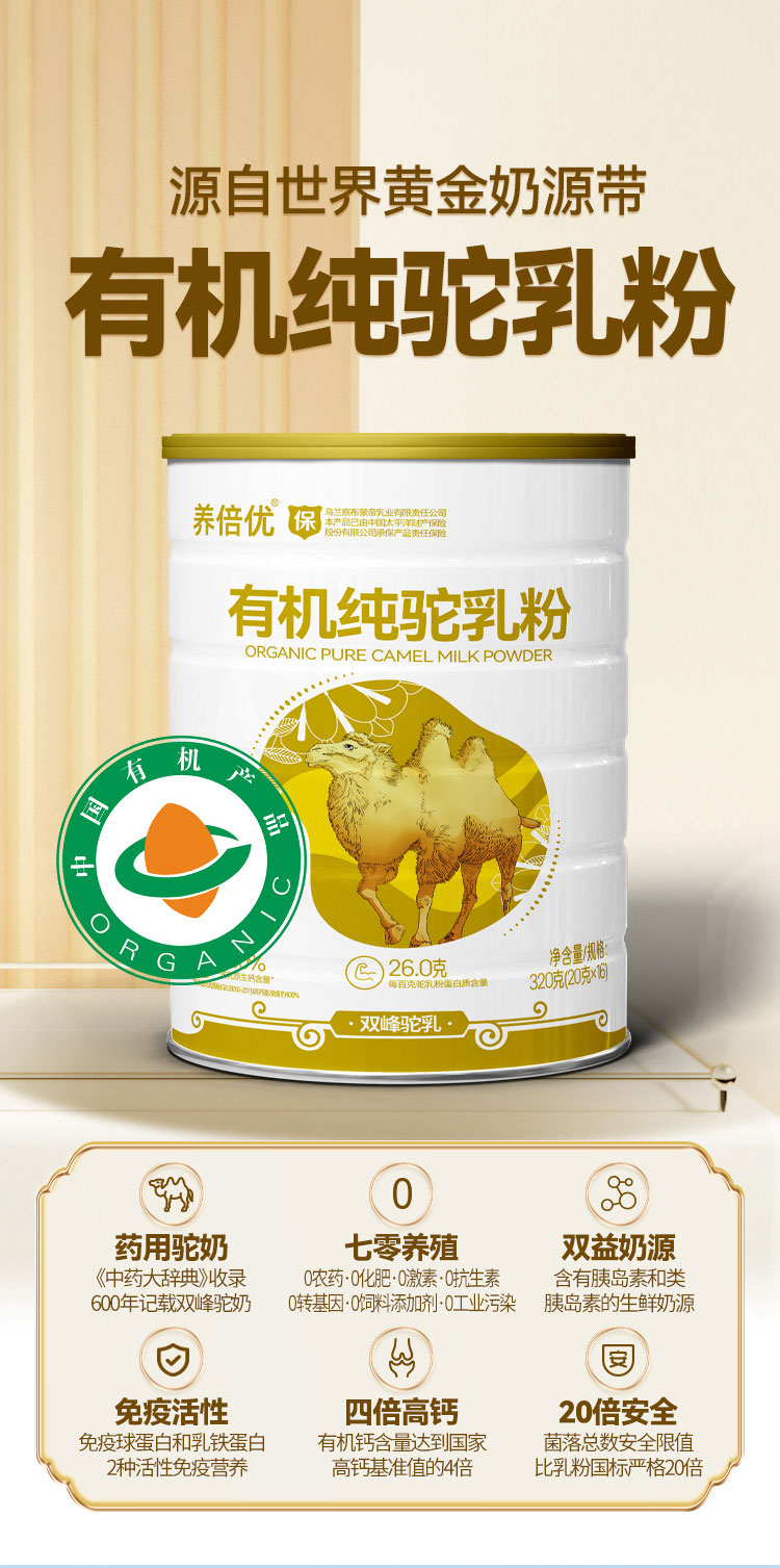 养倍优有机纯驼乳粉2罐 双益奶源 四倍高钙