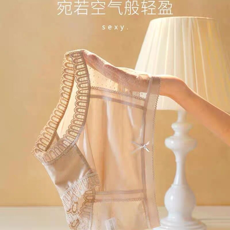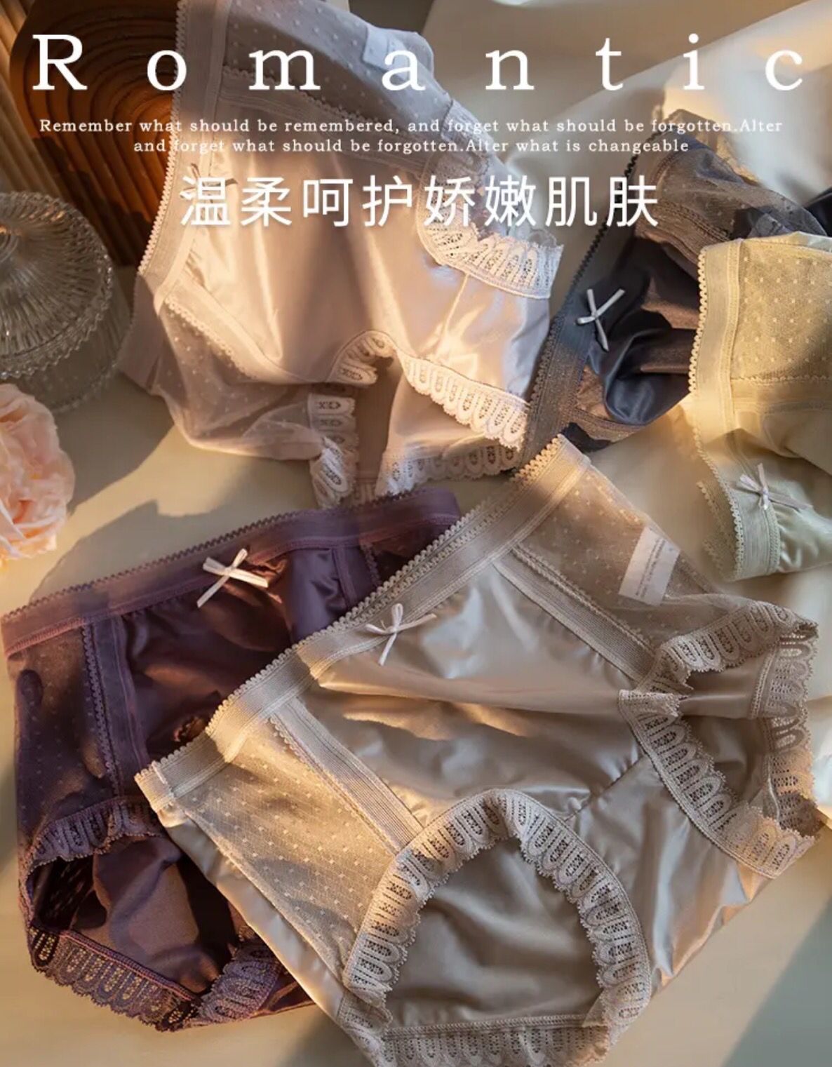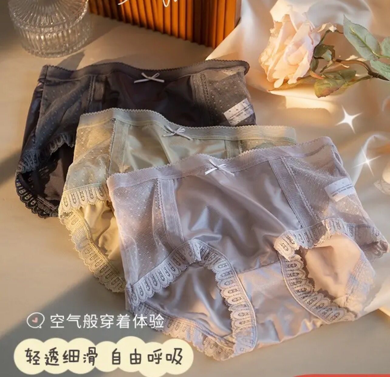 【限时折扣】轻奢蕾丝中腰抗菌舒适三角内裤 3条(颜色随机)(非质量问题不退不换)