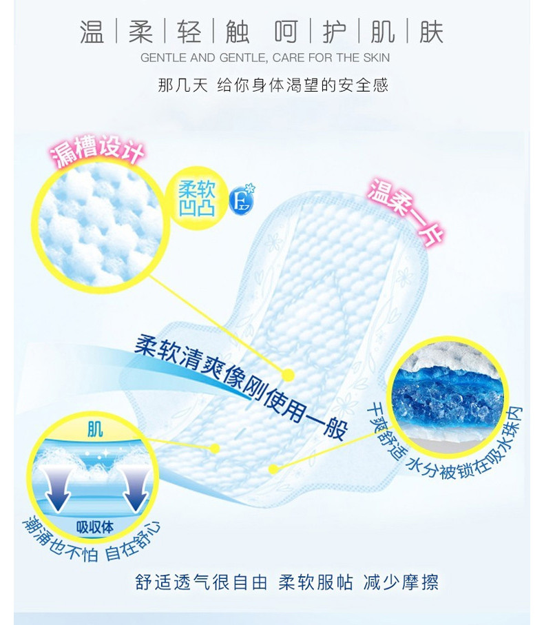 Cosme大赏,可以赶走敏感肌肤于经期间常有的拘促及摩擦不适,将巾面与肌肤接触减至很低。波浪绵贴面层减少90%接触面,给您的敏感肌肤体贴照顾!