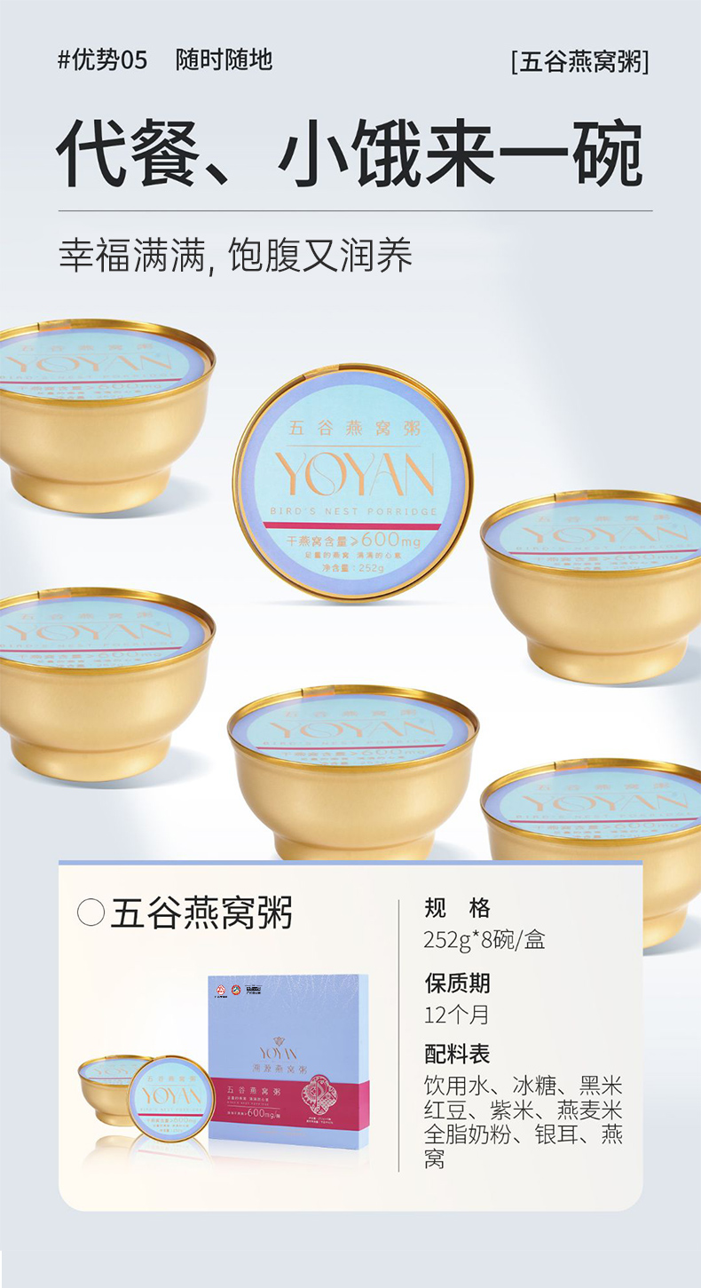【五谷燕窝粥礼盒252g*8碗】 低脂润养代餐优选进口溯源燕窝 满满营养无添加