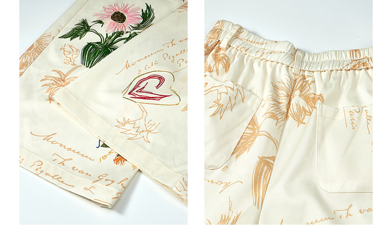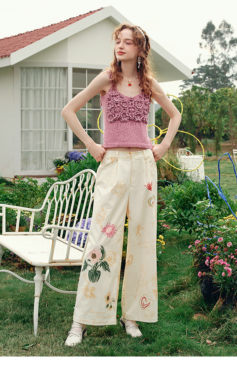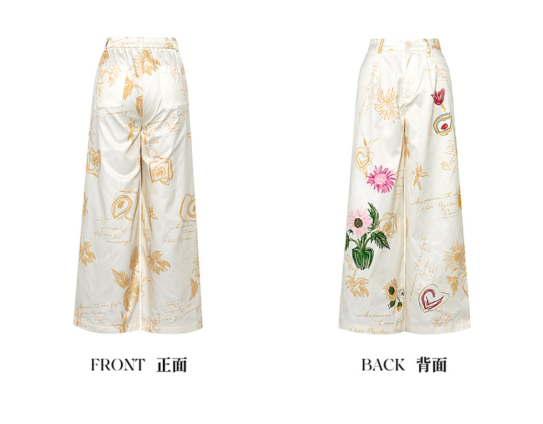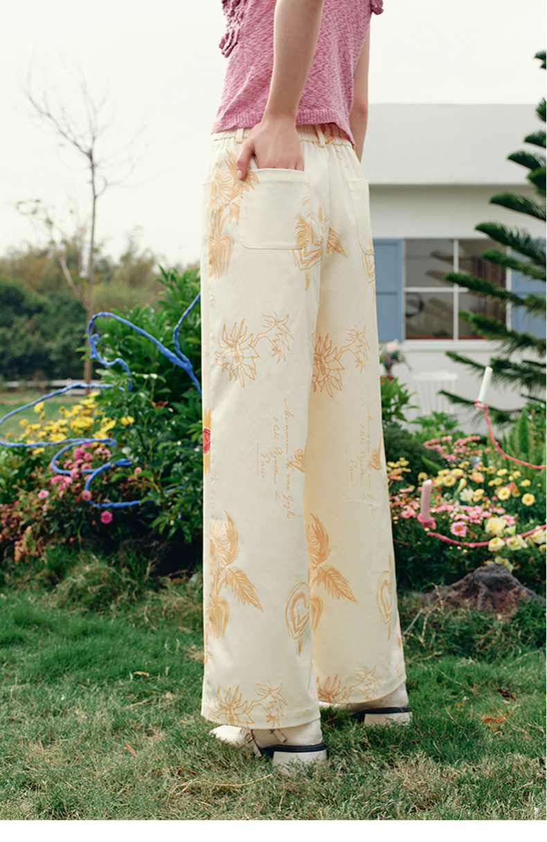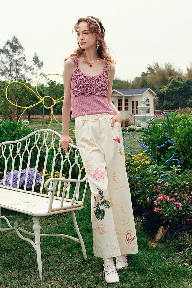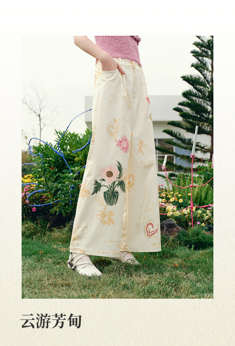两三事 低空飞行 2025夏季新款复古印花刺绣直筒休闲裤女宽松