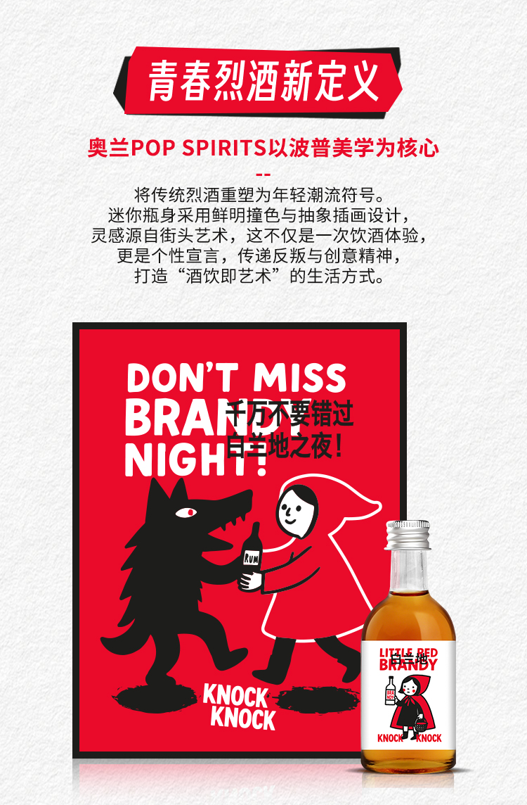 【新品】奥兰小红帽POP SPIRITS迷你瓶洋酒全家福50ml 3种口味各2支共6瓶 微醺小酒伴