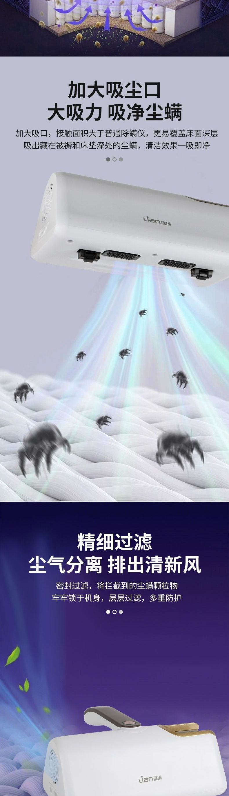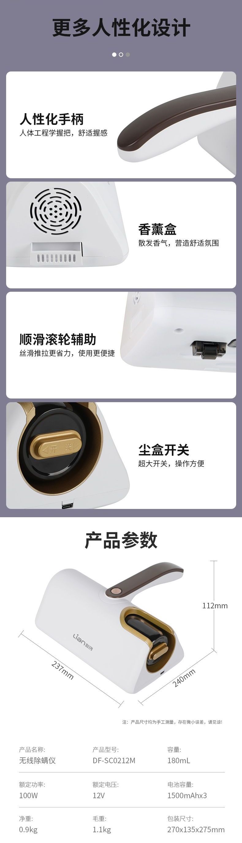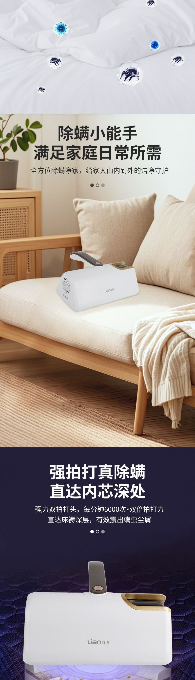 联创 无线除螨仪 DF-SC0212M 家用紫外线杀菌除螨机手持拍打