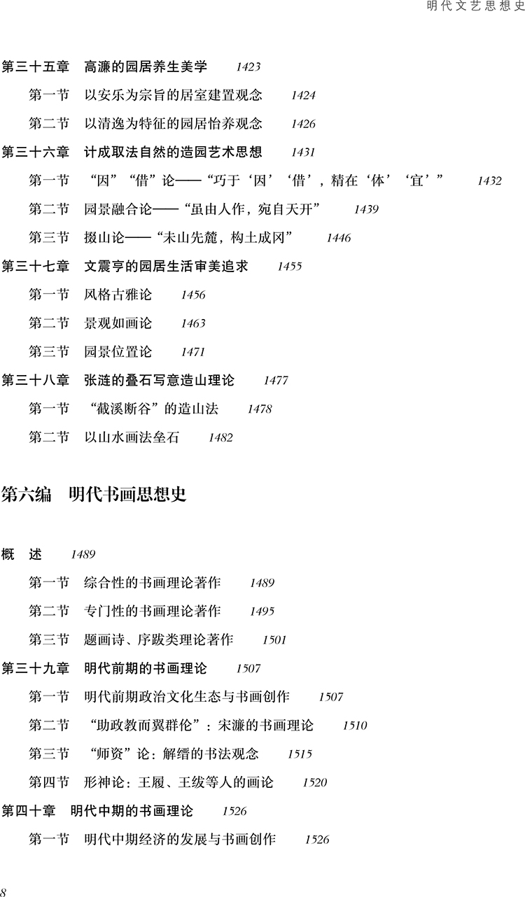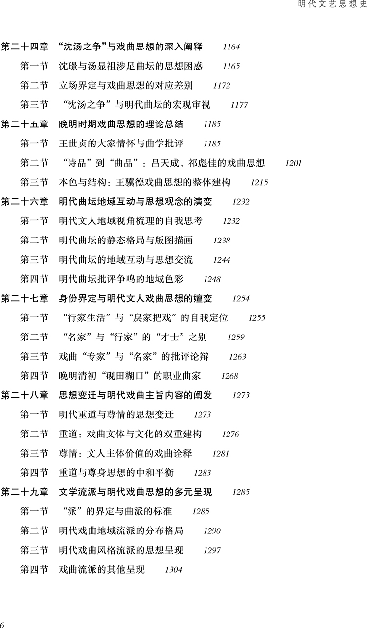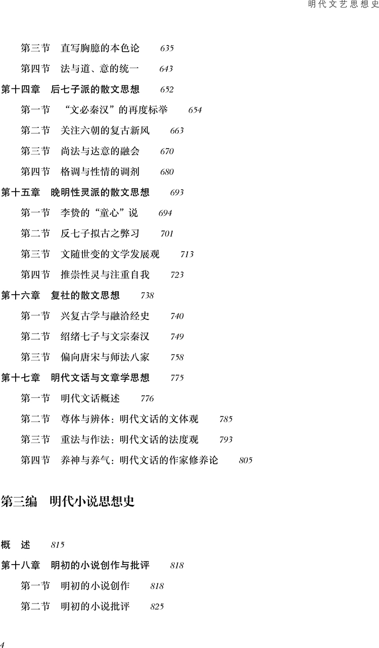 明代是中国古代文艺思想逐渐成熟的时期,也是古代文艺思想的总结初期和近代性滥觞阶段。明代文艺思想不仅阶段性鲜明,而且因为哲学思想的深刻变化,政治经济发展与此前的异质性,使这一时代的审美观念和审美文化积累了新的、丰富的学术智慧。本书以明代文艺思想的发展为中心,在古今学者研究的基础上,重新梳理论述明代思想发展的历程。全书分为诗学思想史、散文思想史、小说思想史、戏曲思想史、园林艺术思想史、书画艺术思想史六部分,每一部分都关照明代文艺思想发展的大背景,又以各自独特的视角,系统全面地论述各自的发展历程。本书吸收以往的学术成果,又开创自己独特的论述视角,体现出自己独特的学术品格,具有多样性、互动性、融会性、开放性四个显著的特点。本书的出版对推进明代文艺思想的深入研究具有重要的学术价值。